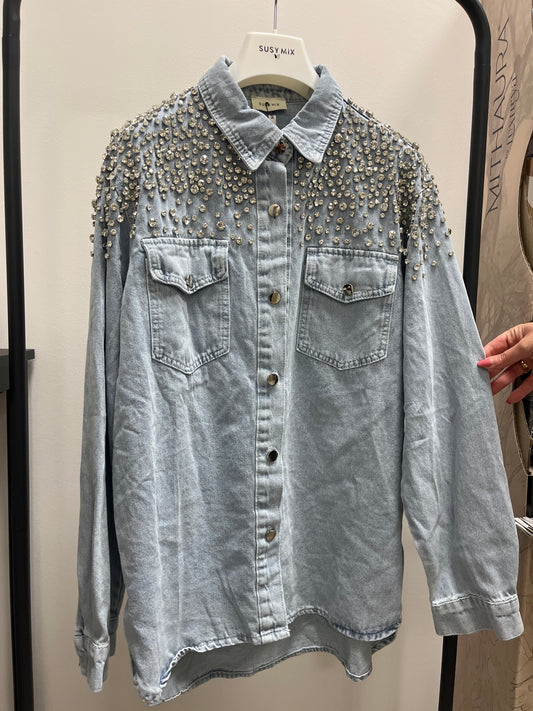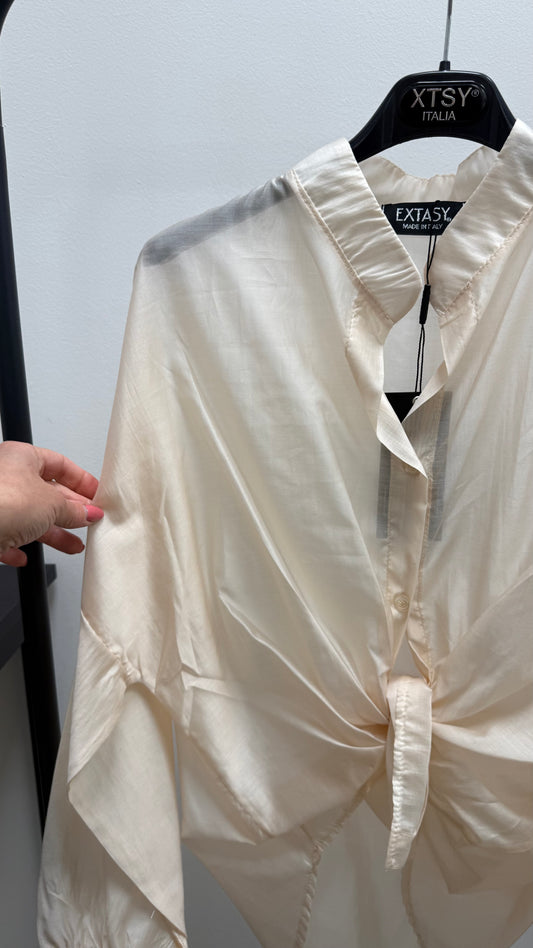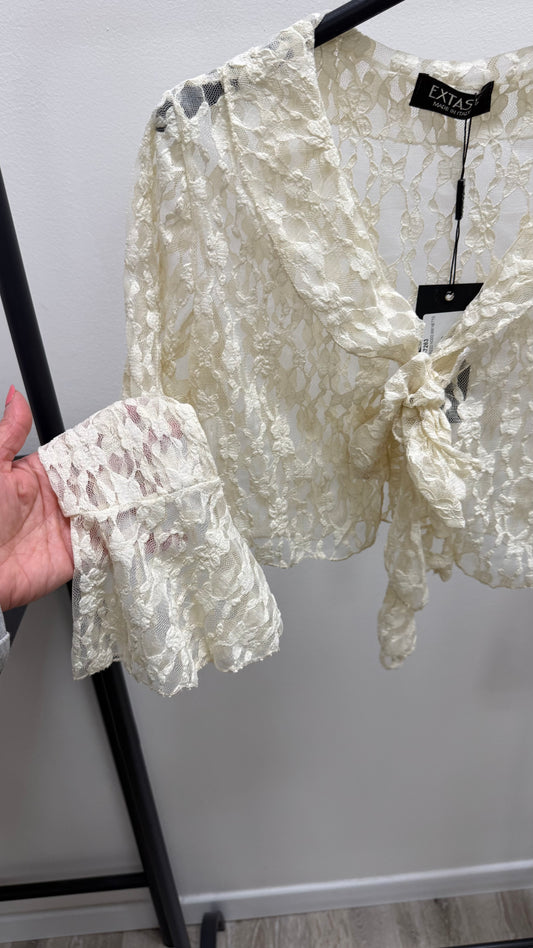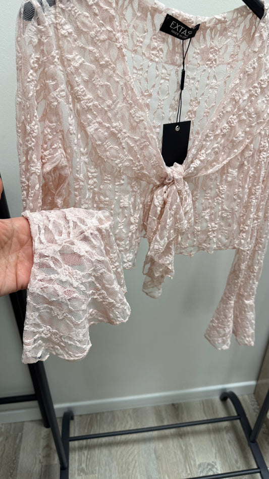 Camicia coprispalle pizzo con nodo Extasy rosa