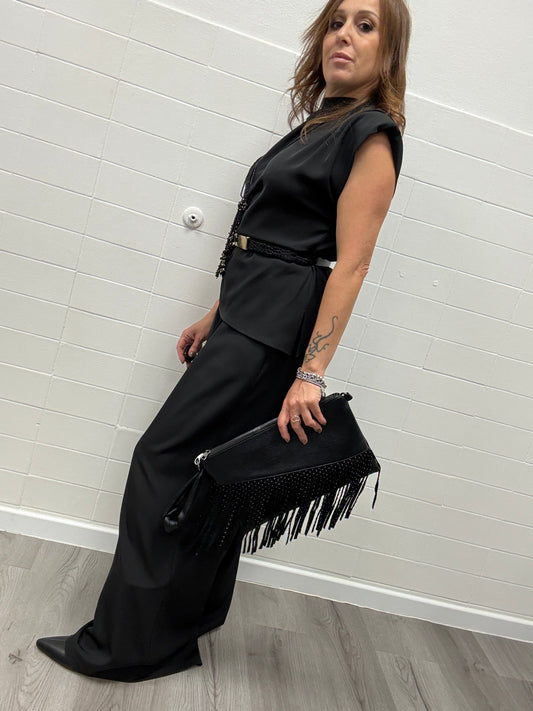 Borsa pochette con frangie nera