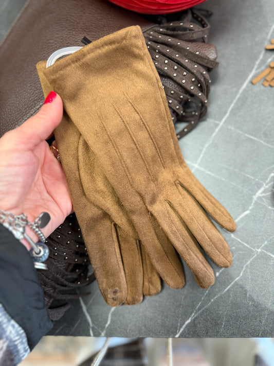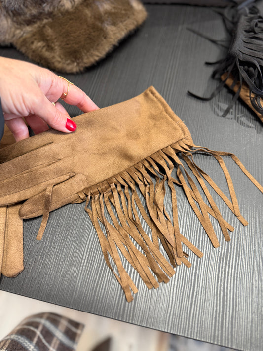 Guanti ecocamoscio con frange laterali tabacco Memoire