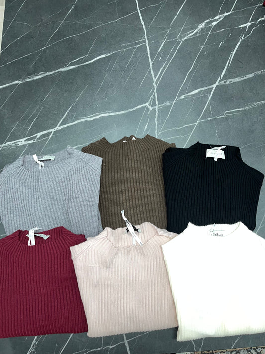 Maglia a Costine con Collo a Lupetto Susy Mix Burro