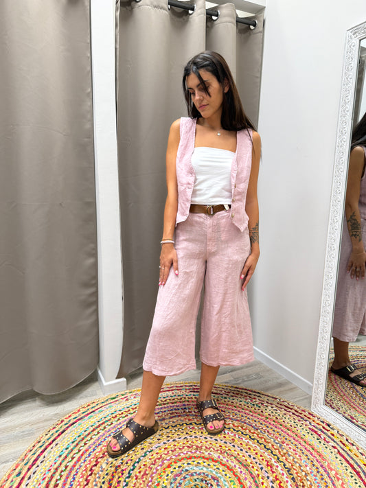 HaveOne Pantalone Gaucho in Lino rosa