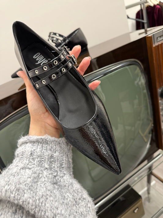 Ballerine in vernice doppia fibbia con la punta Ovyè