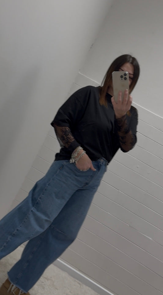 Susy Mix T-Shirt con Manica in Pizzo Nera