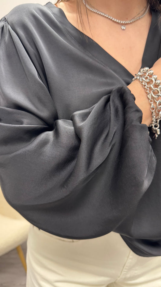 Blusa raso viscosa 100% scollo a V Haveone nero