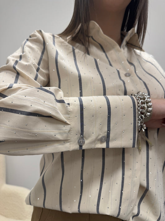 Blusa raso viscosa 100% scollo a V Haveone Beige
