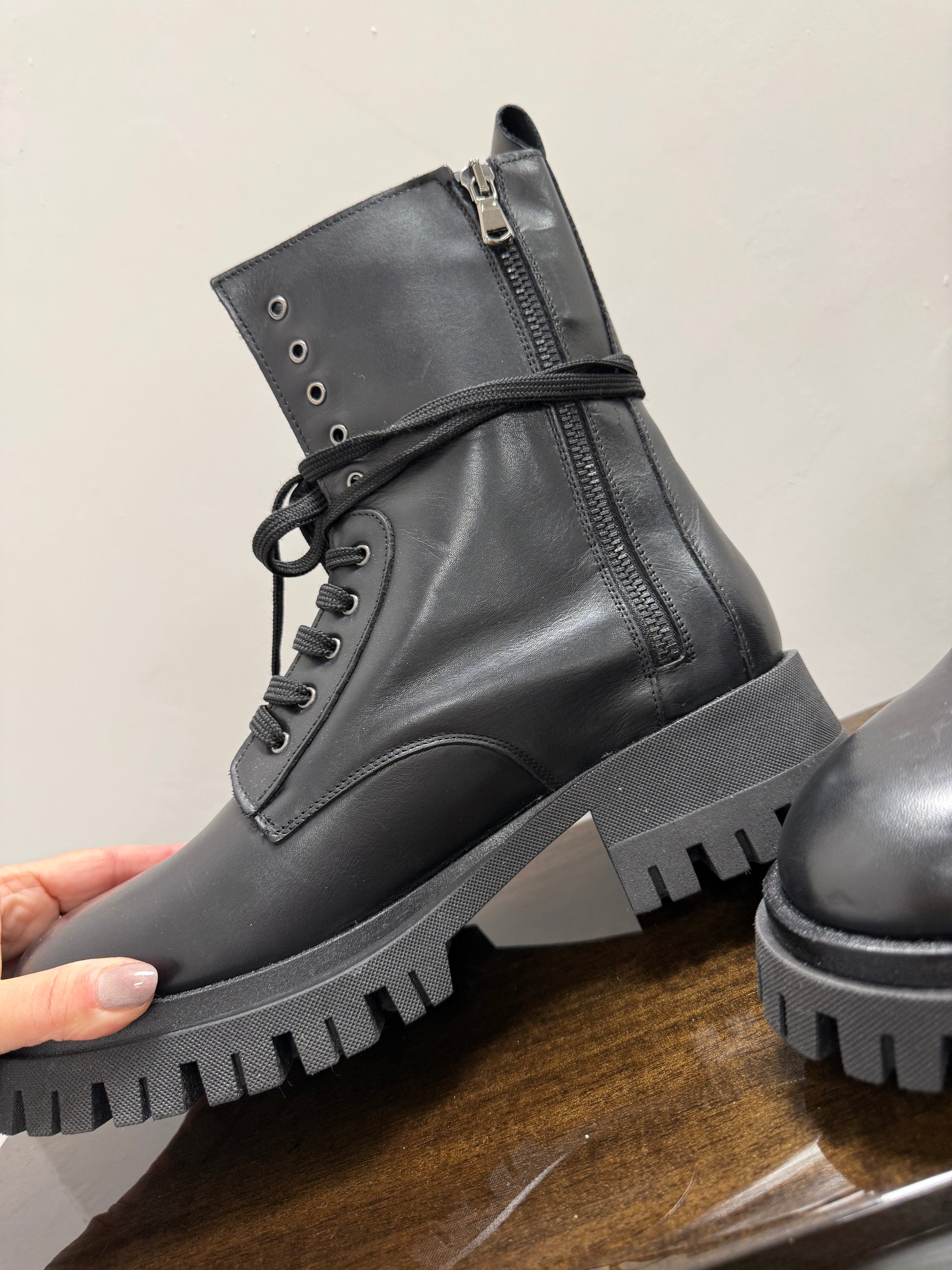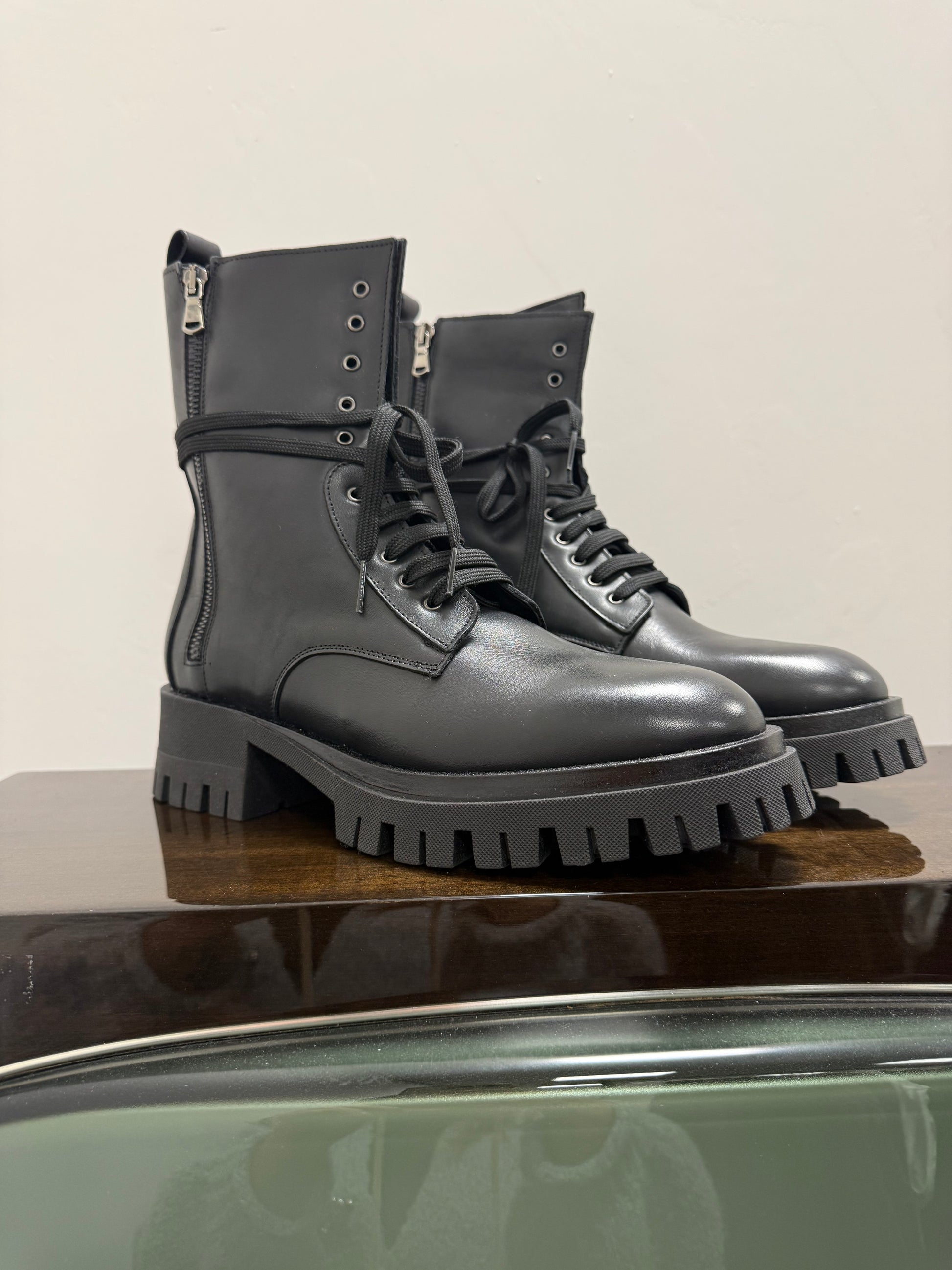 Anfibio in vera pelle, con carroarmato e Chiusura laterale con cerniera.