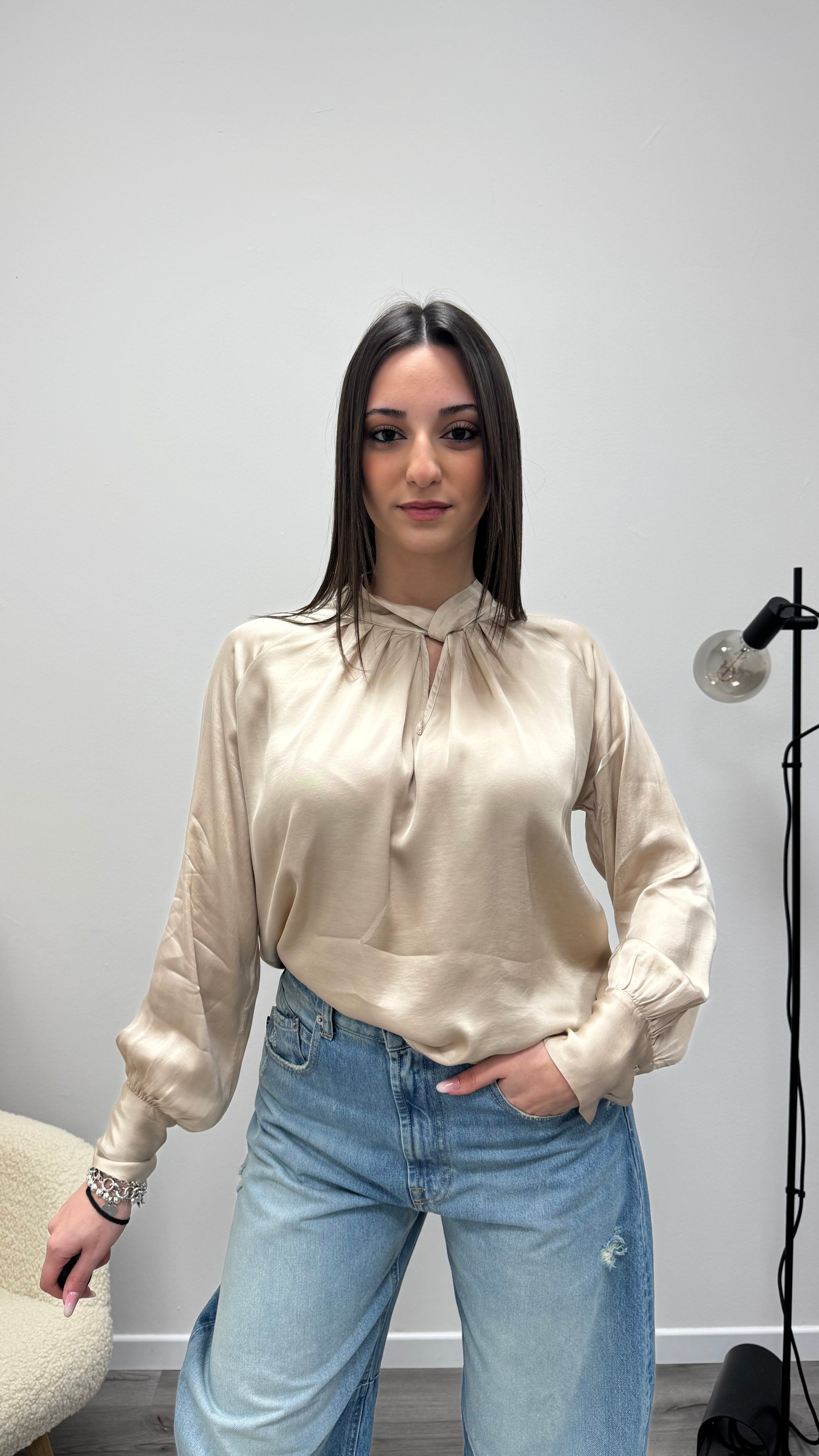 Blusa raso viscosa 100% nodo Haveone Beige
