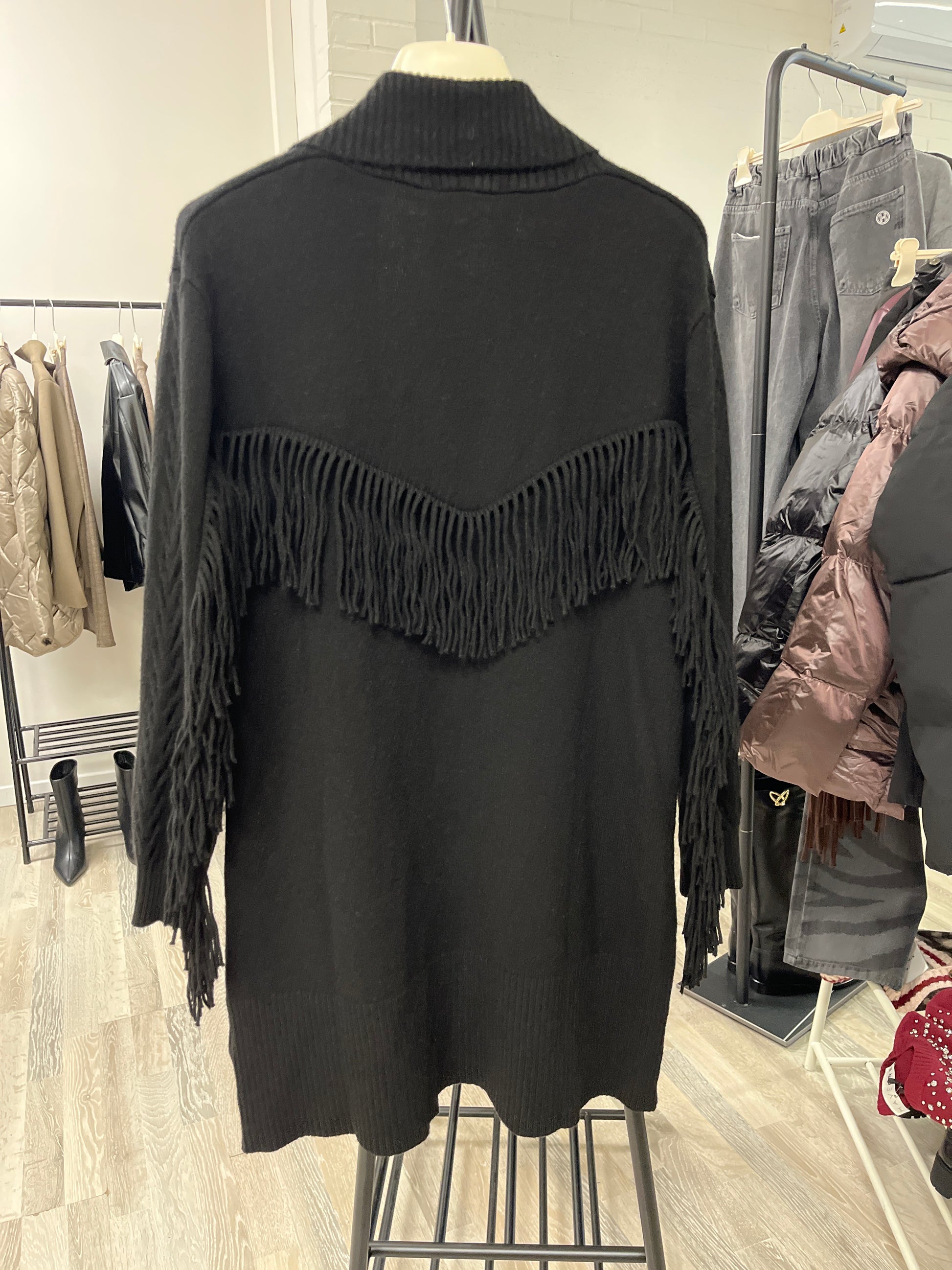 Cardigan Lungo con Frange Nero Kiki Six
