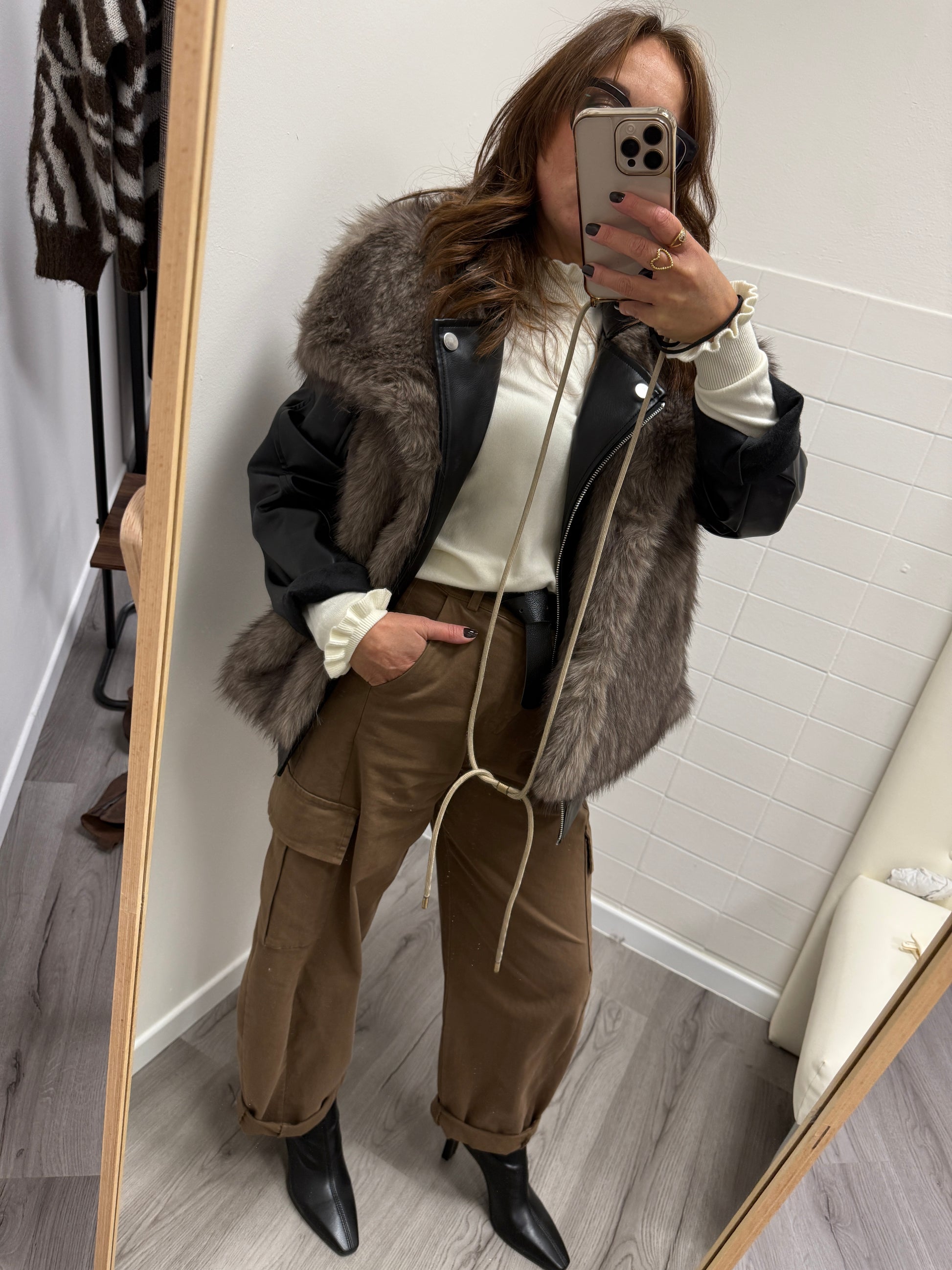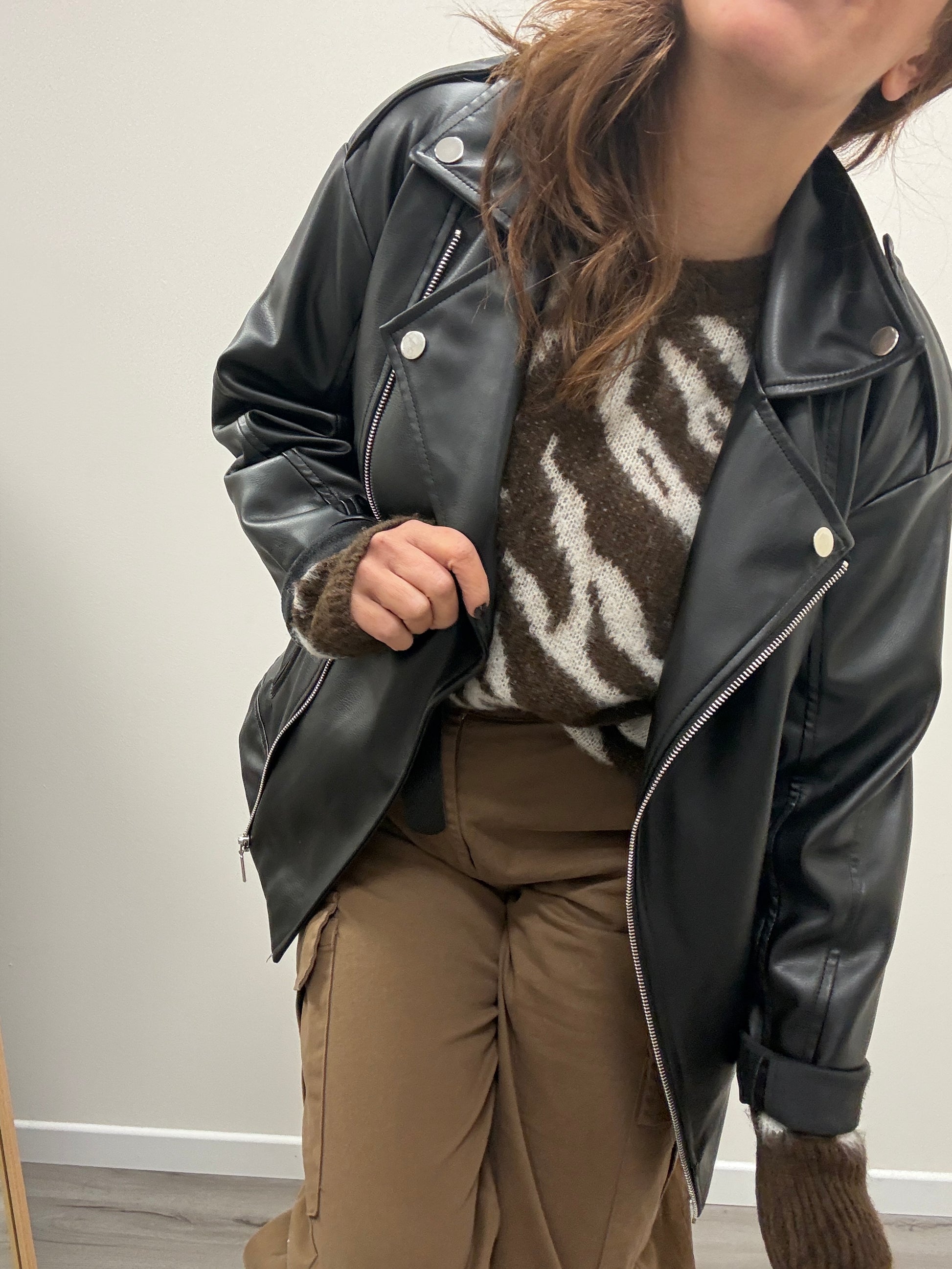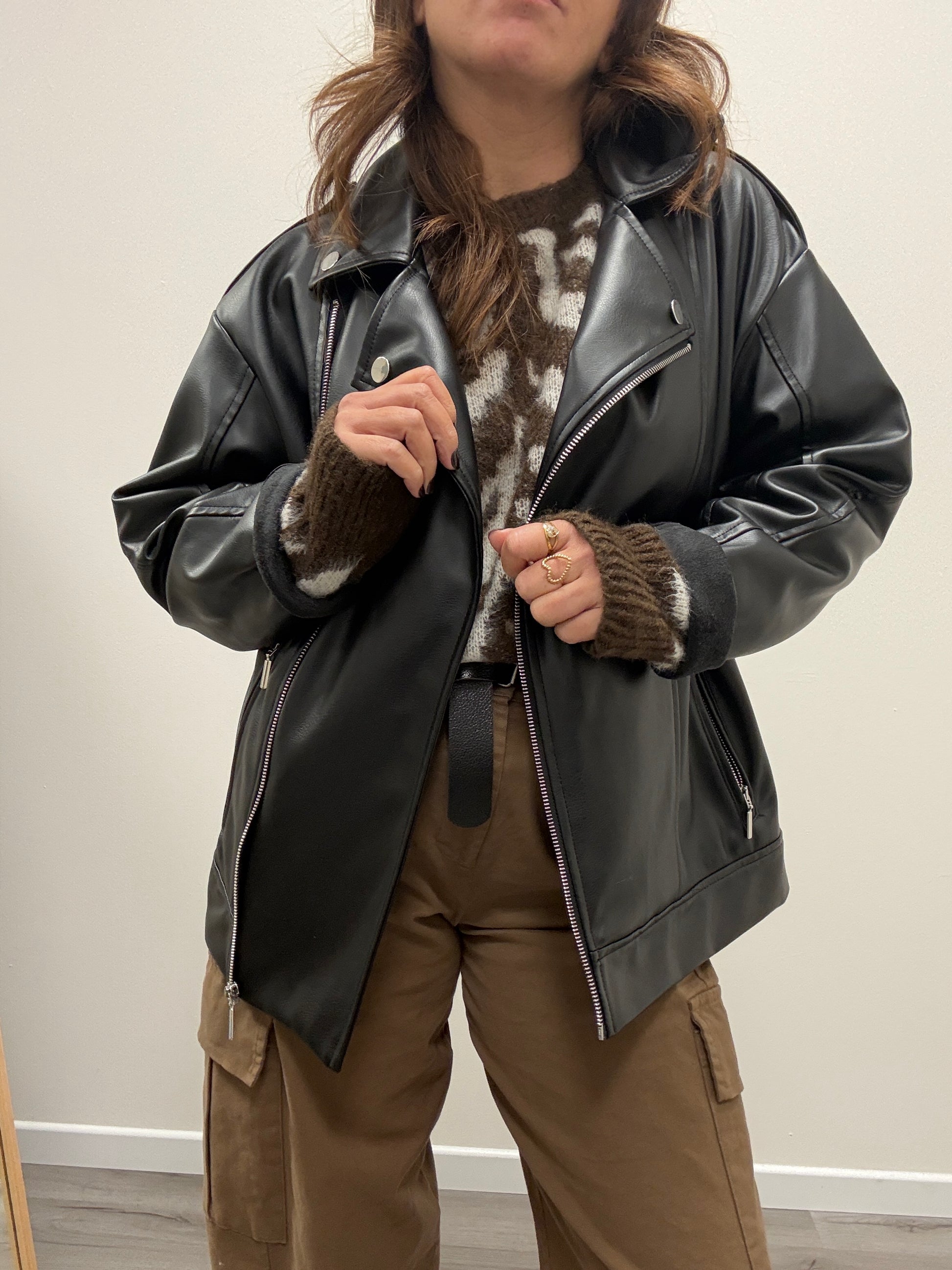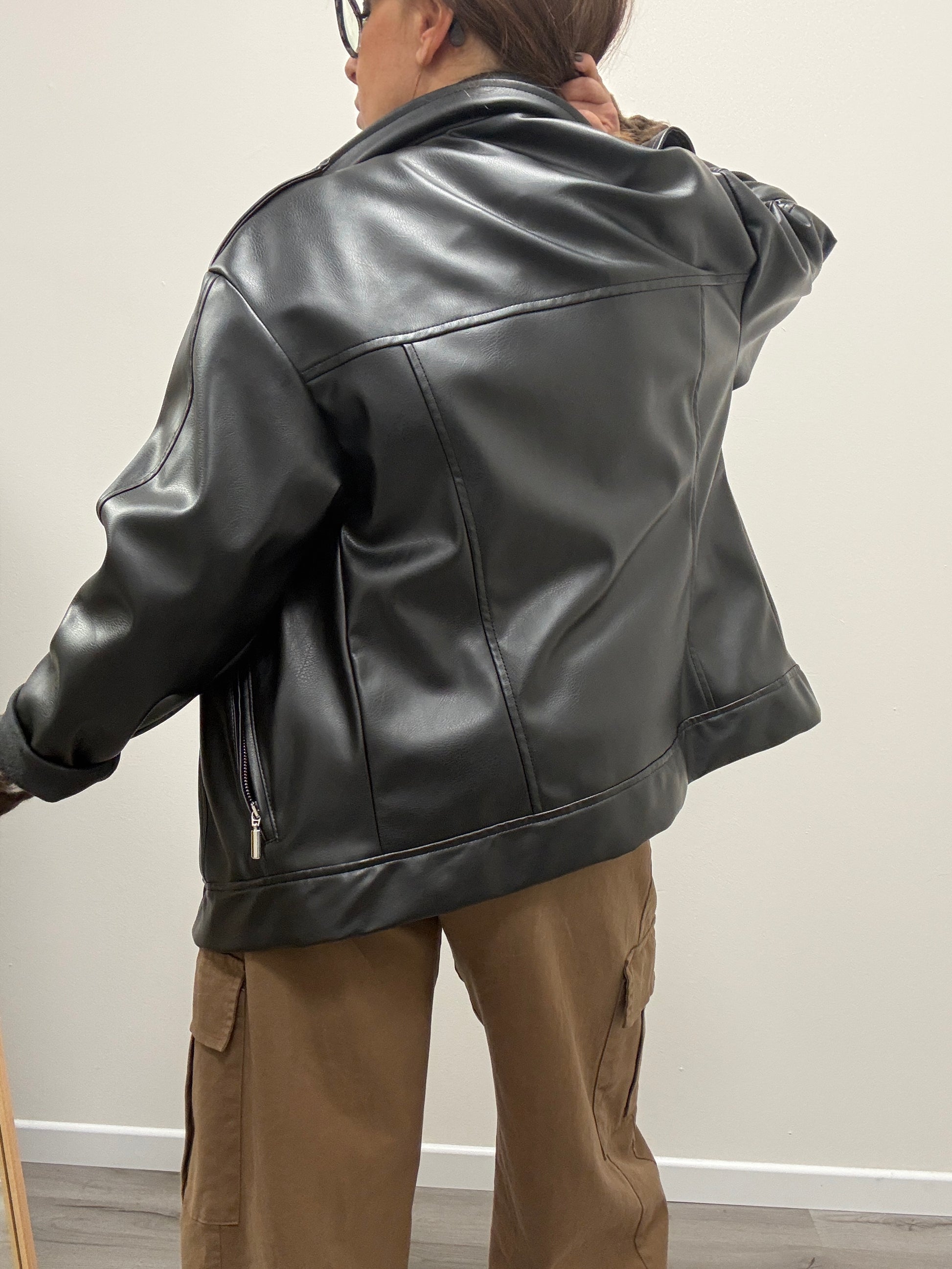 Haveone oversized jacket in soft eco-leather with zip fastening on the front and side pockets, silver stud detail.
