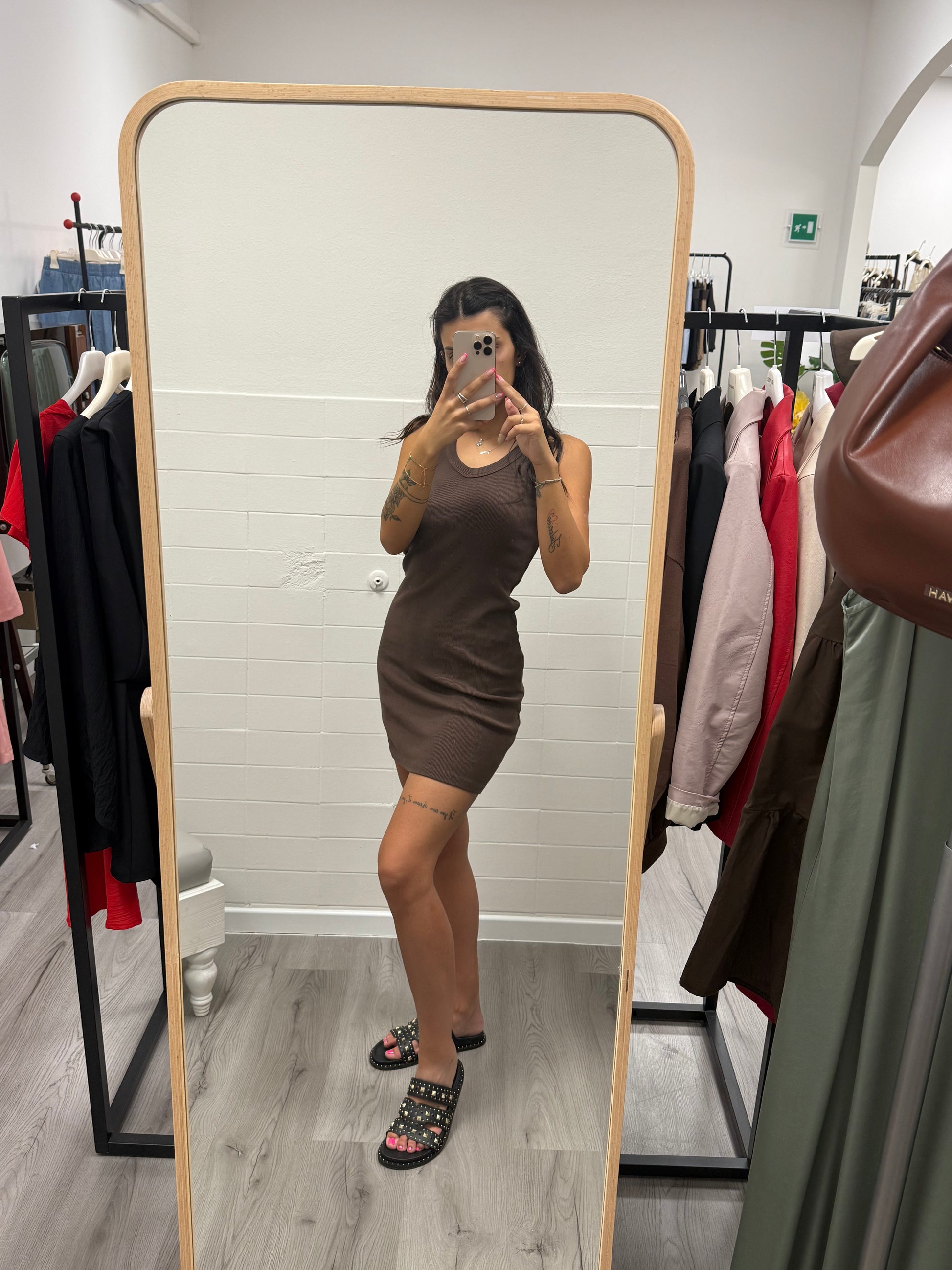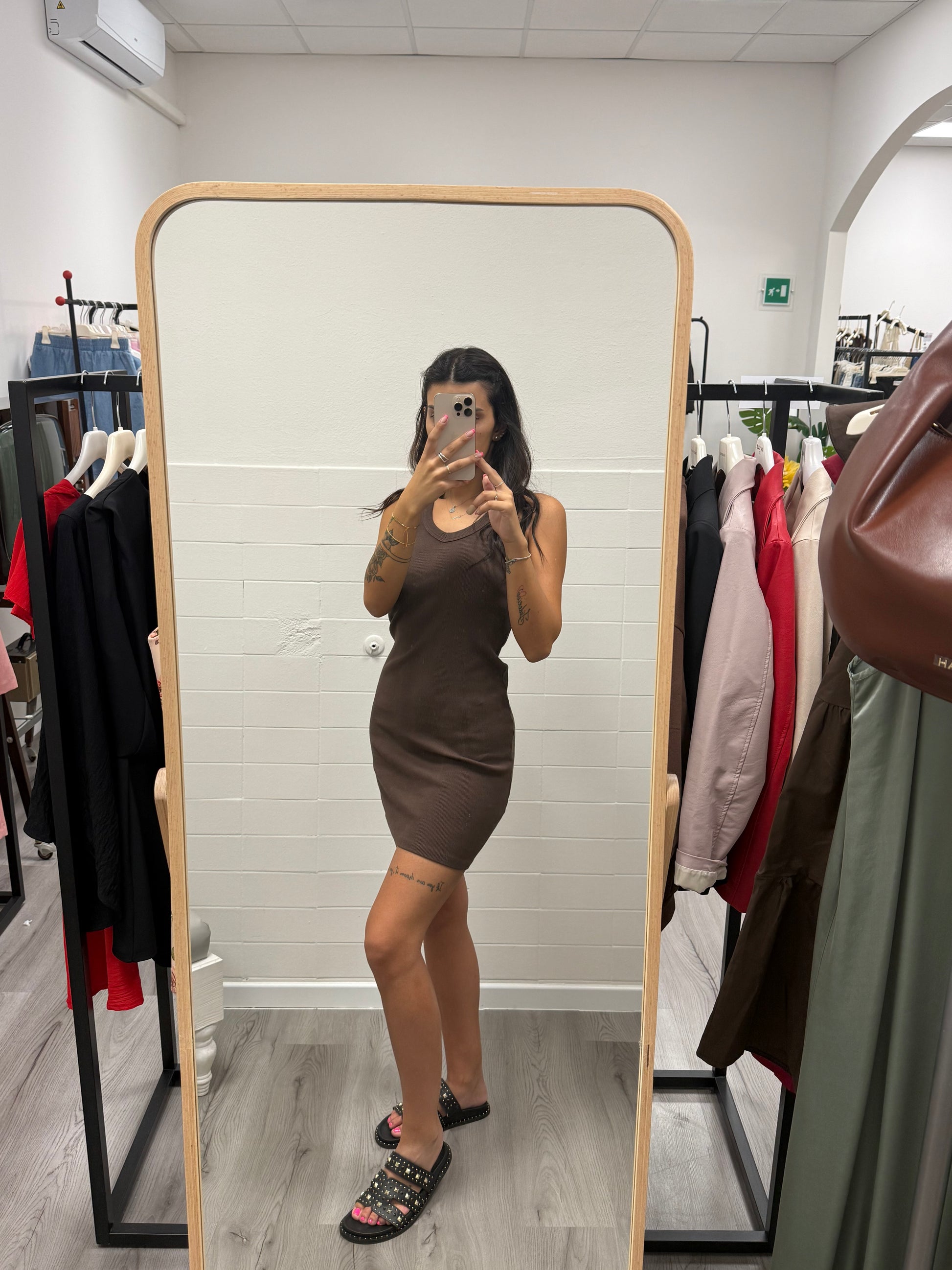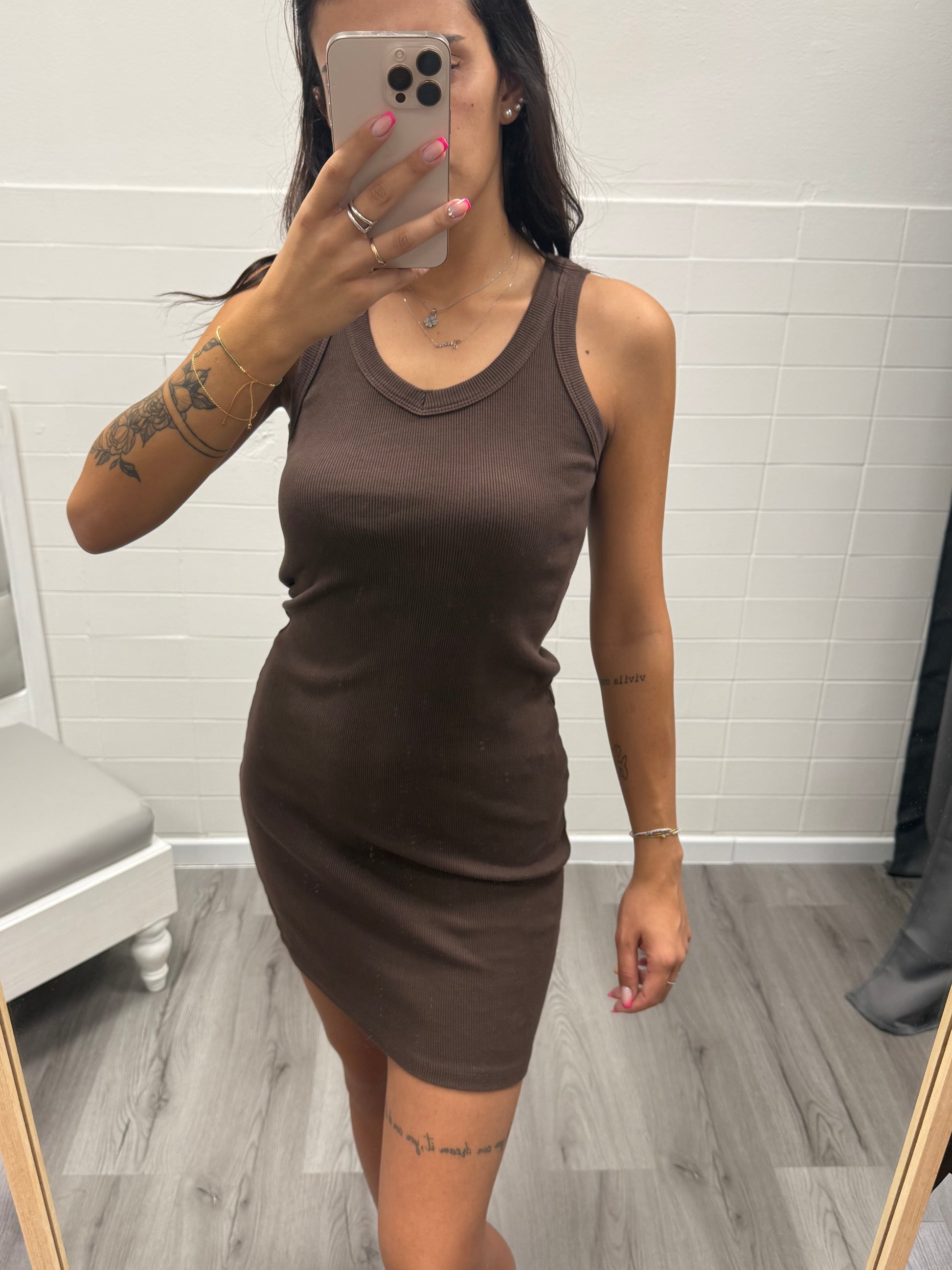 HaveOne Abito tubino a Costine elasticizzato Moro