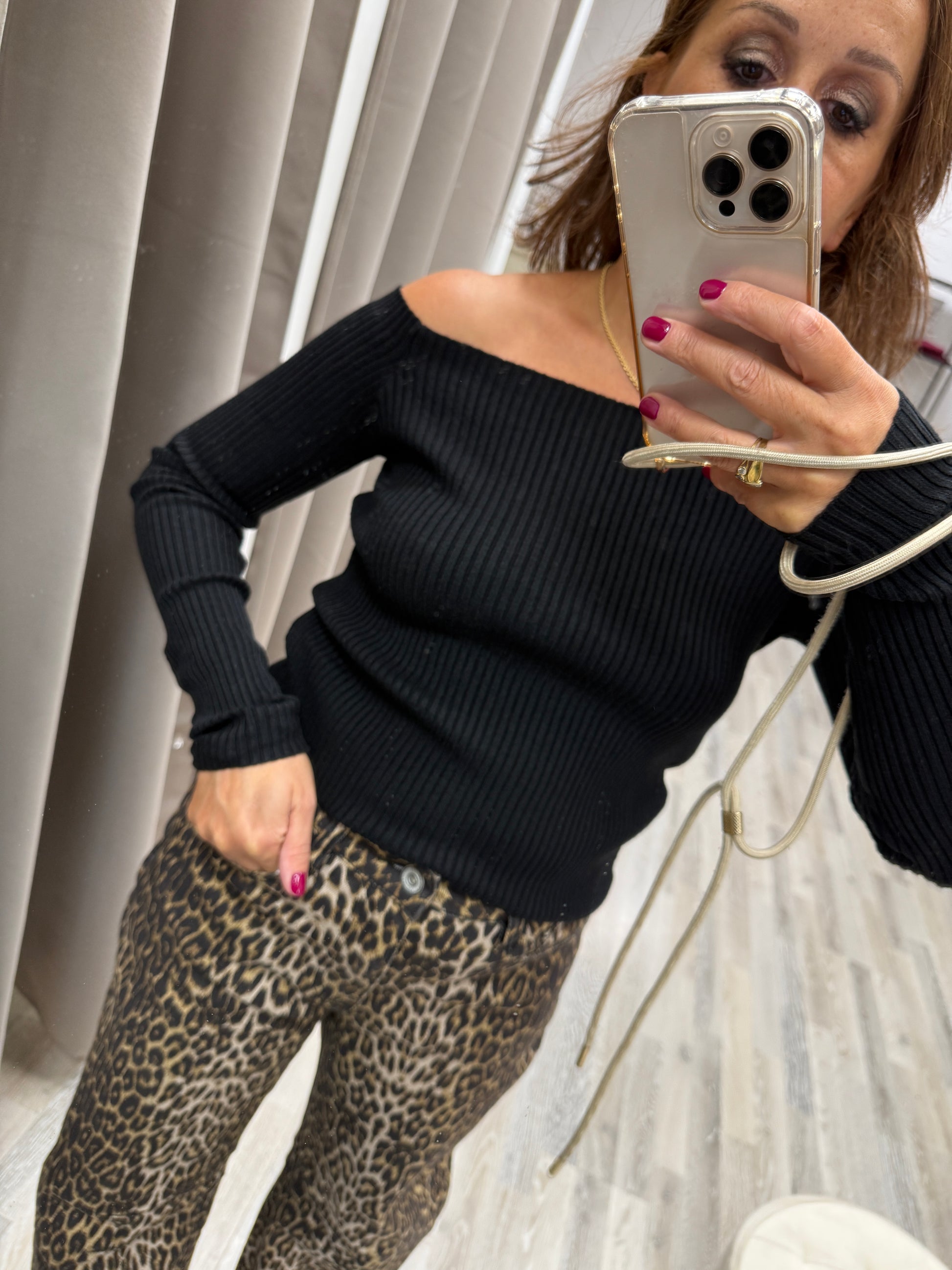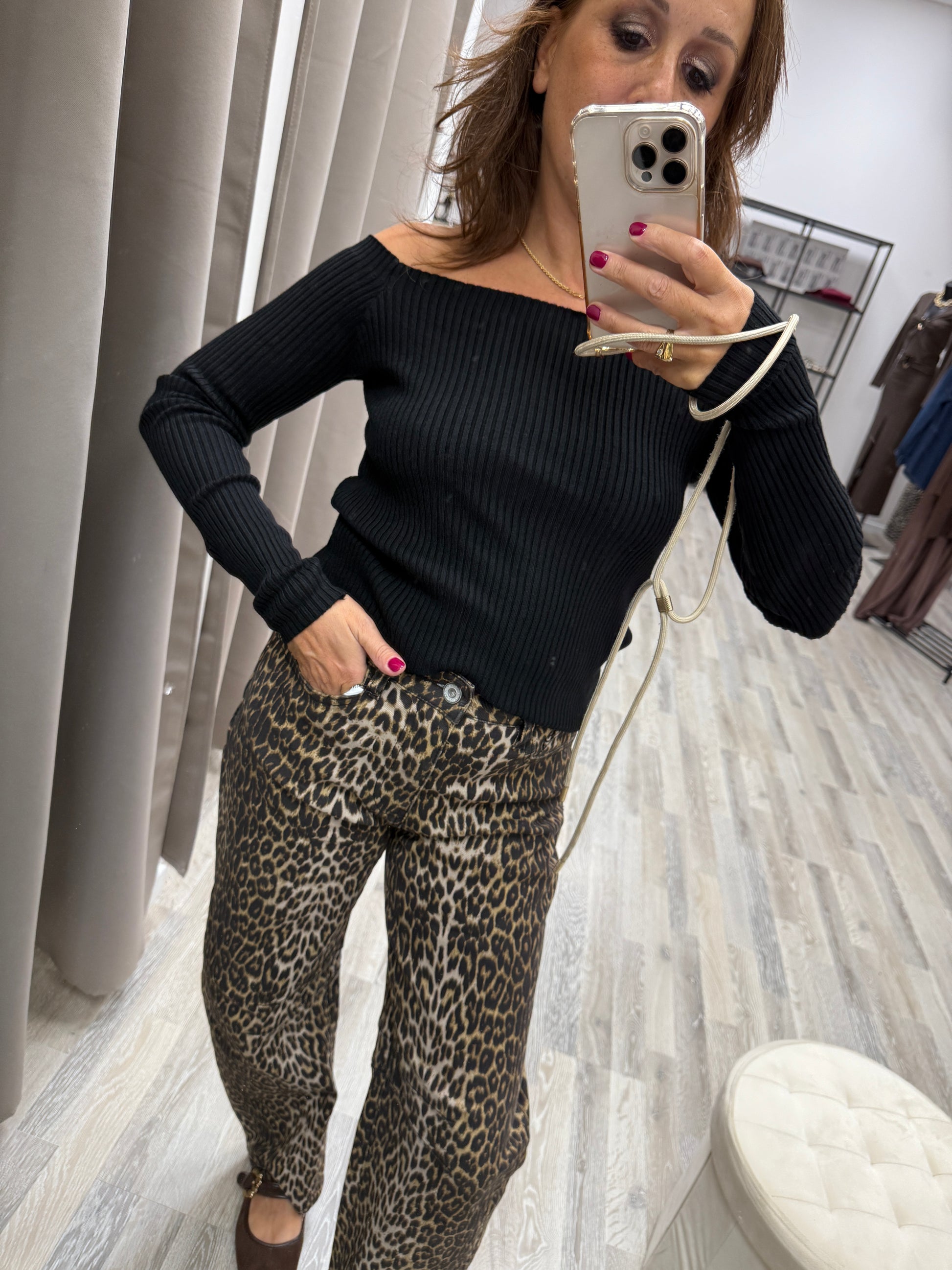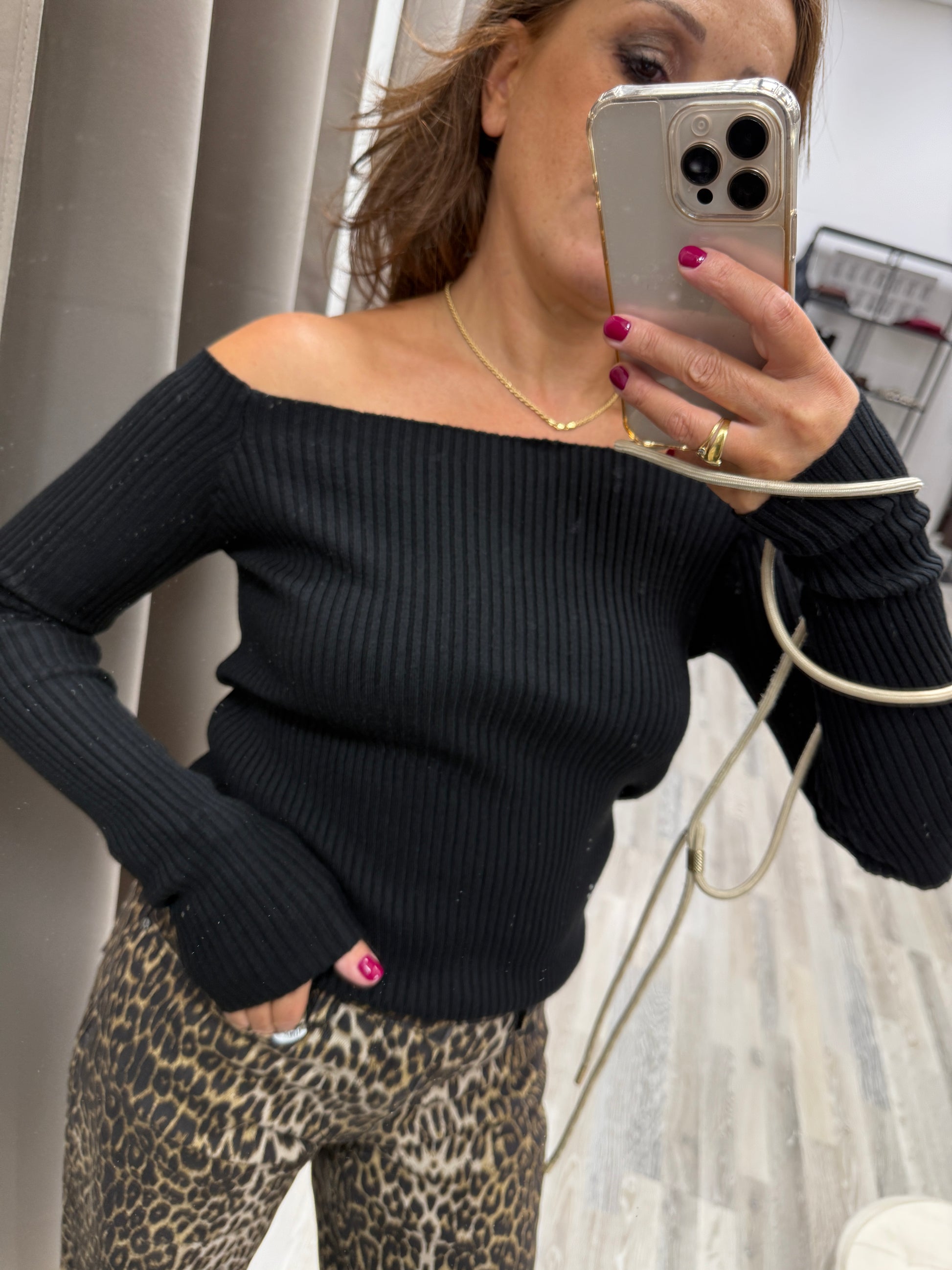 Maglia in viscosa e elasticizzata a costine con collo Schiffer Corta sui fianchi