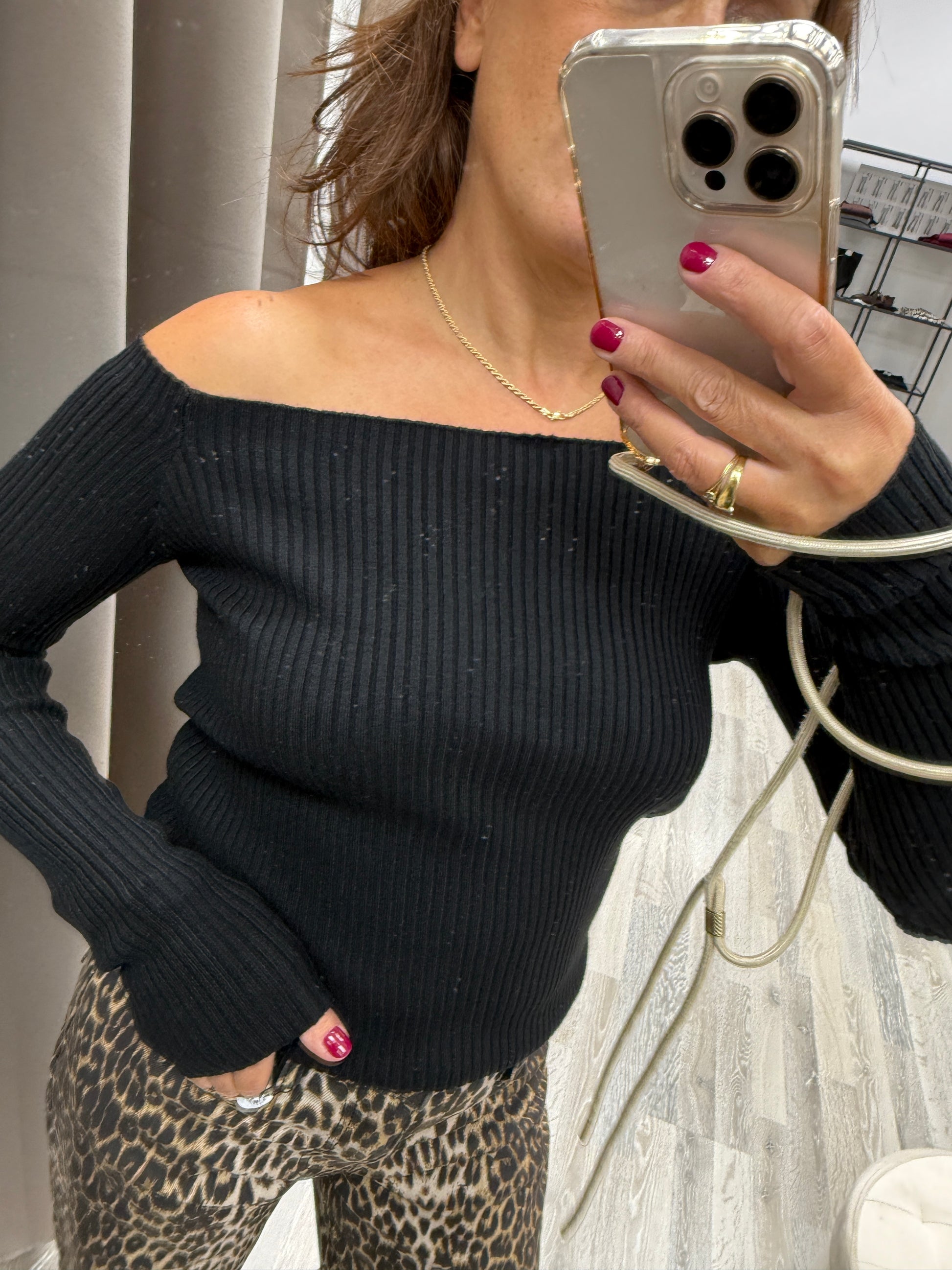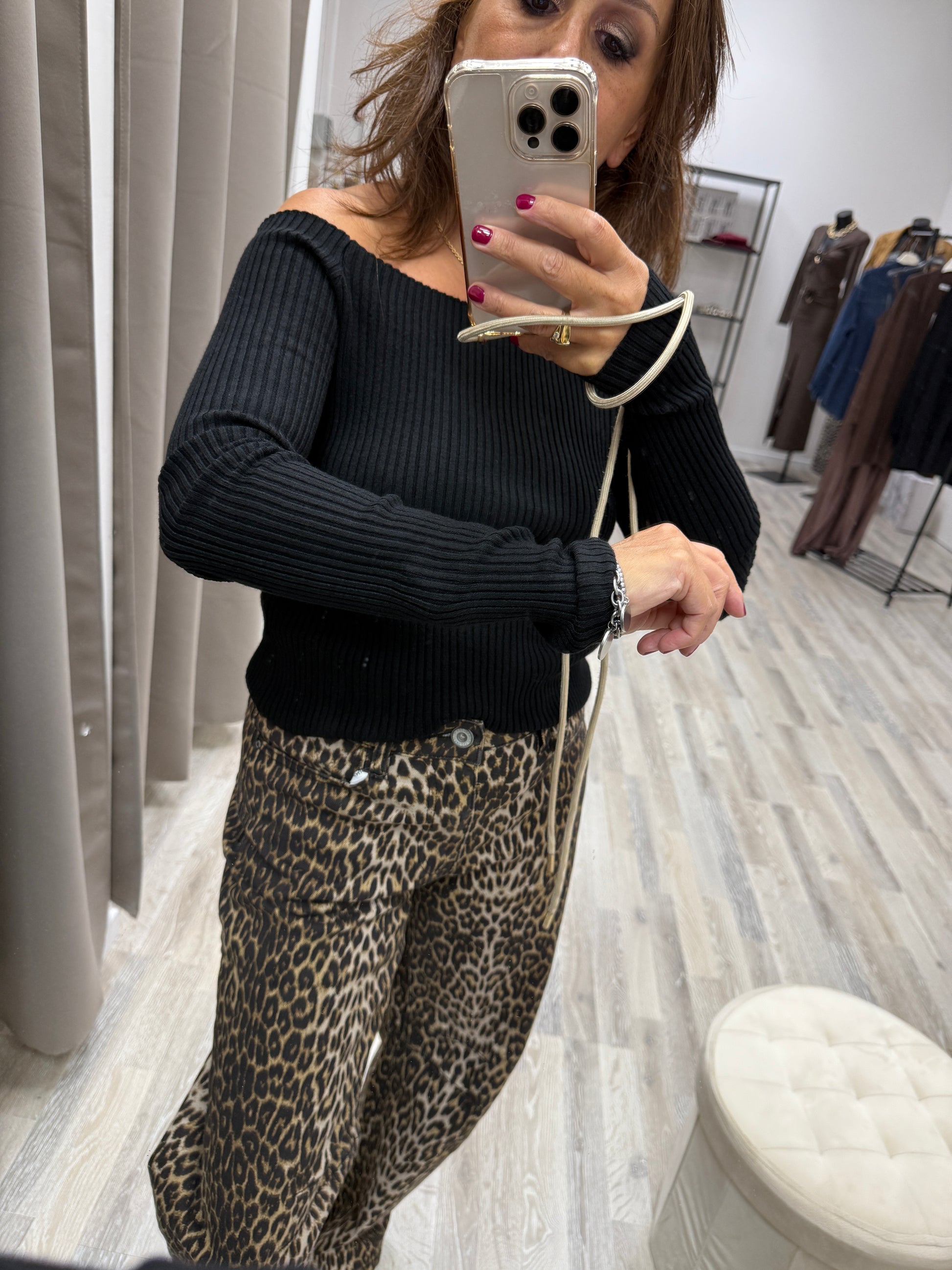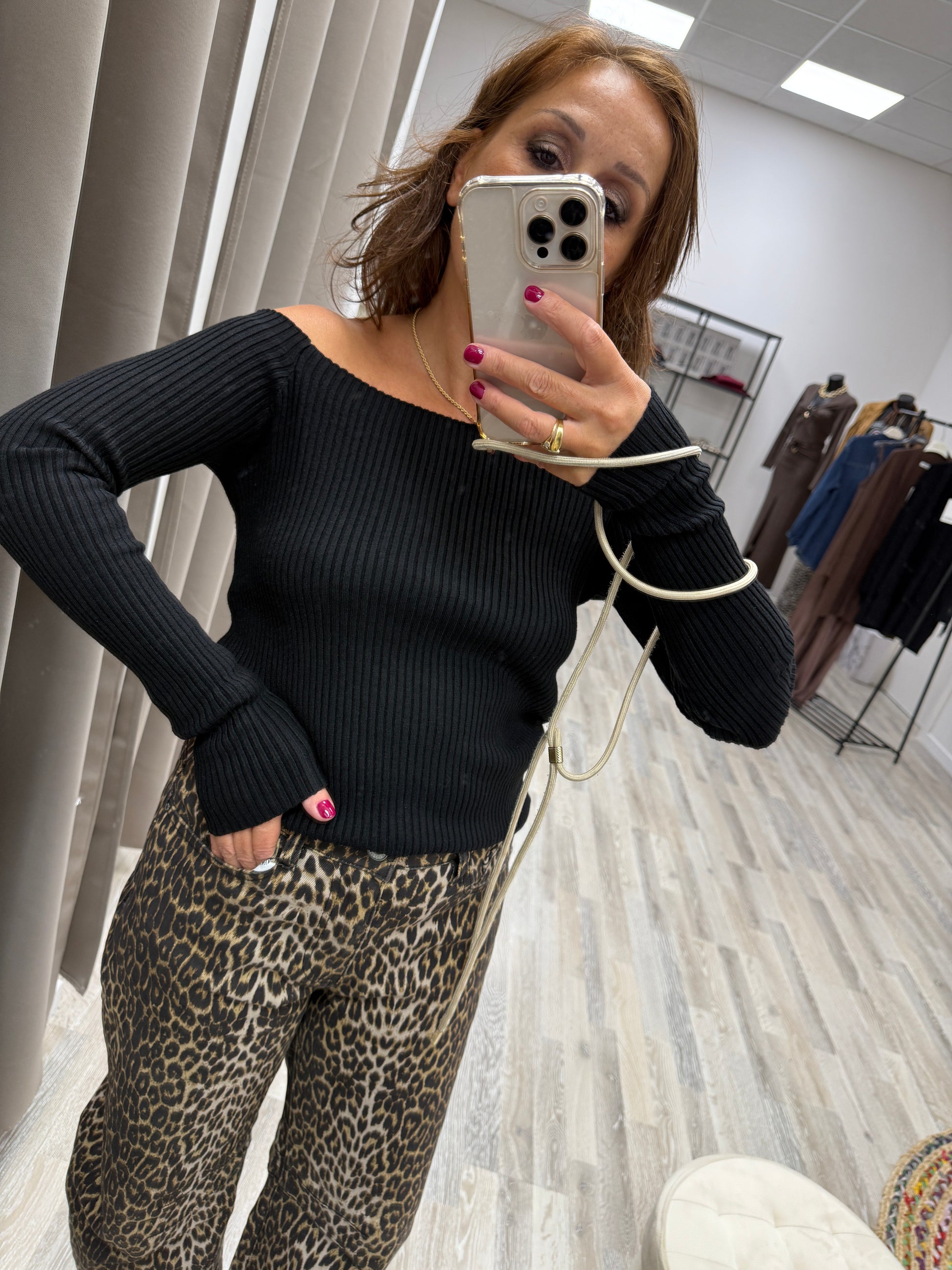 Maglia in viscosa e elasticizzata a costine con collo Schiffer Corta sui fianchi
