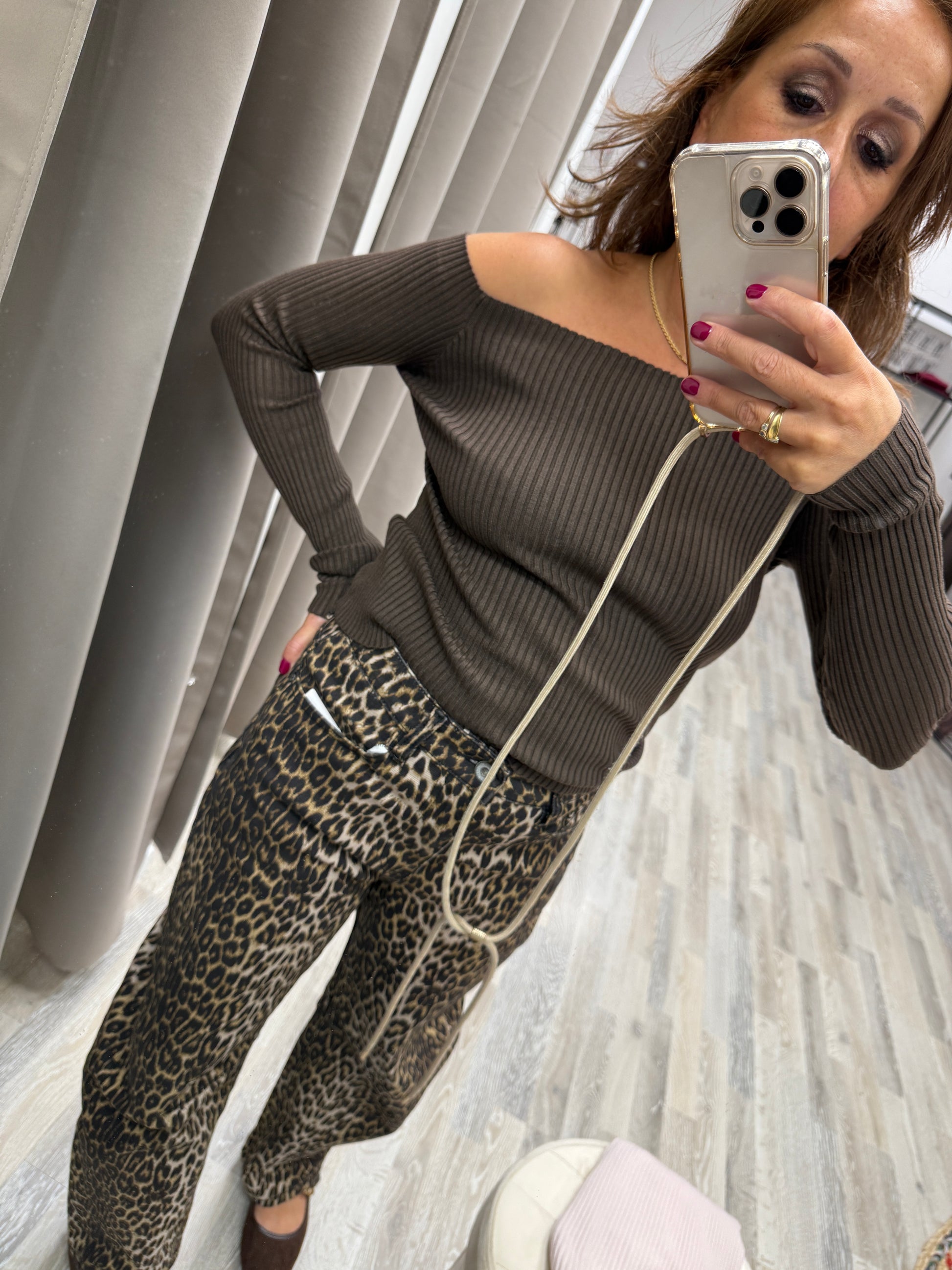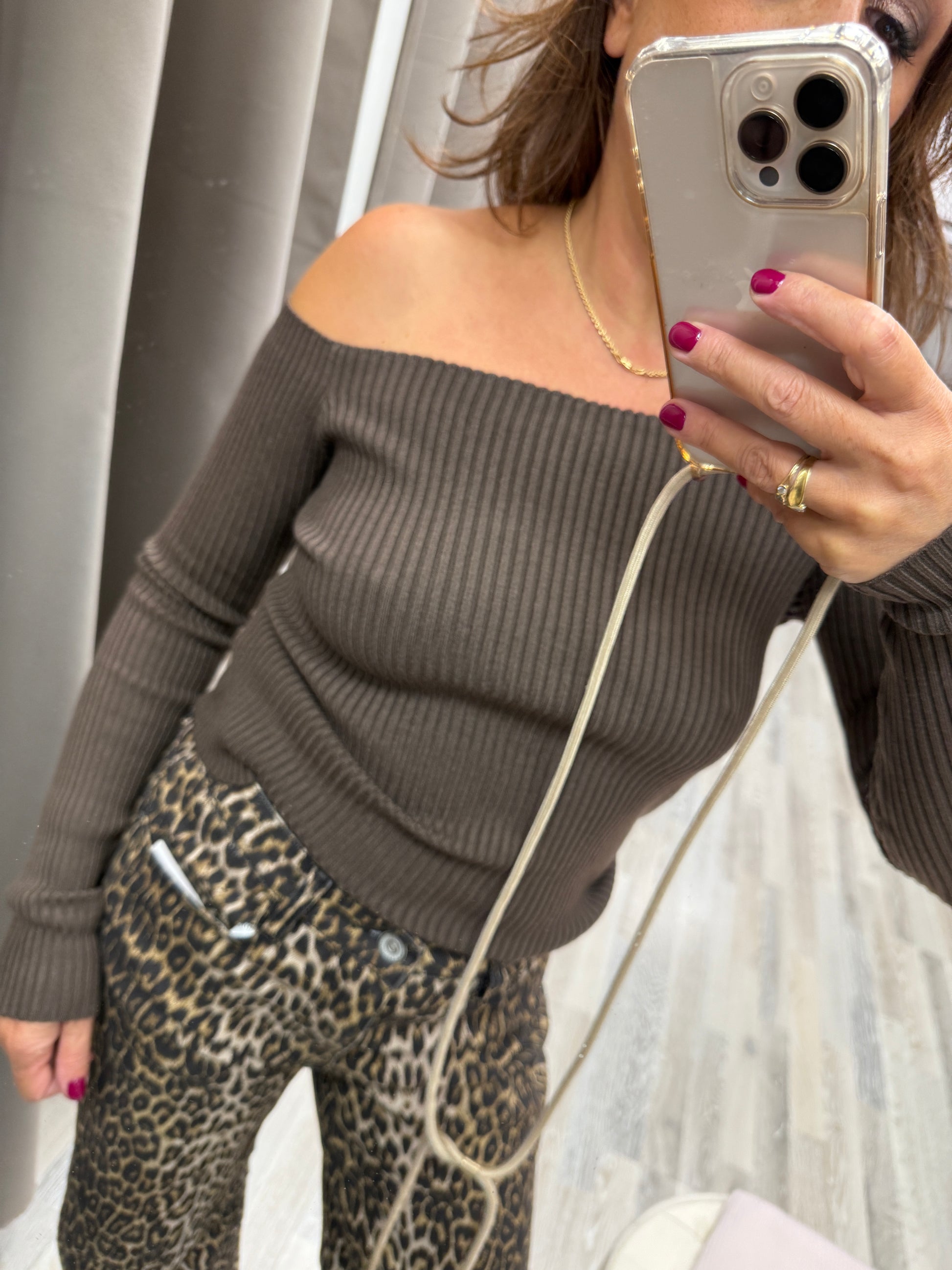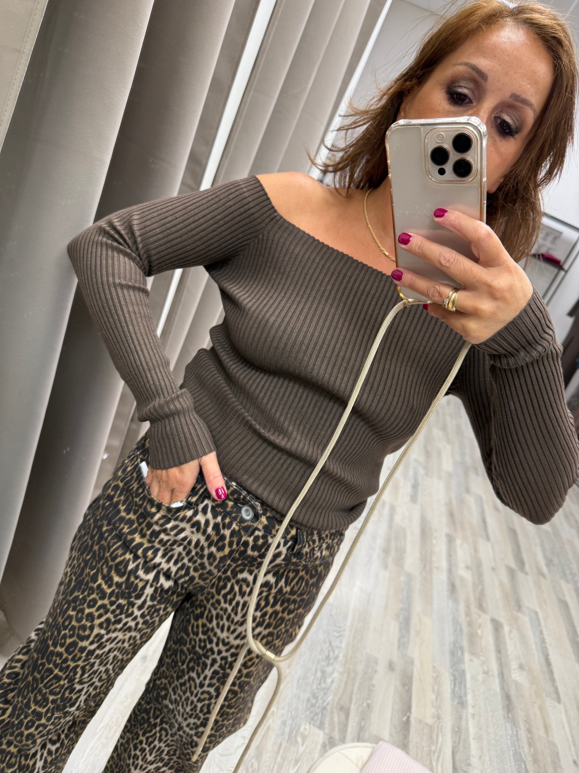 Maglia in viscosa e elasticizzata a costine con collo Schiffer Corta sui fianchi
