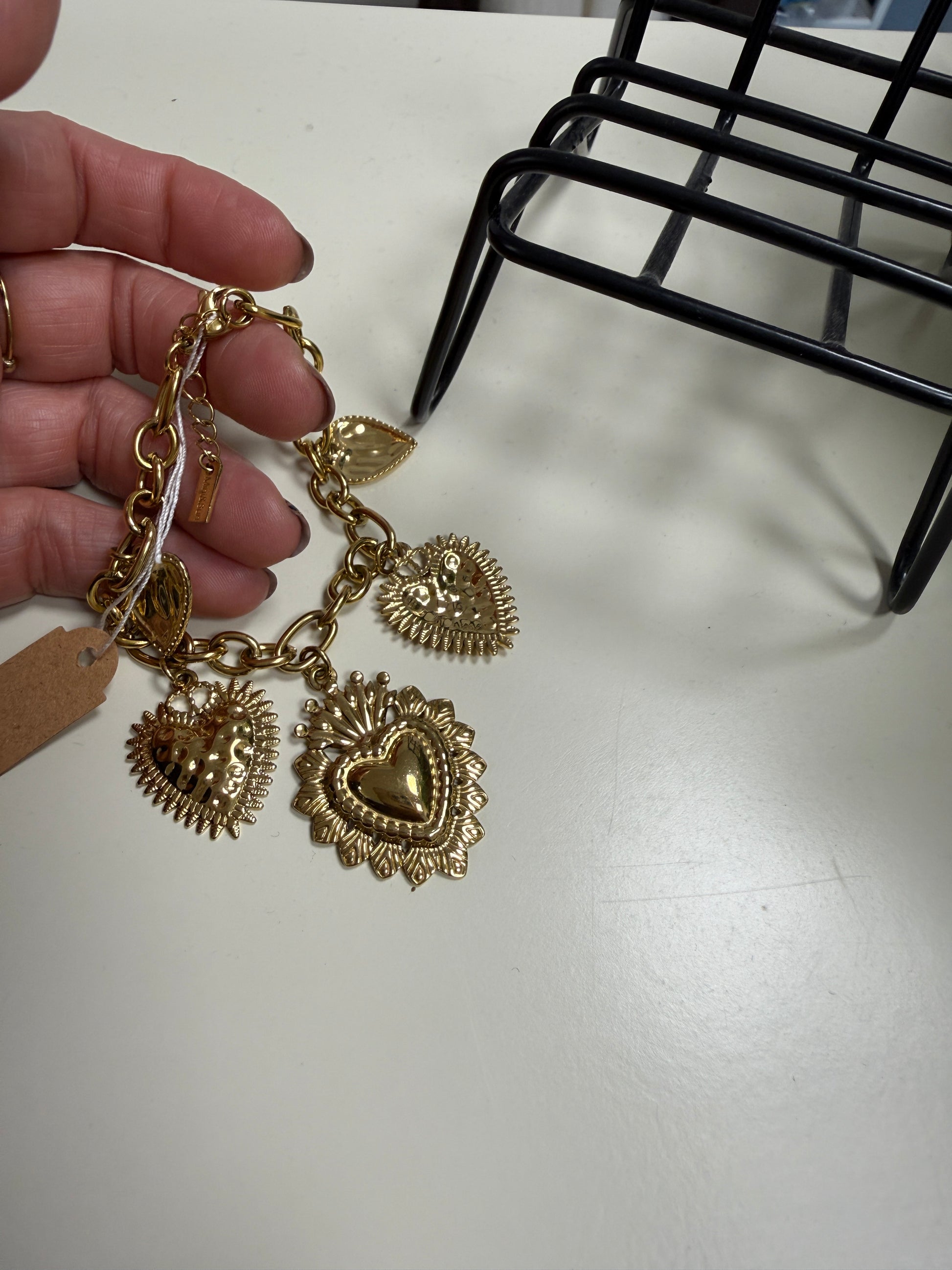 Bracciale oro in acciaio A catena con ciondoli, cuore sacro