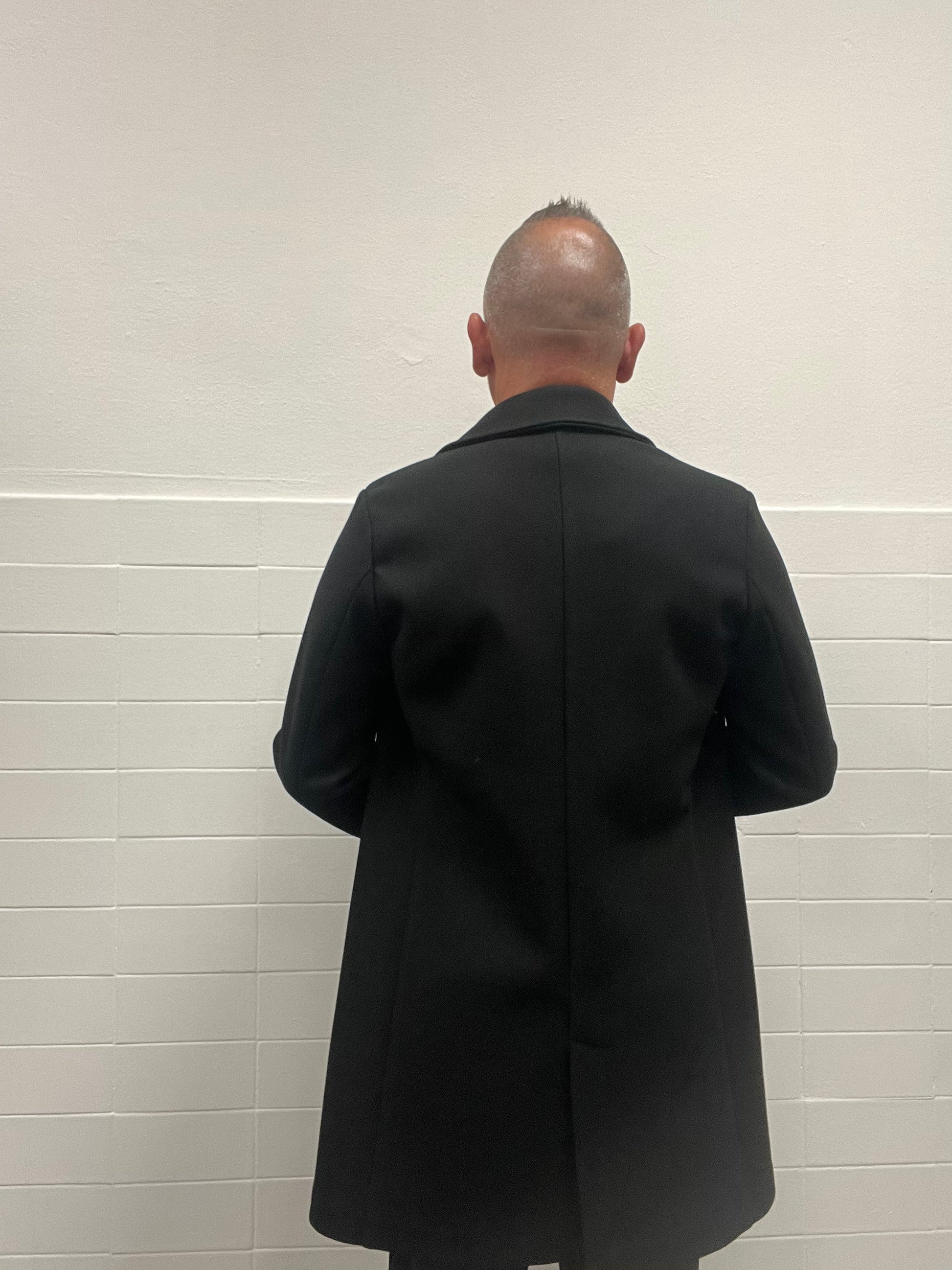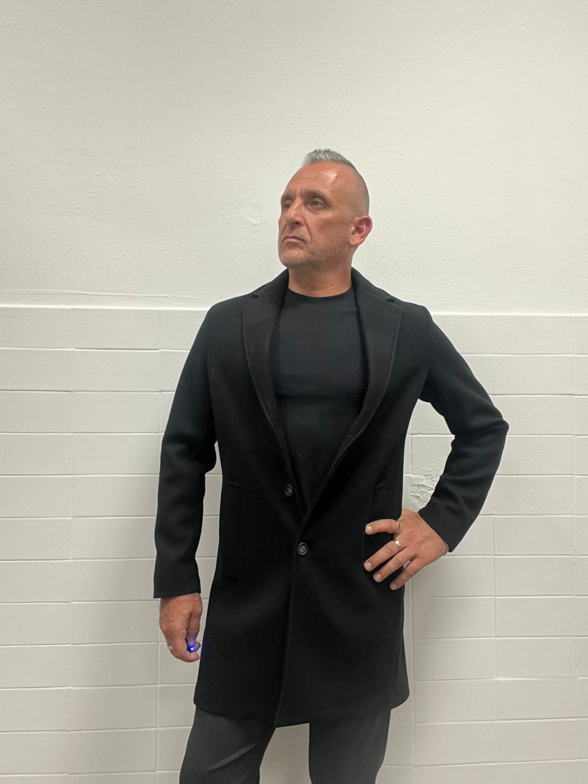 Cappotto monopetto 7x8 FLR nero tasche a pattina sul davanti fit regolare lunghezza media