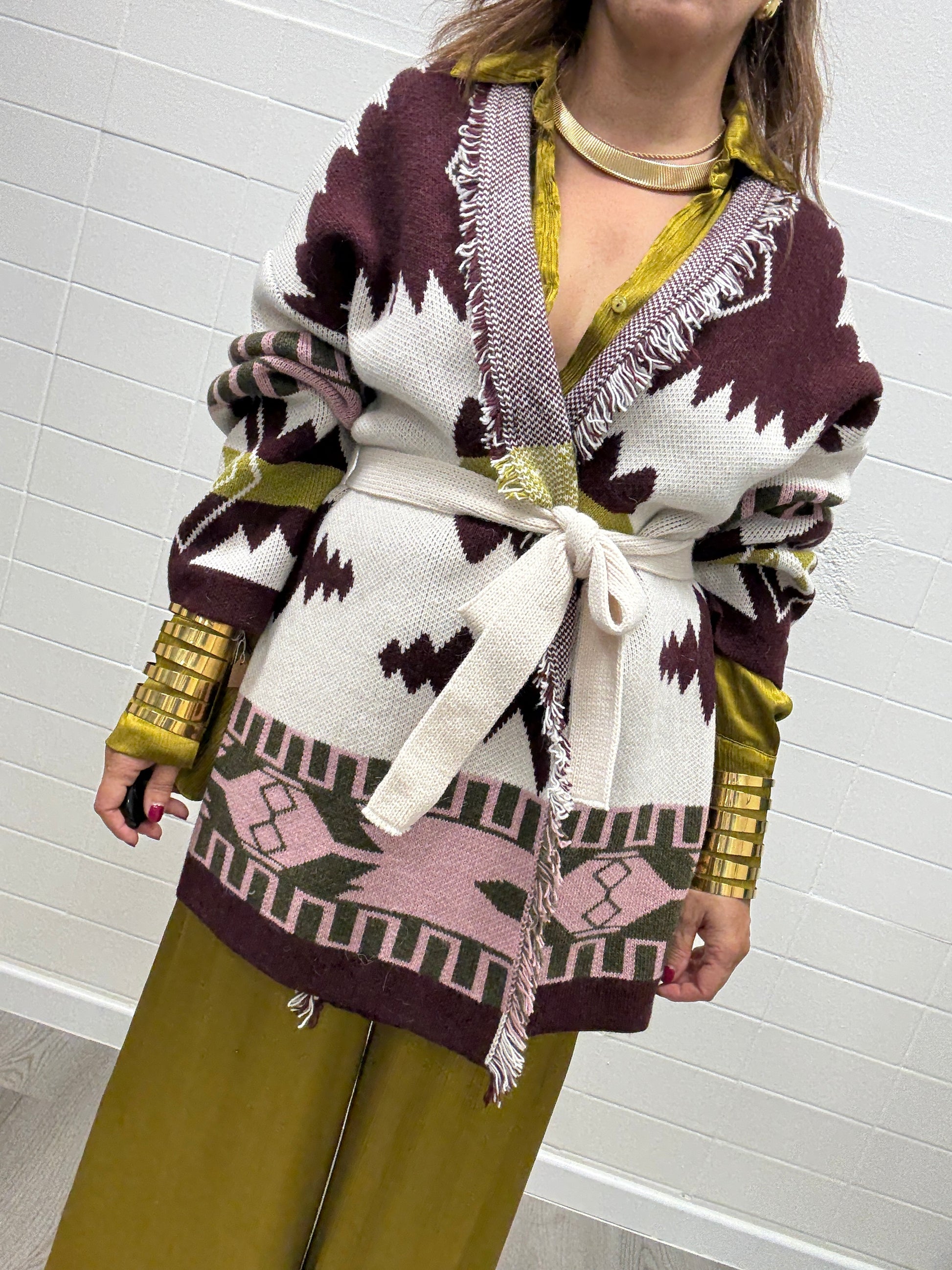 Cardigan fantasia etnica burro e vino Haveone