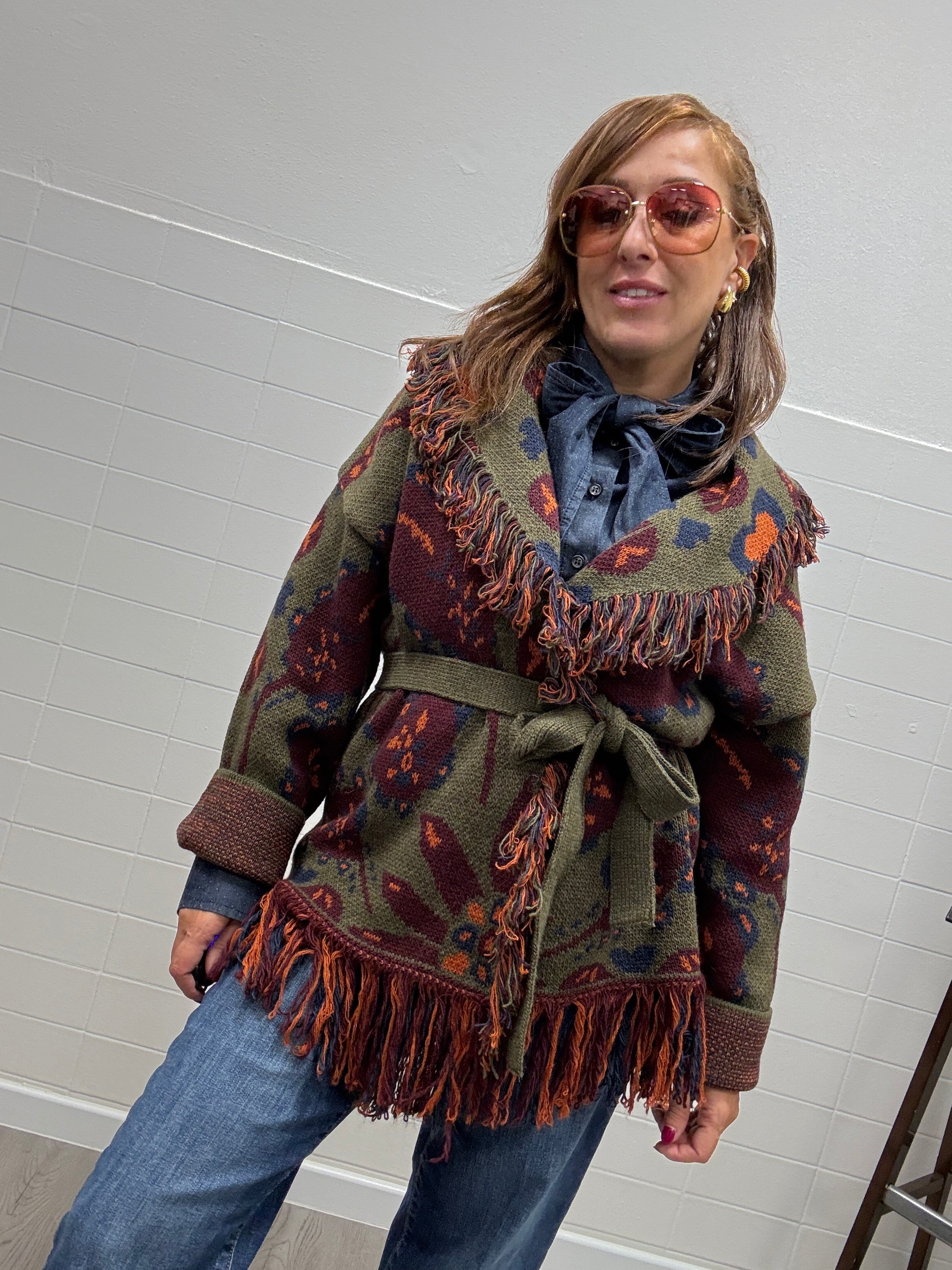 Cardigan cappotto Lungo in maglia pesante in fantasia etnica.