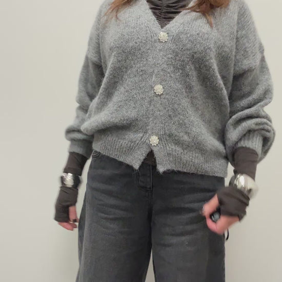Nuovo cardigan gioiello Haveone con bottone in strass.