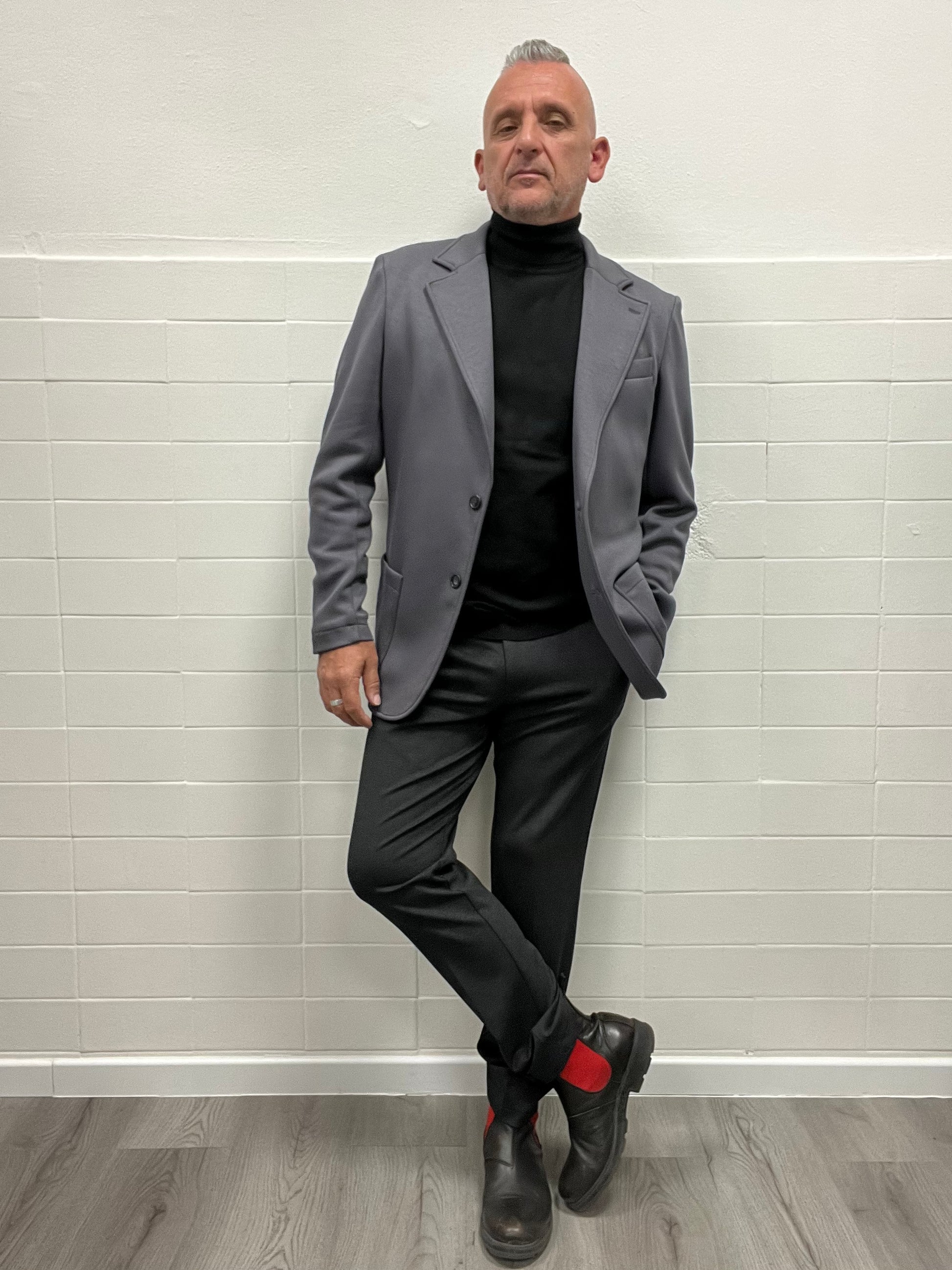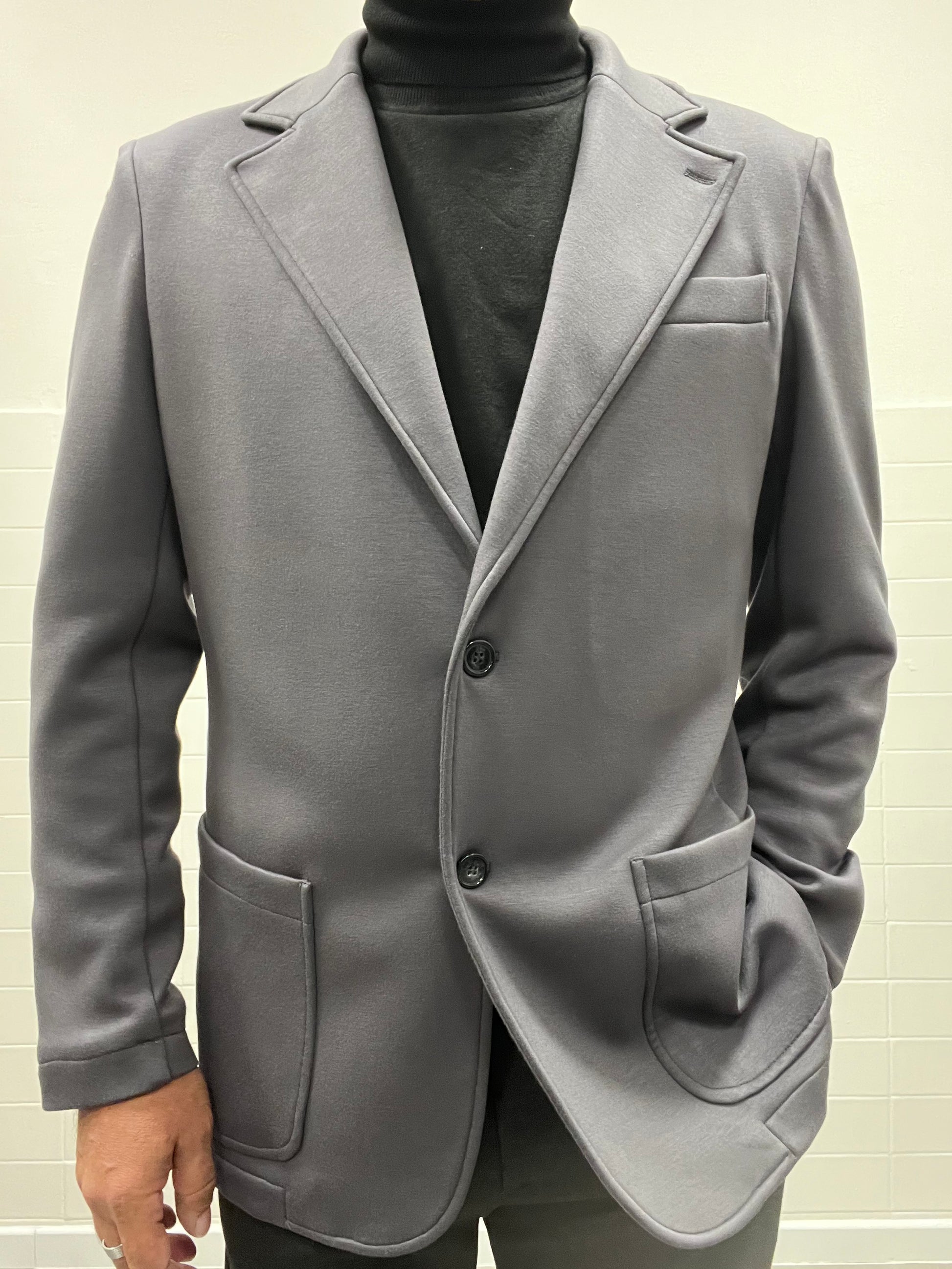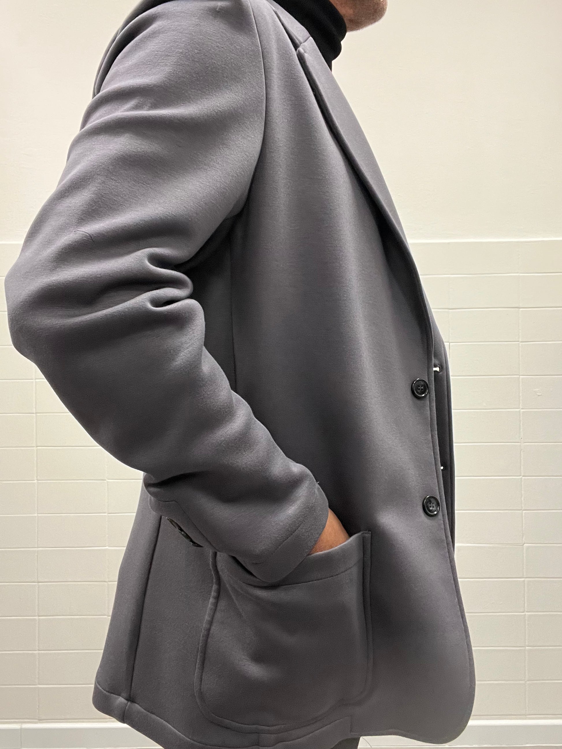 Giacca in neoprene Grigia monopetto chiusura due bottoni con tasche e taschino interno