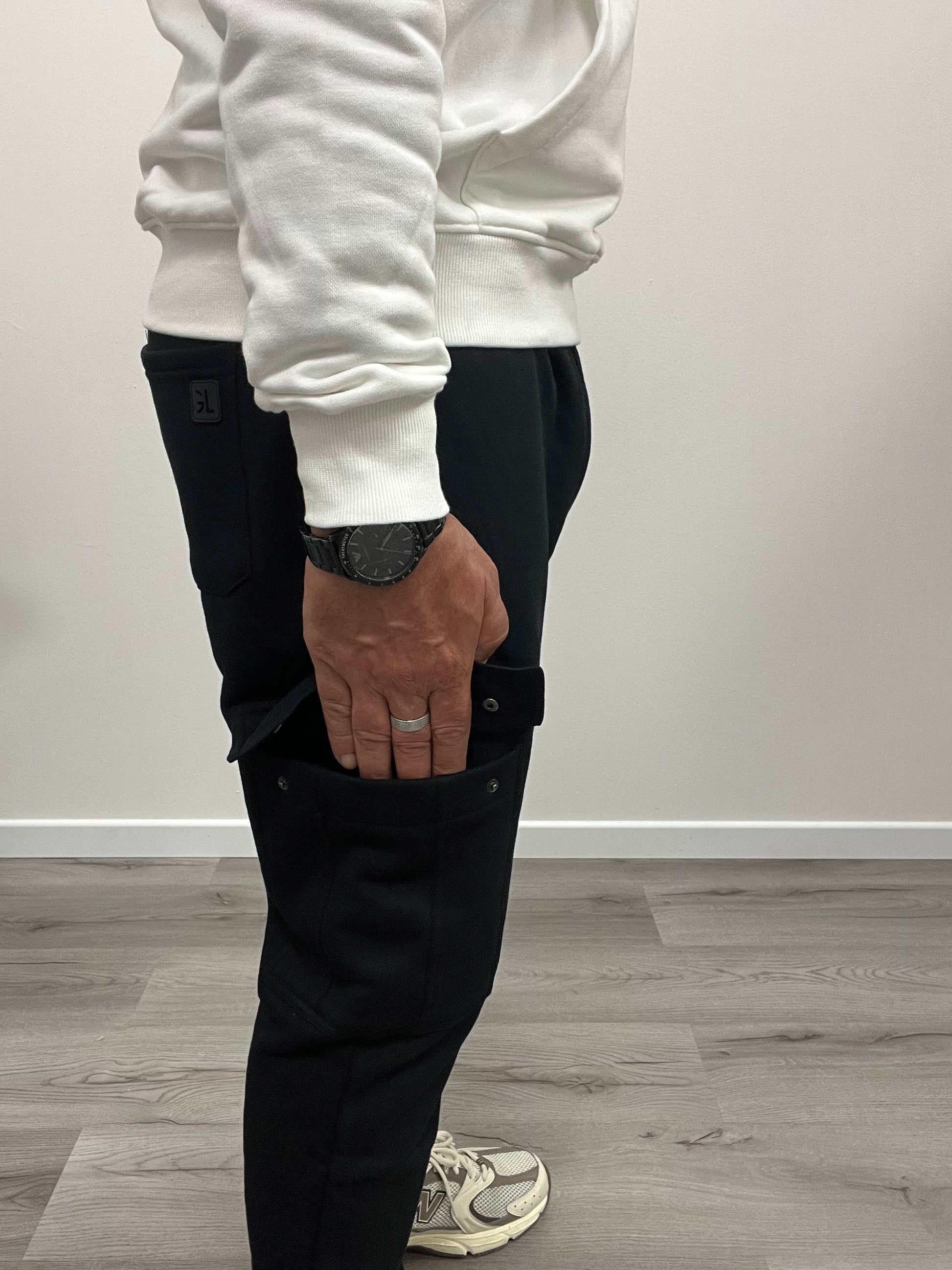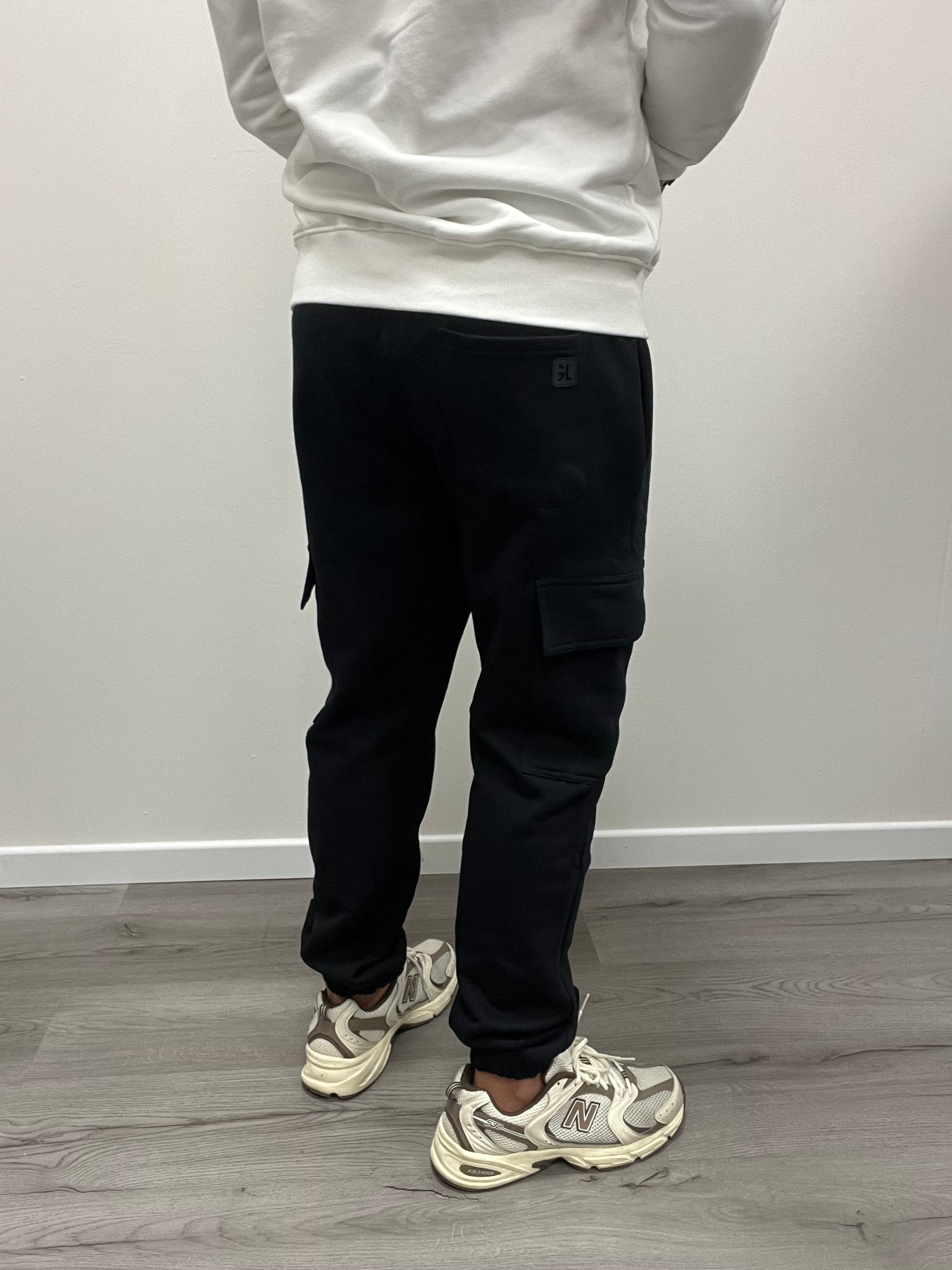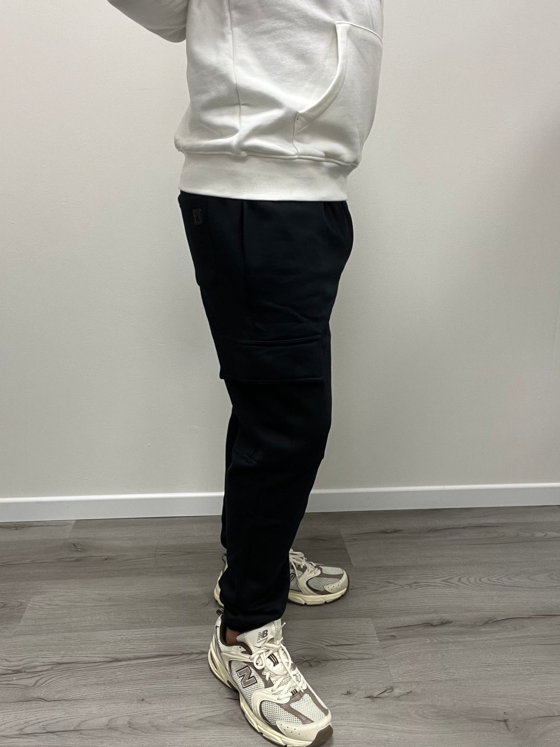 Pantalone cargo in felpa Neri con elastico e coulisse in vita e sul fondo tasche laterali