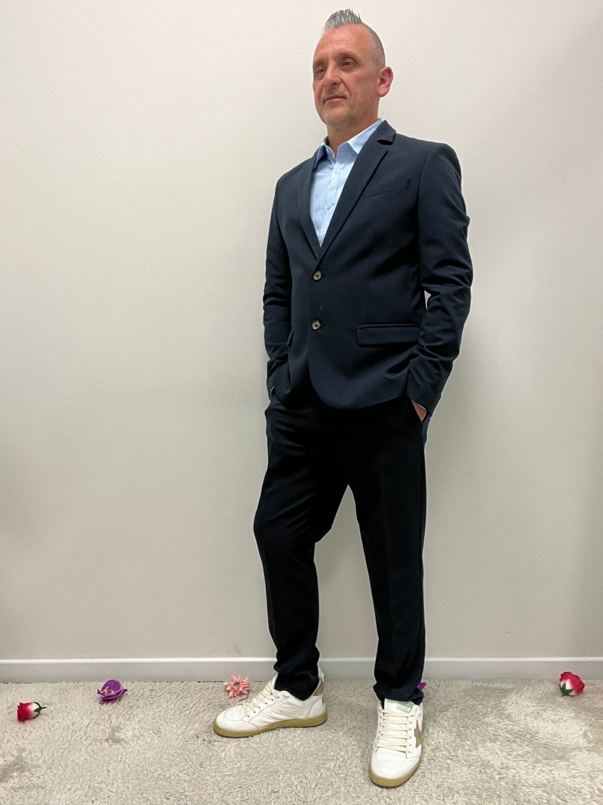 Giacca blazer monopetto con tasche e revere classico con il suo pantalone da abbinare