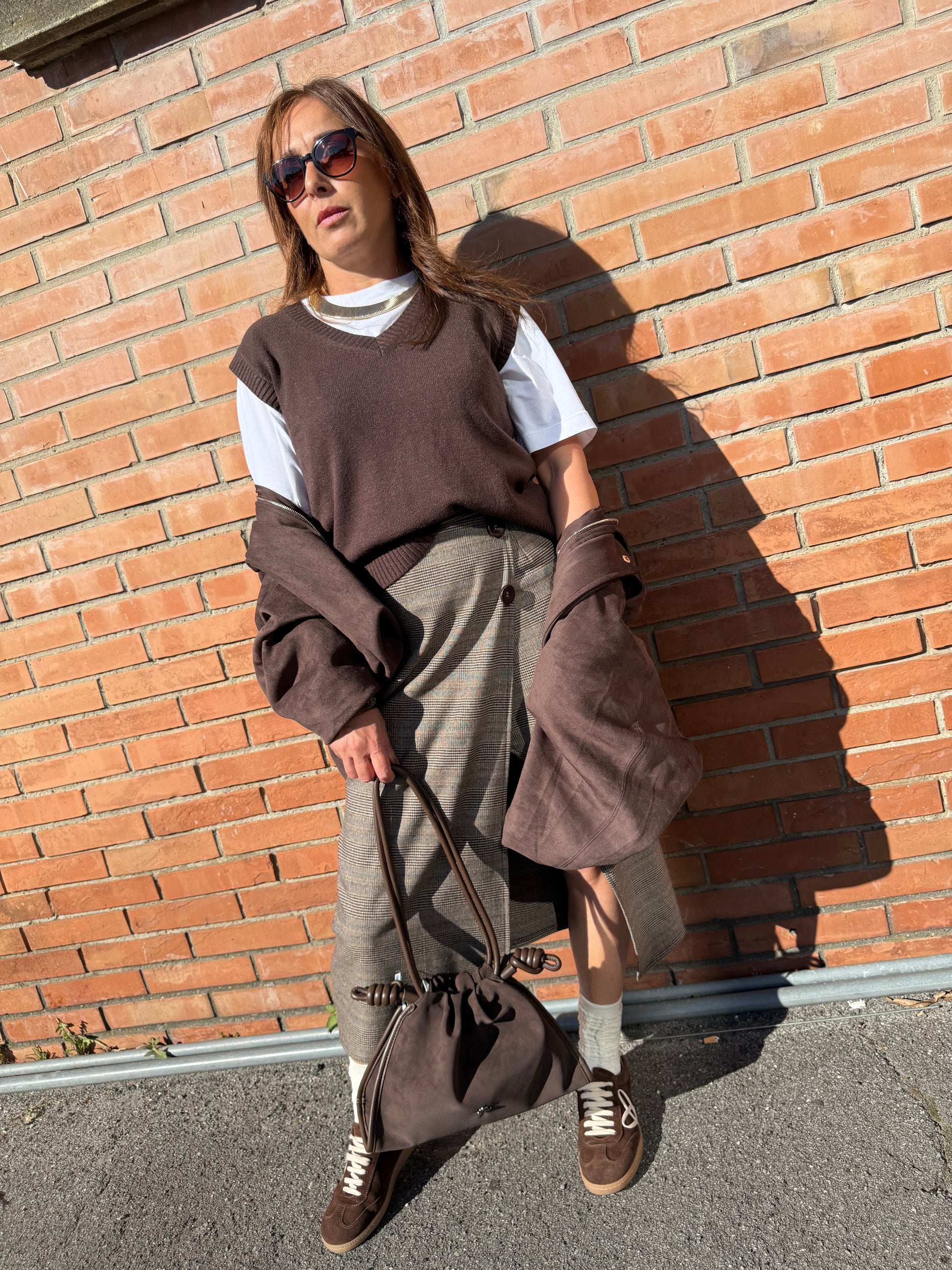 Gilèt in morbida viscosa, modello dritto corto sui fianchi con scollo a V.