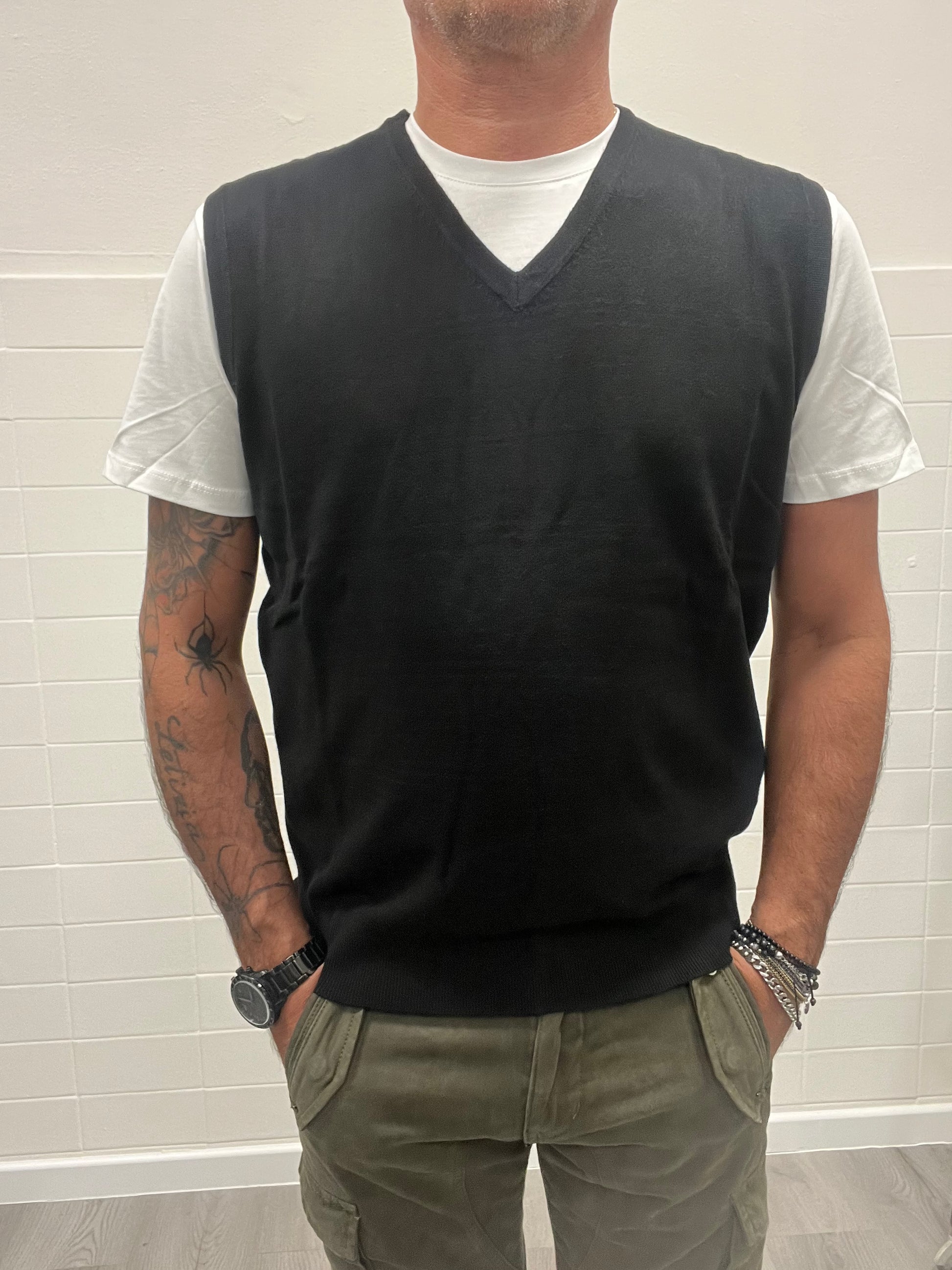 Gilet scollo a V fit regolare nero 7x8