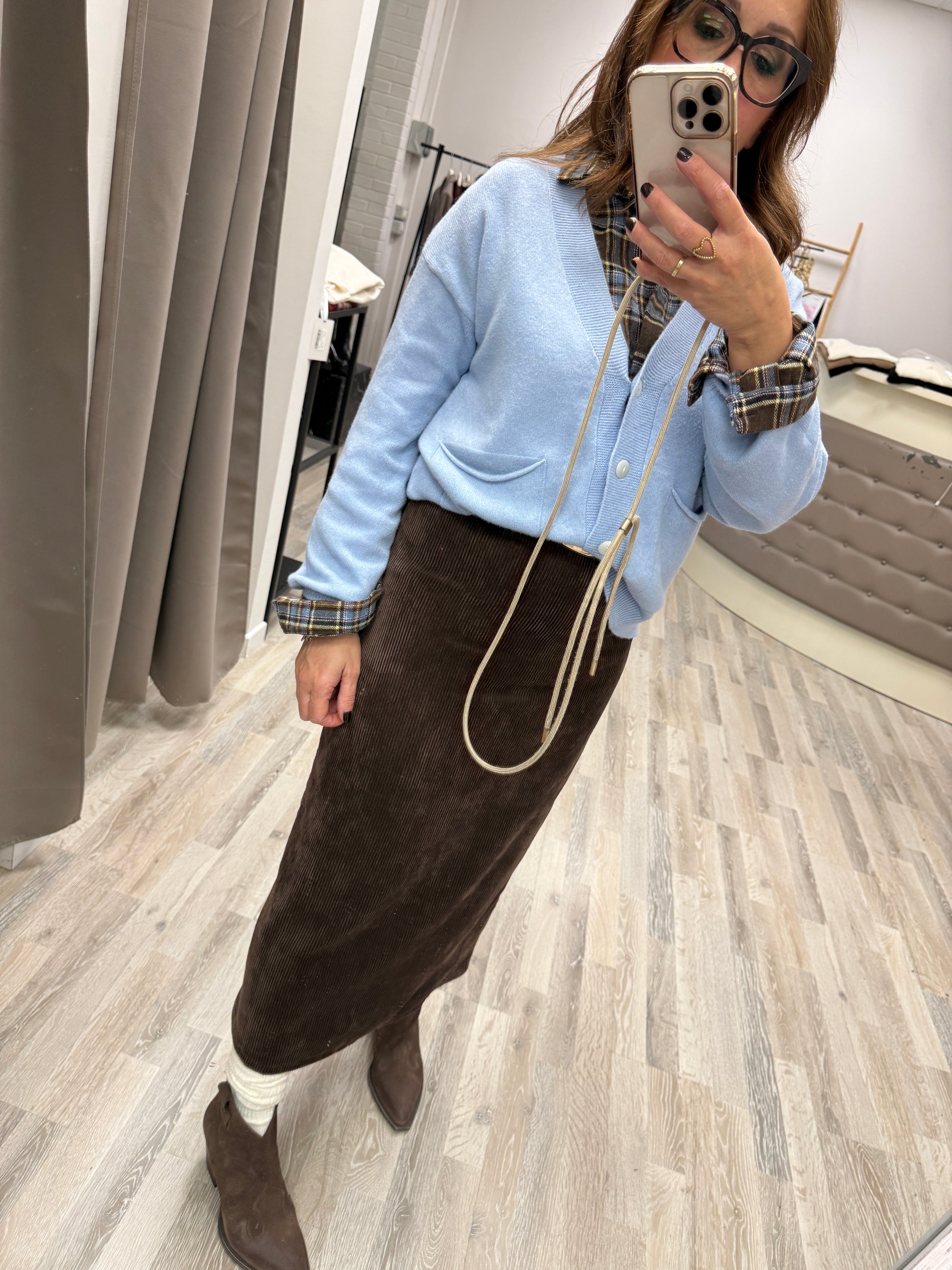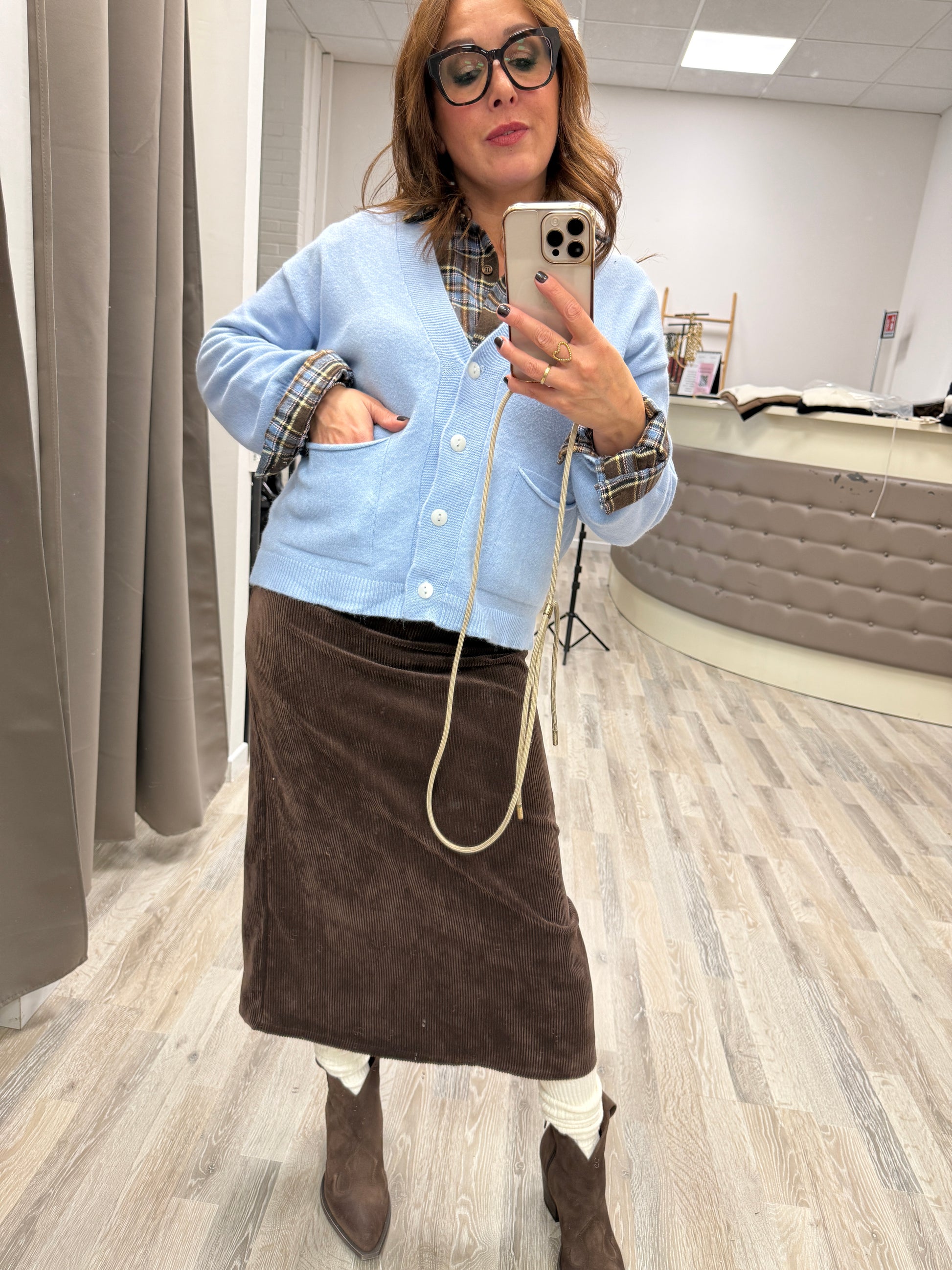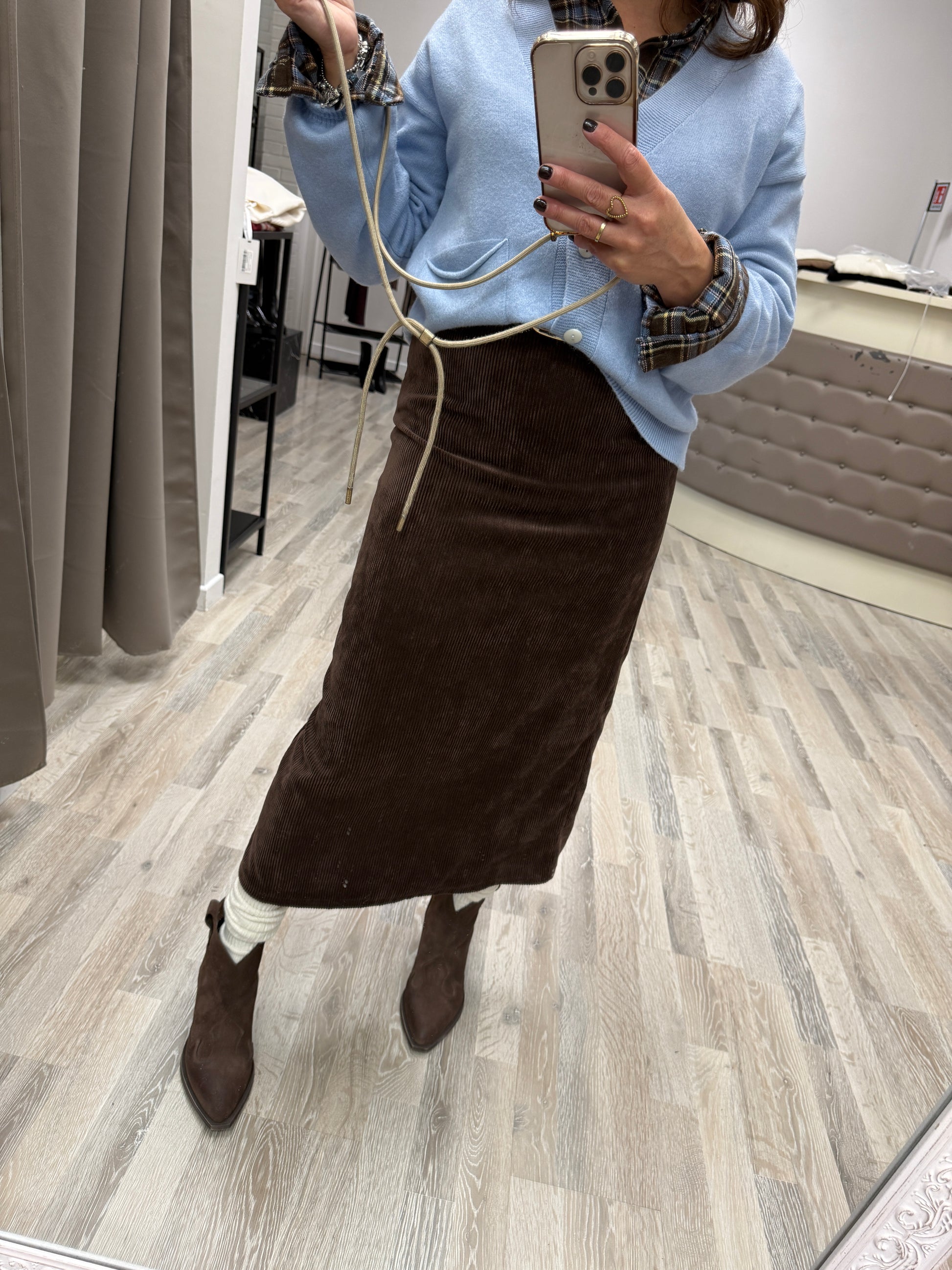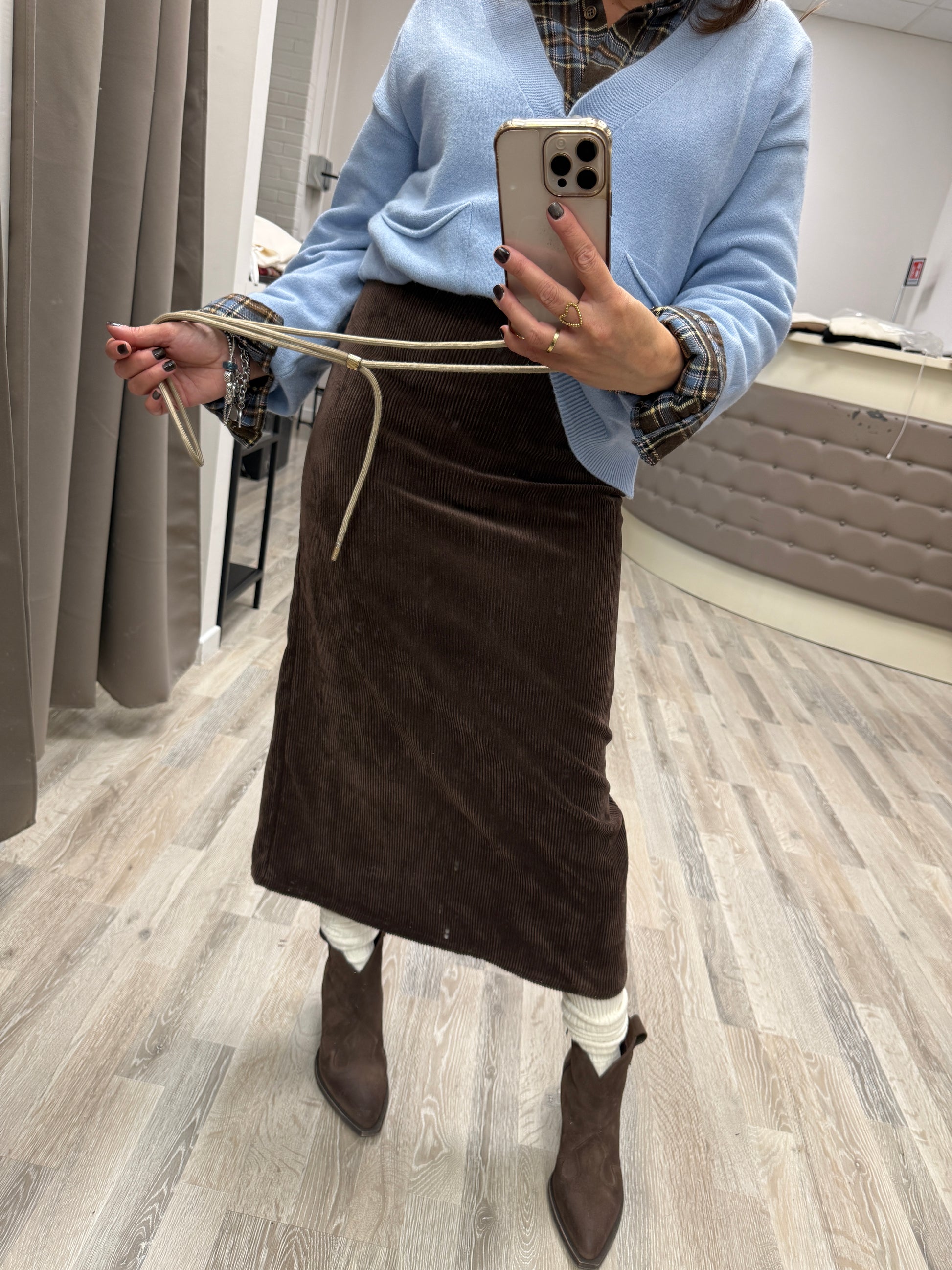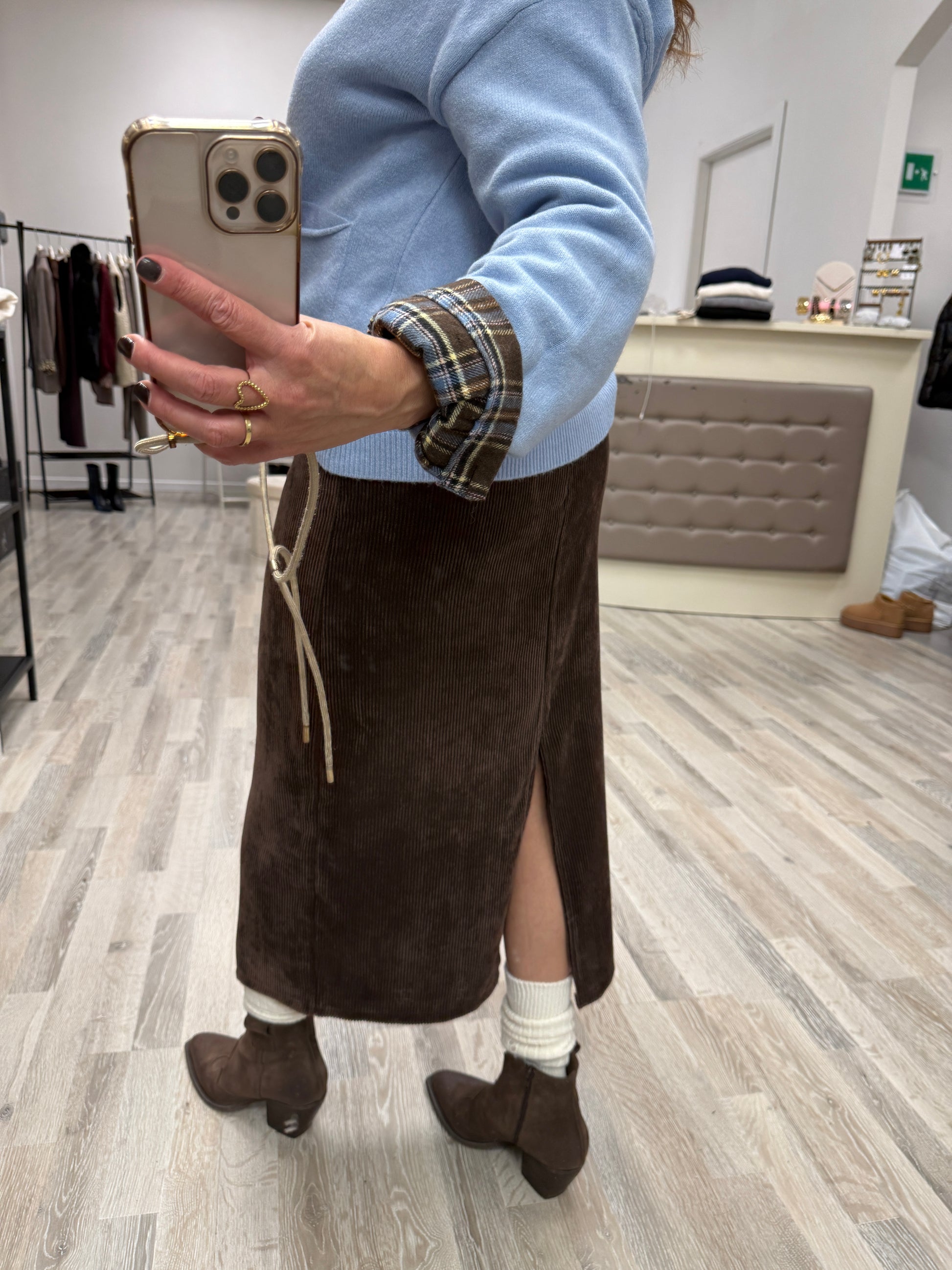 Lunghette, gonna lunghezza medi in velluto a costine con cintura abbinata, Haveone
