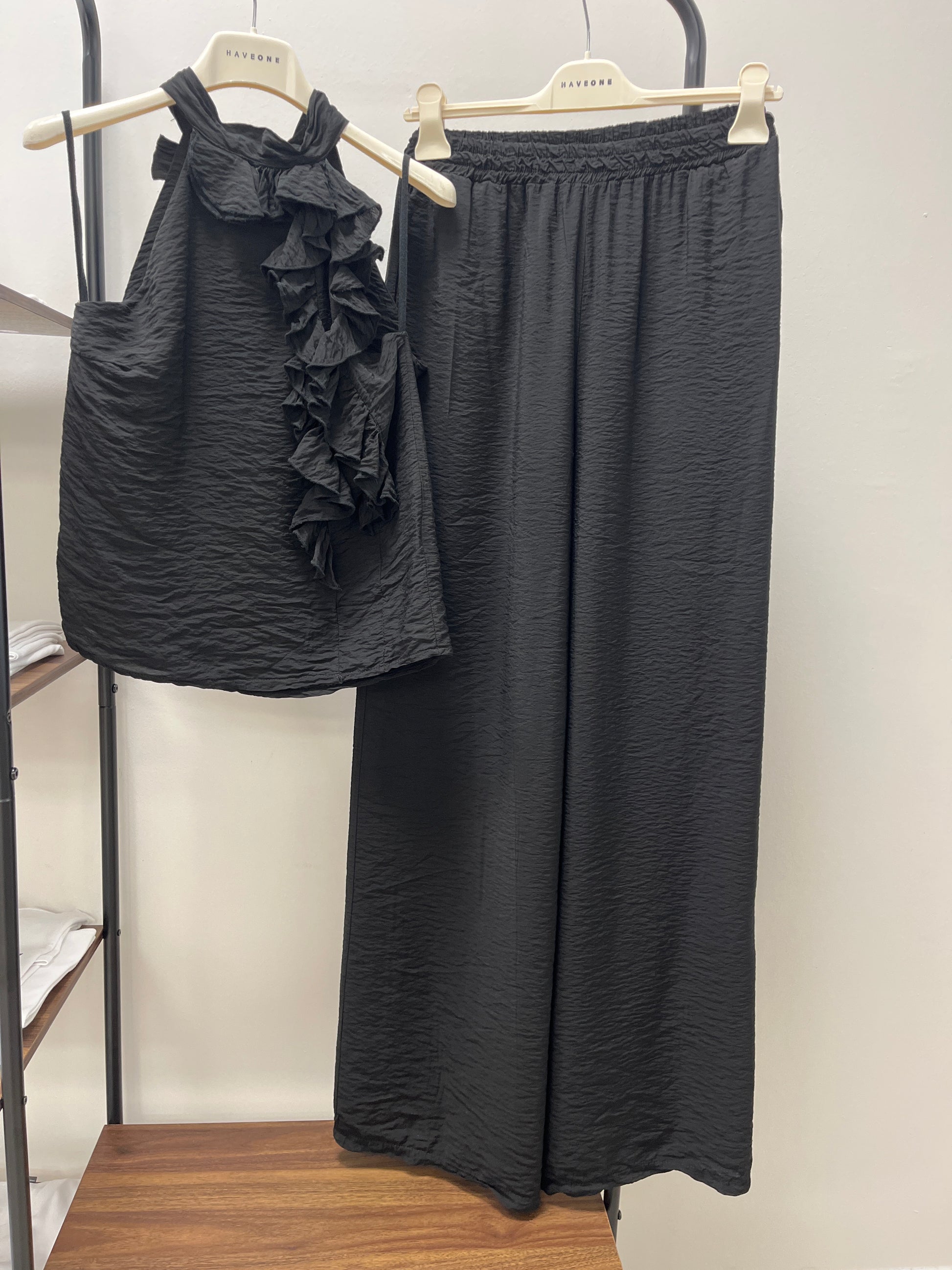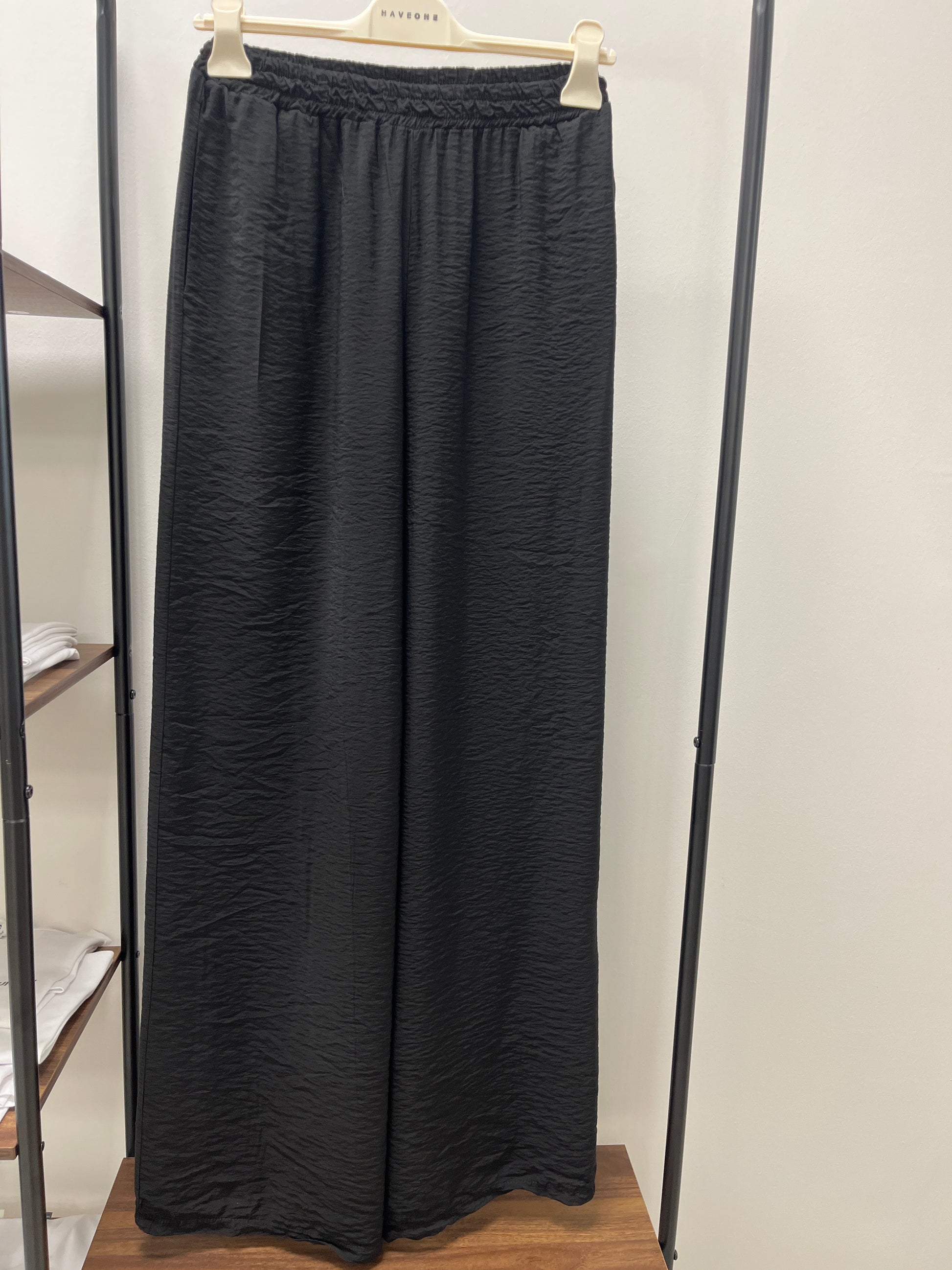 HaveOne Pantalone Palazzo in Viscosa Stropicciata Nero
