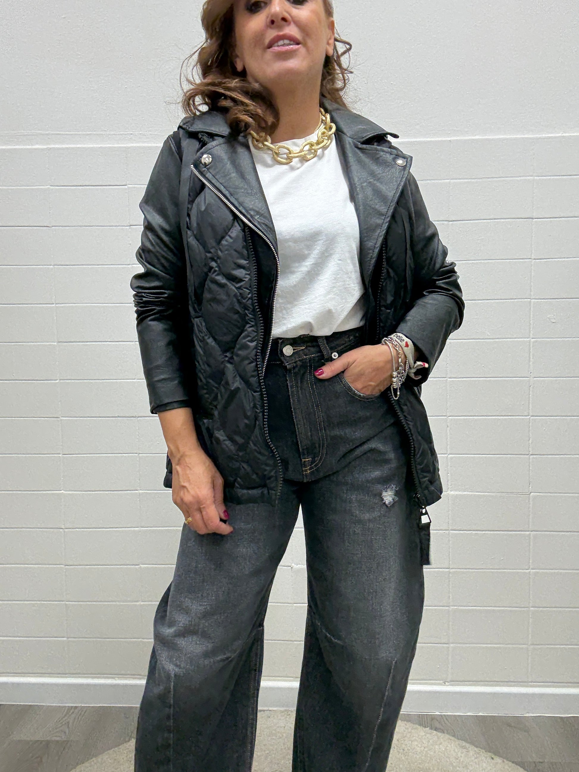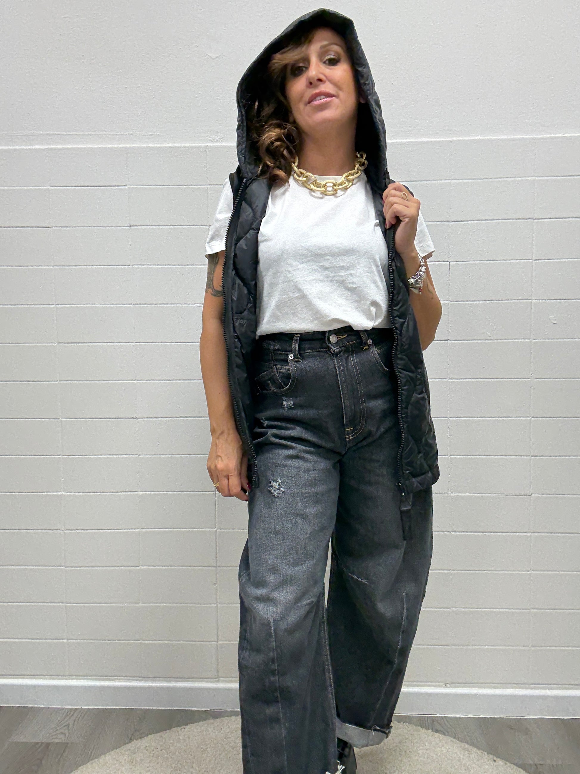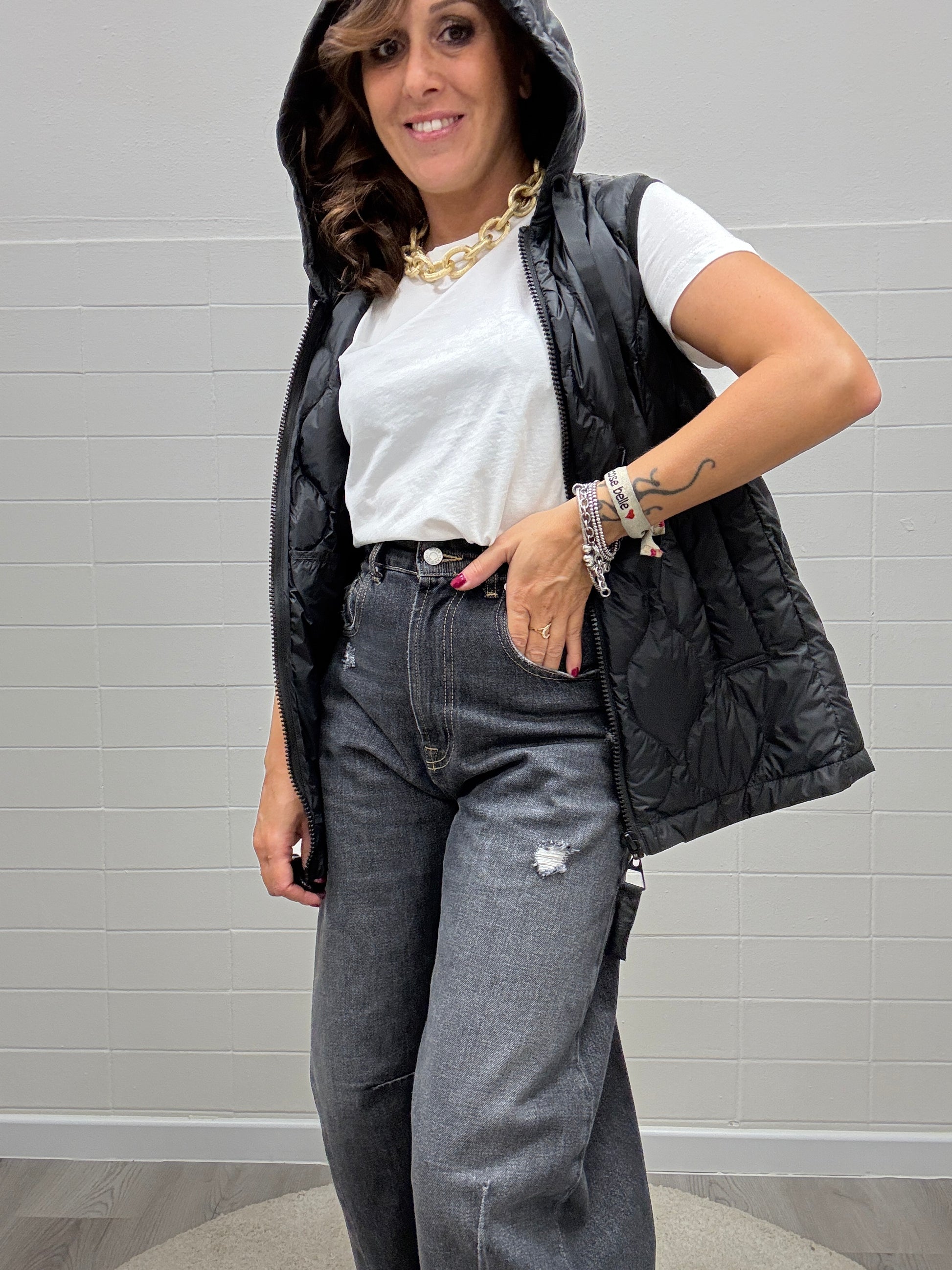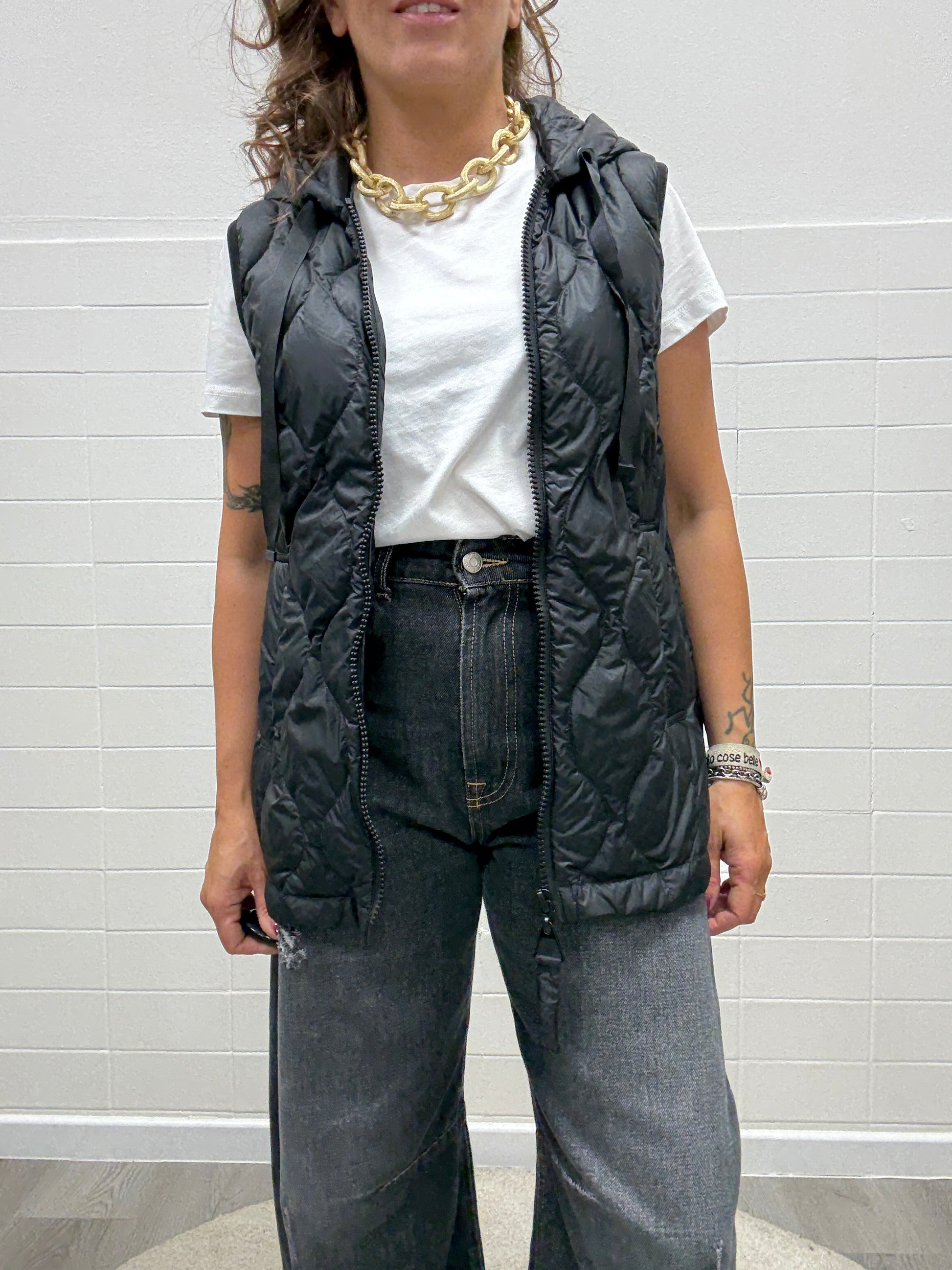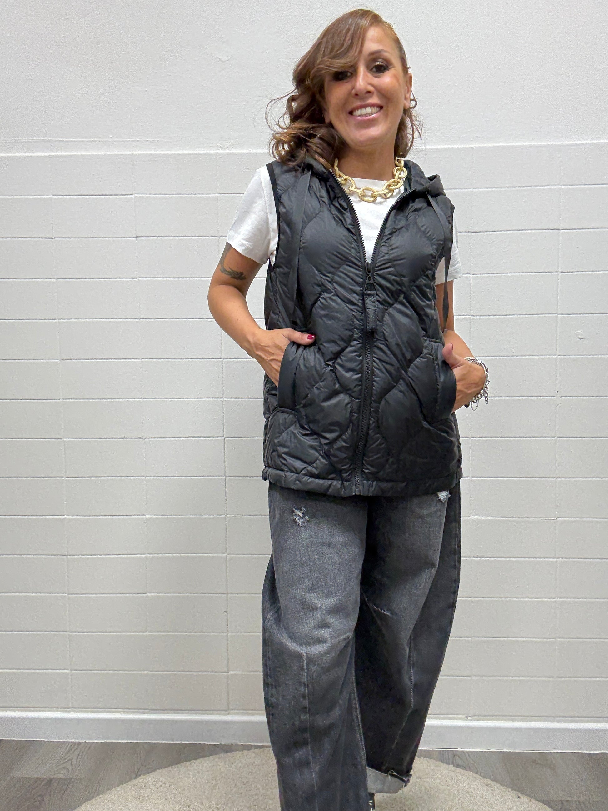 Piumino smanicato con cappuccio HaveOne trapuntato chiusura centrale con cerniera modello dritto