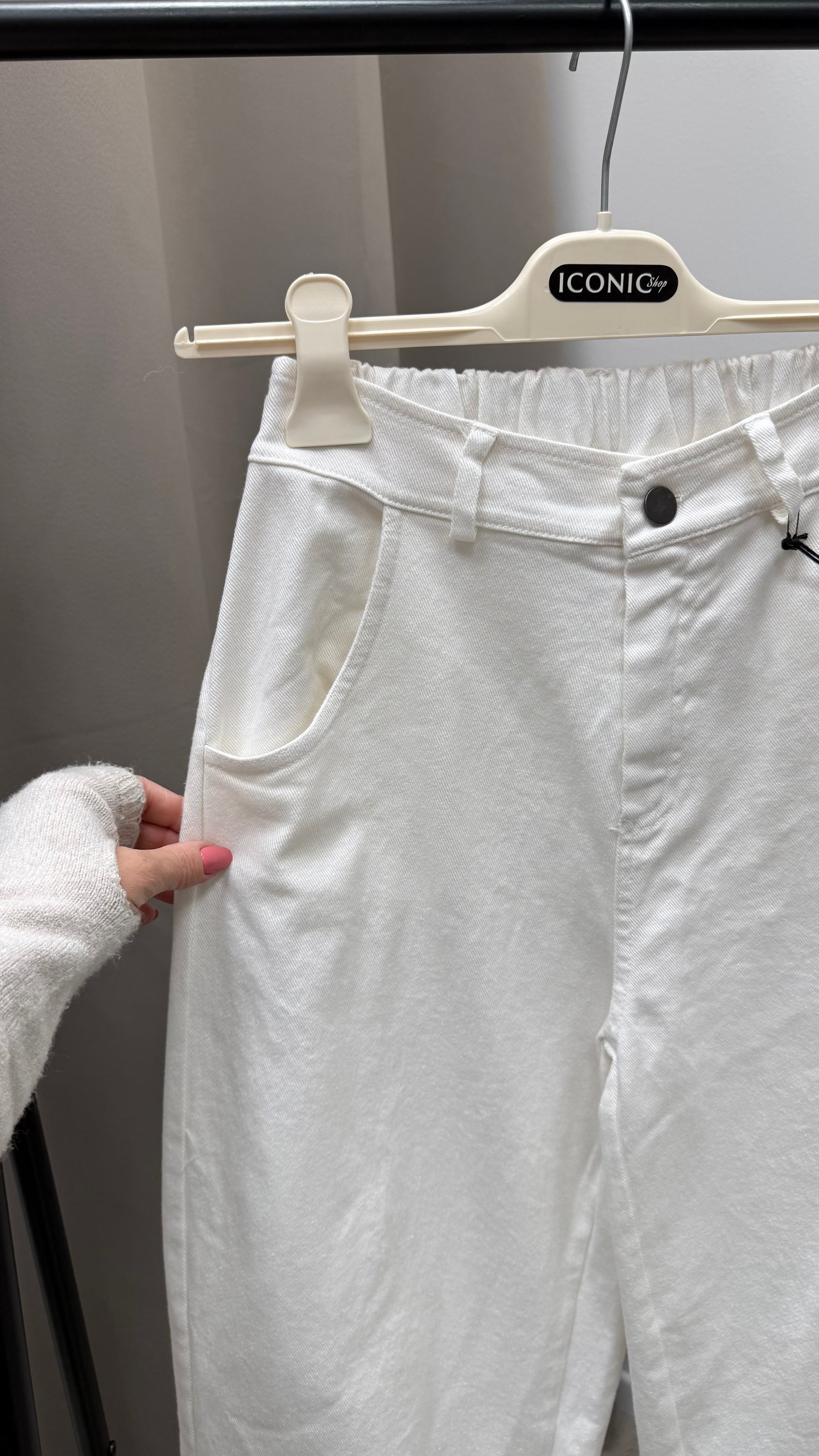 Jeans a vita alta modello ovetto, Con elastico in vita Per un fit super confortevole e cucitura sul ginocchio.