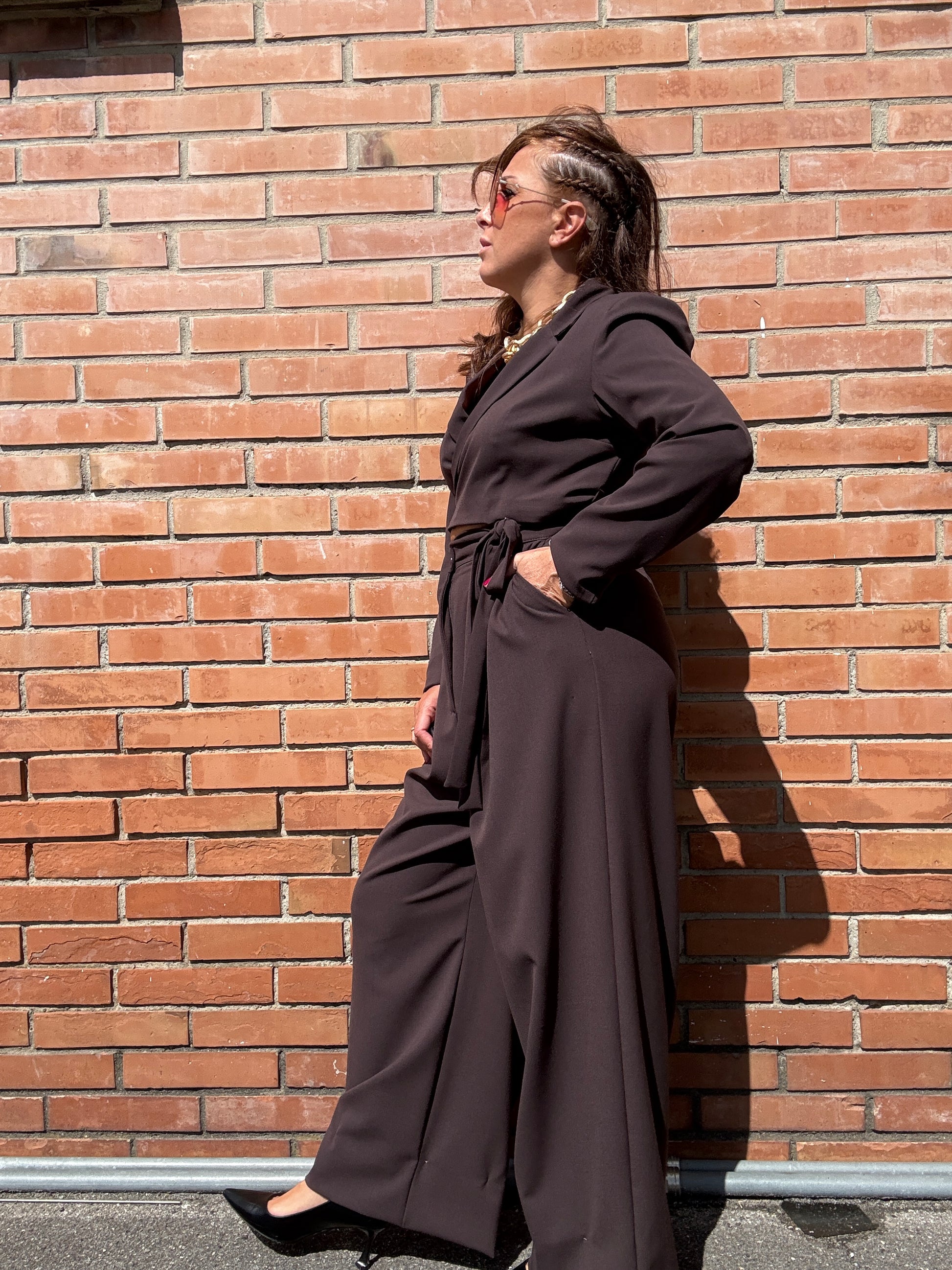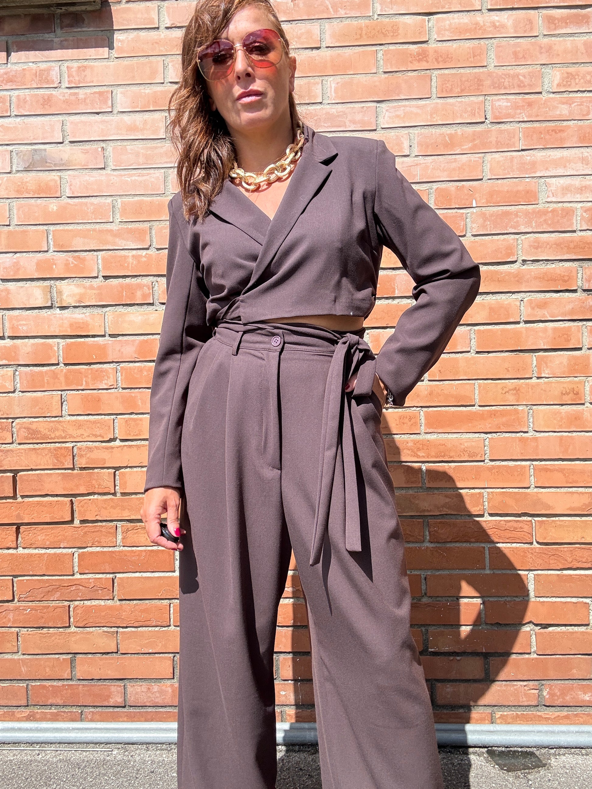 Kiki Six Pantalone Palazzo con Pinces Moro