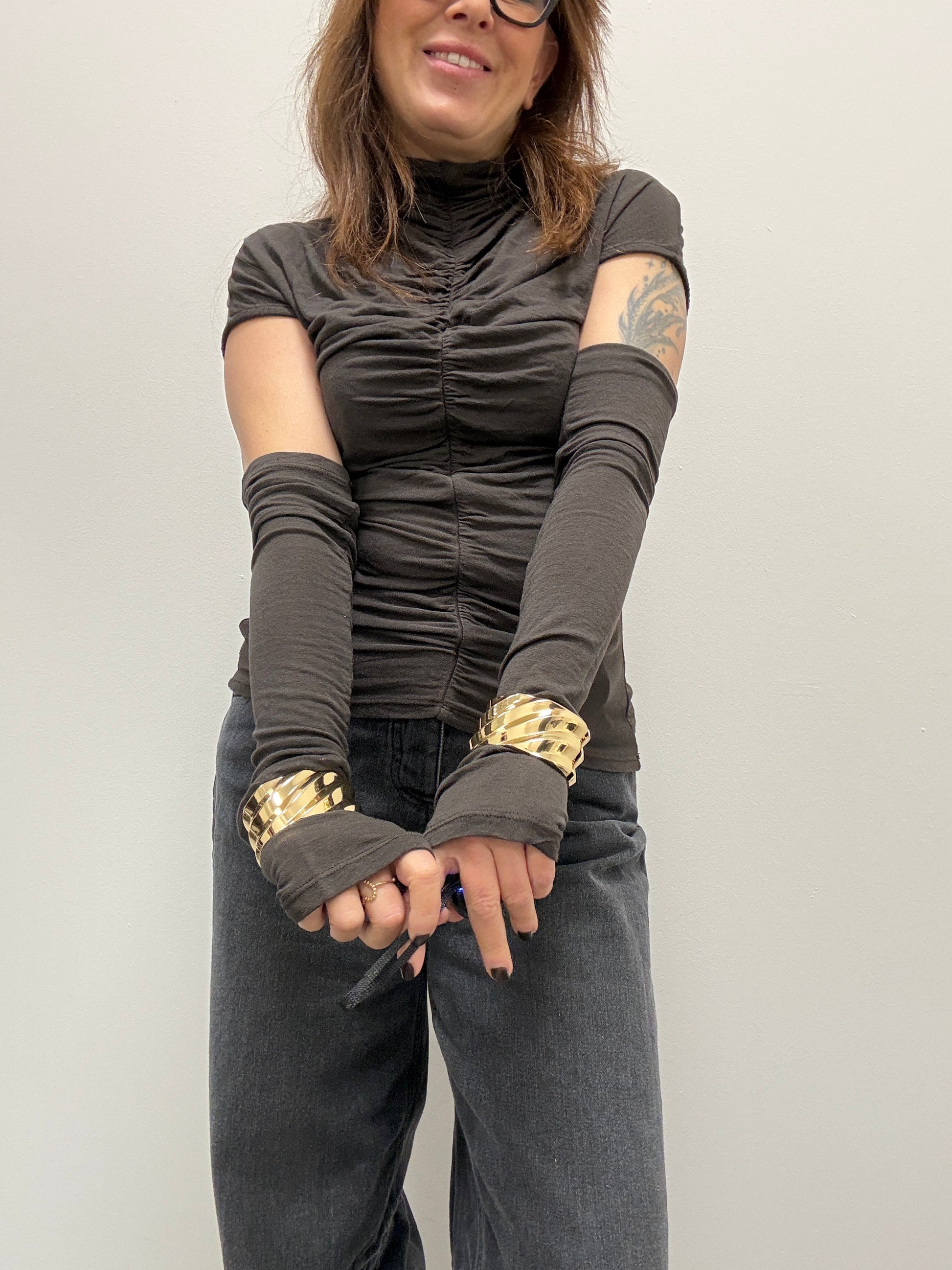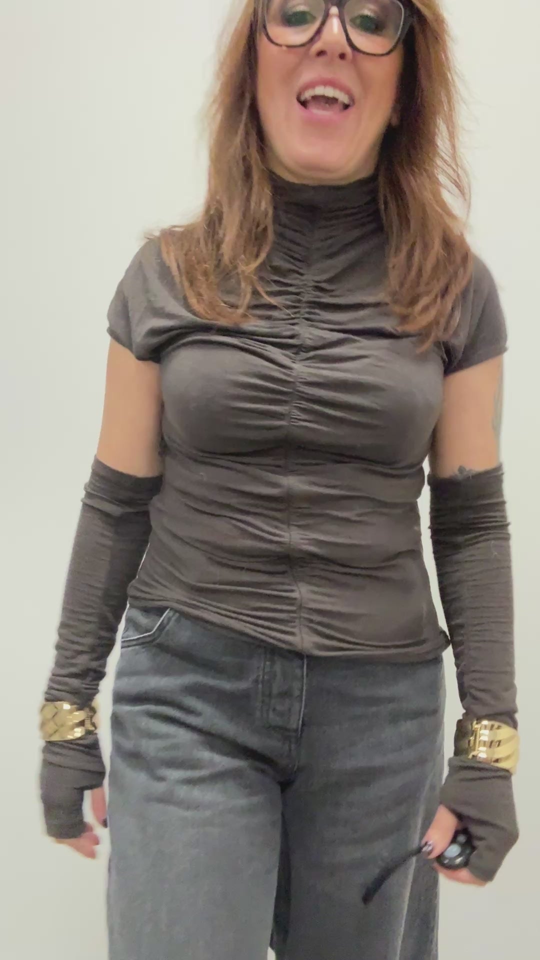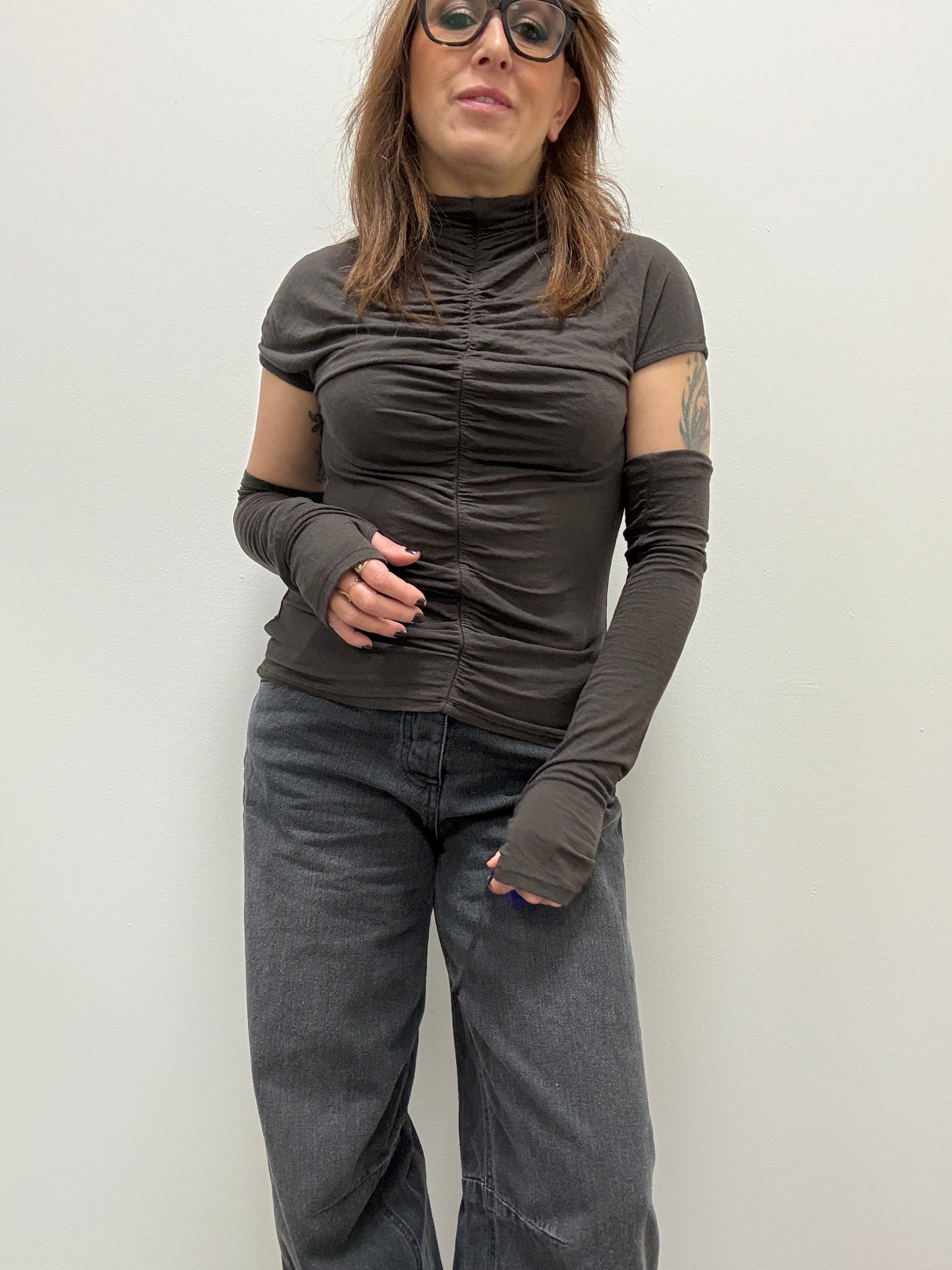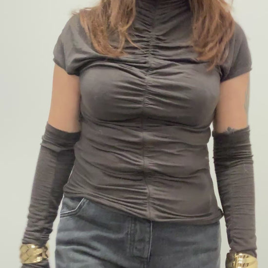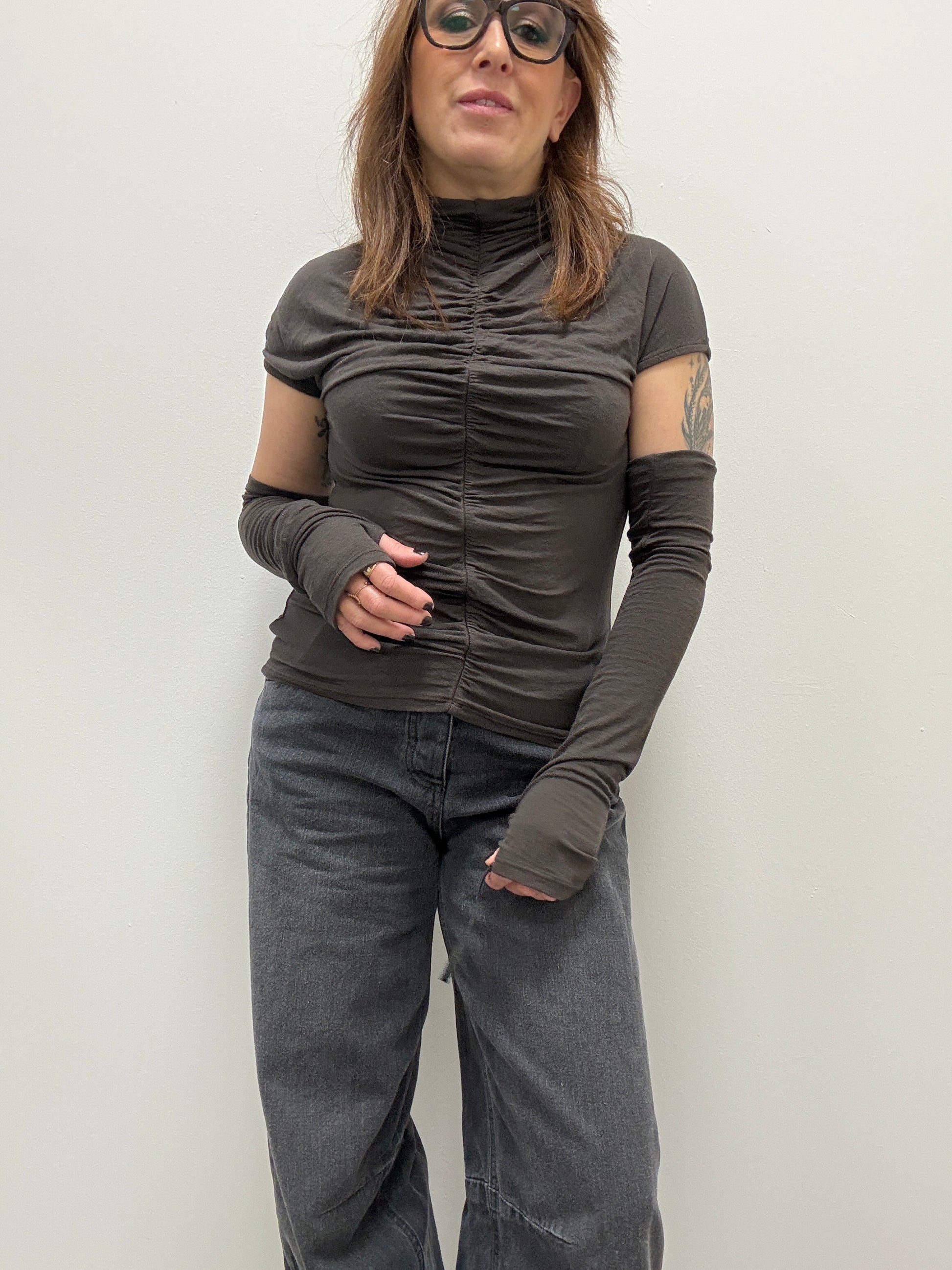 Maglia lupetto cashmire arricciato con manicotti moro Haveone