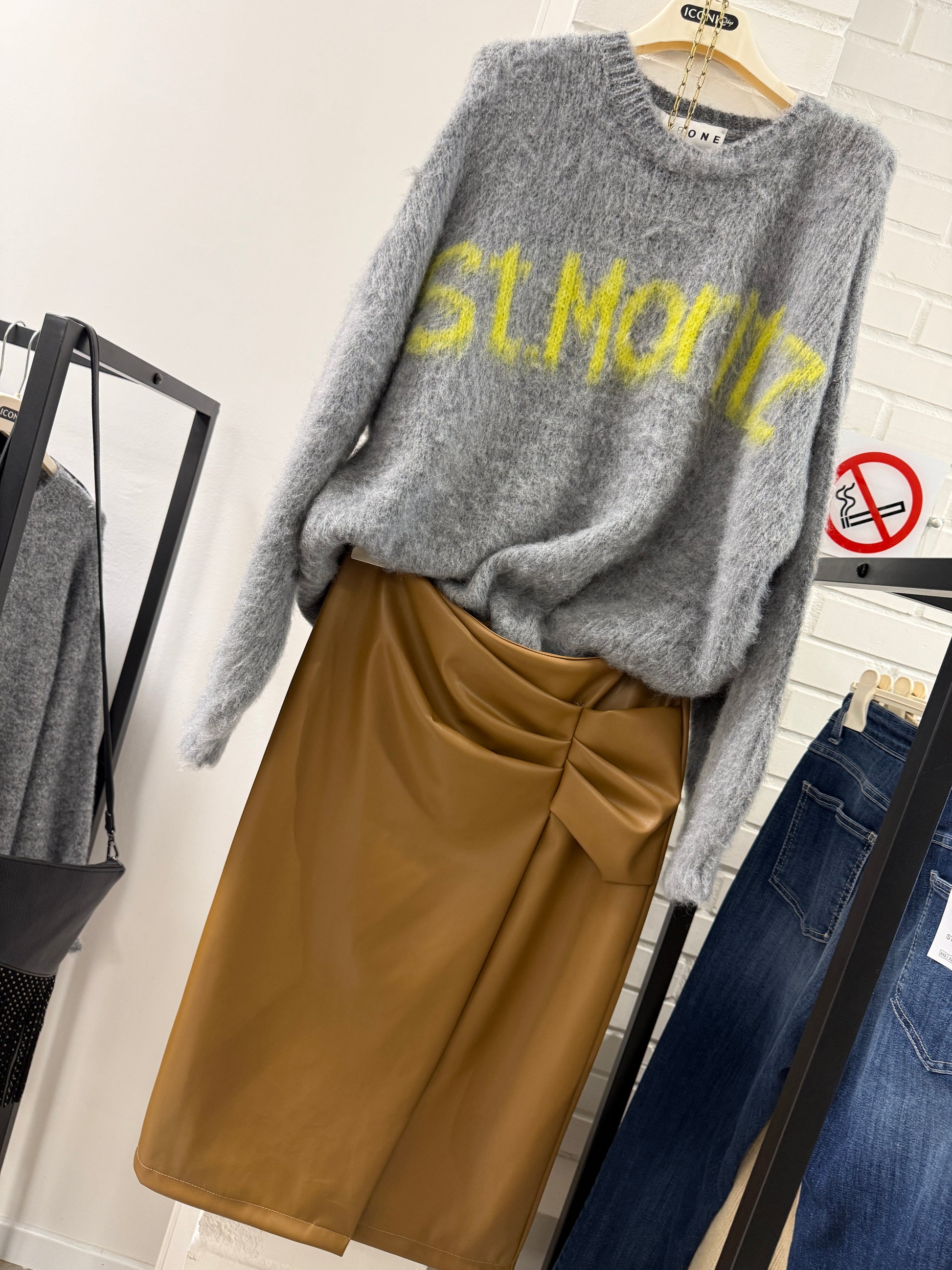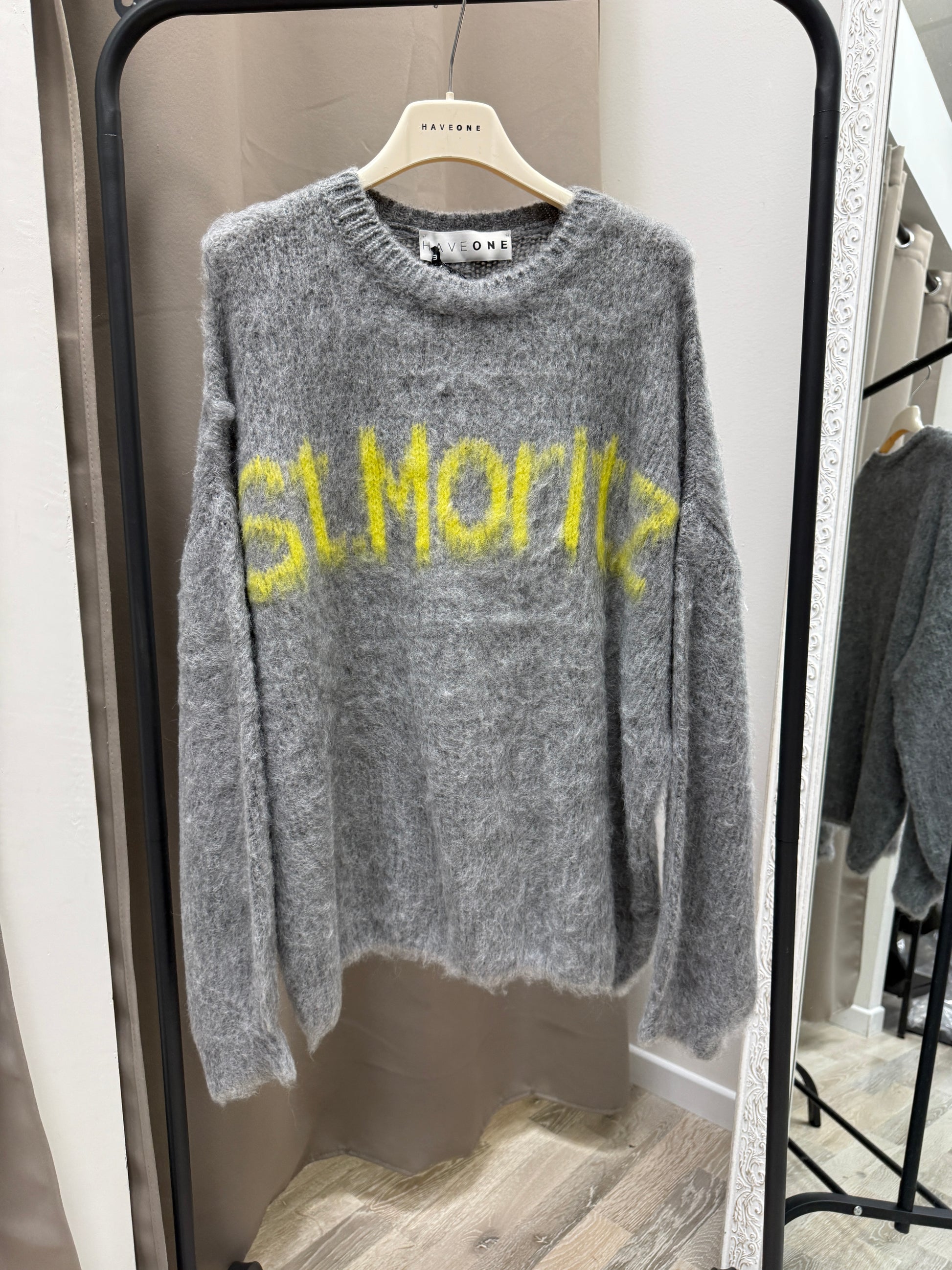 Maglia misto lana con scritta Saint Moritz a contrasto.