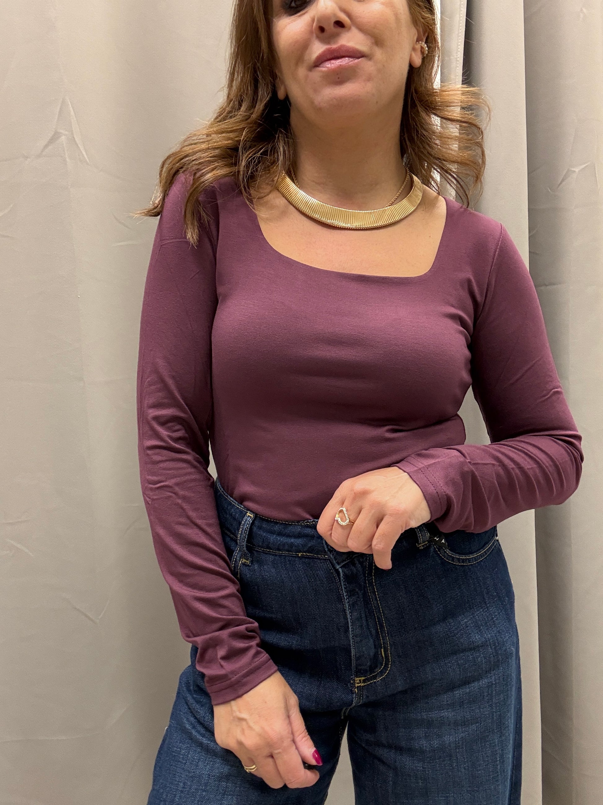 Maglia scollo quadro vino Susy Mix