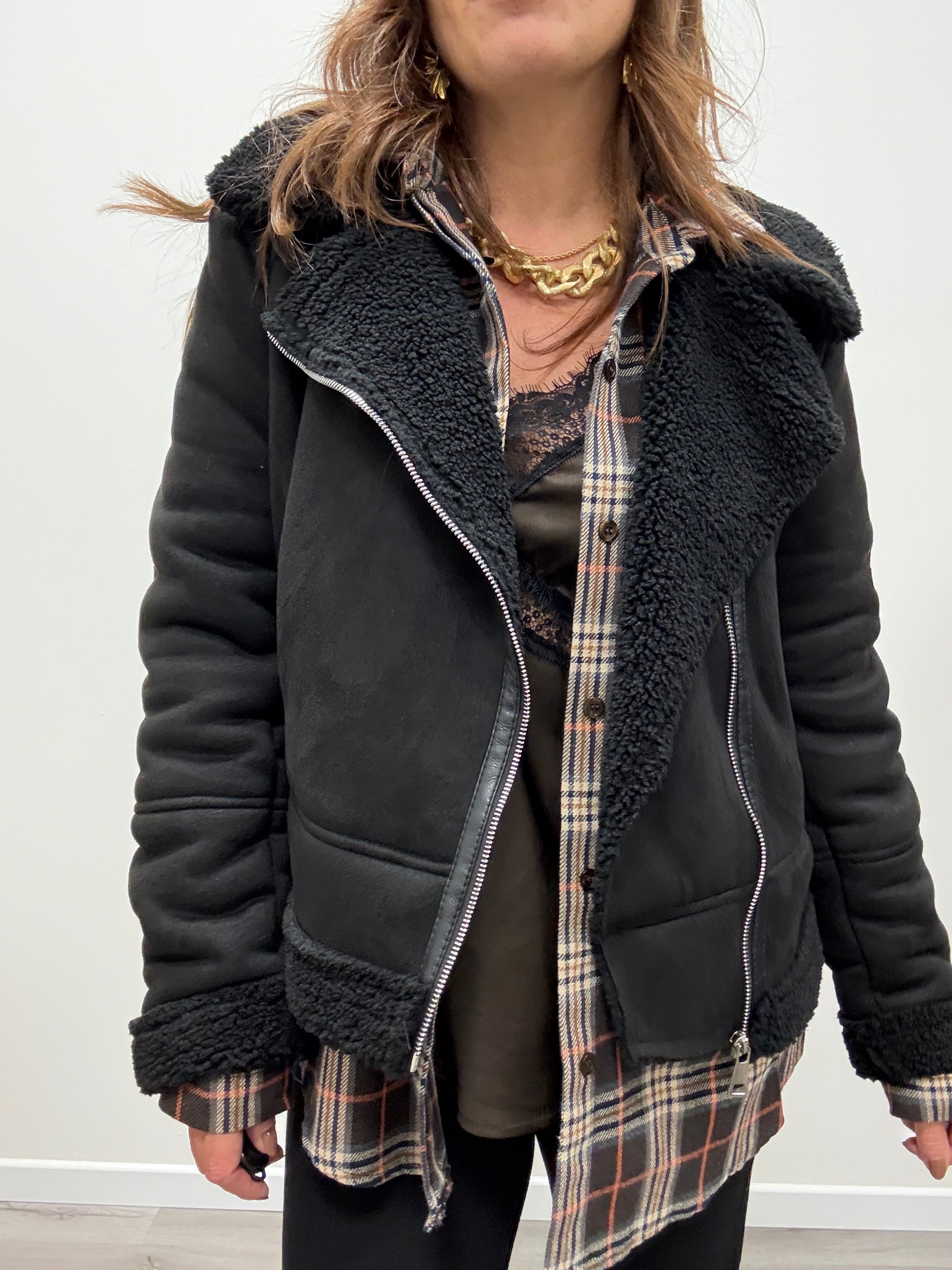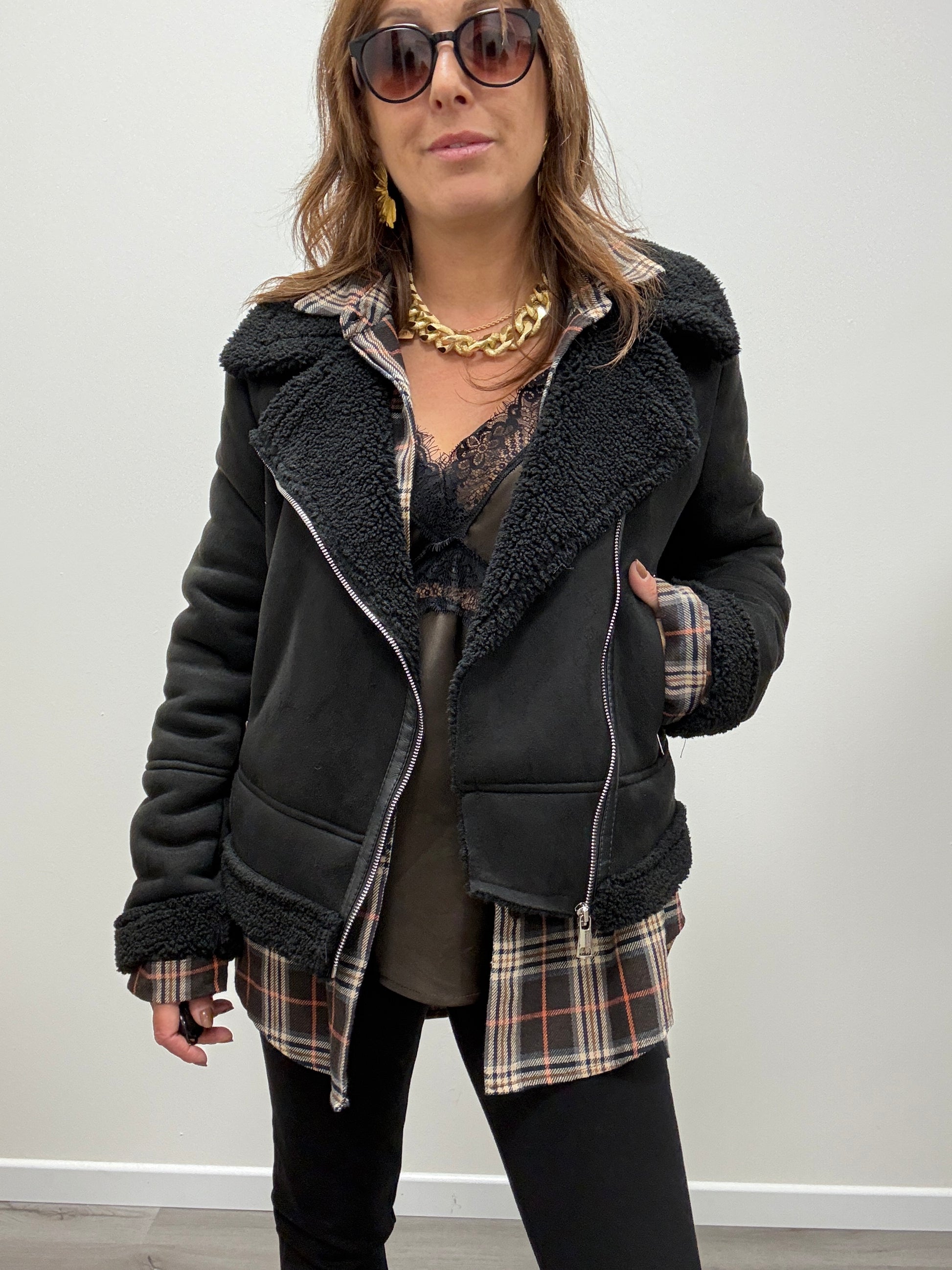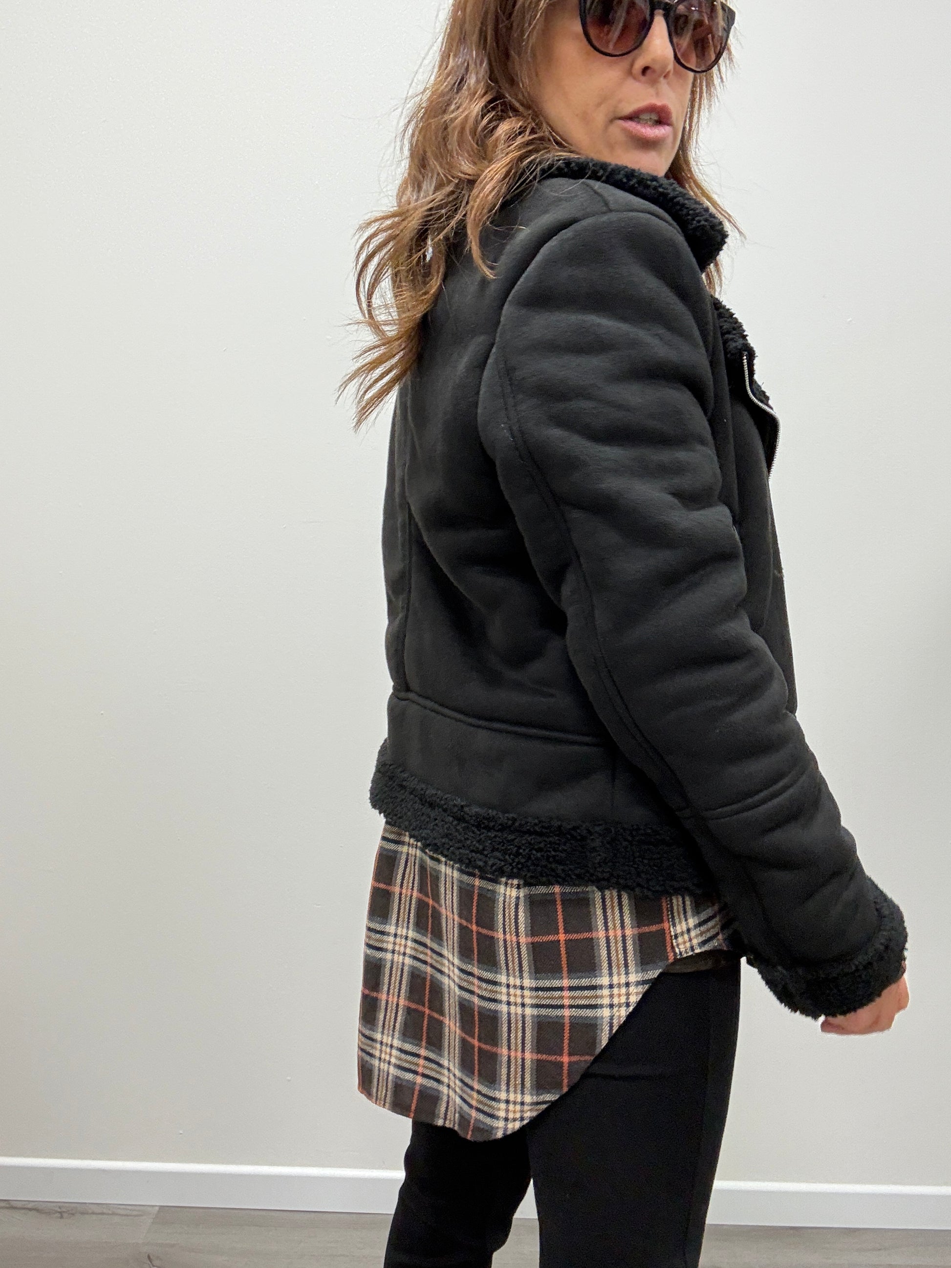 Montone modello over In eco camoscio con rifiniture in eco pelle.