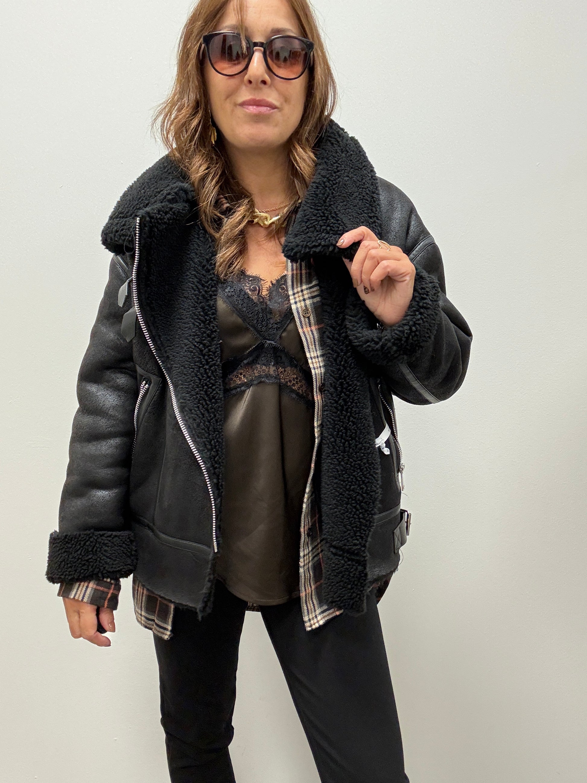 Il montone è foderato internamente Teddy Tohn su tono e ha tutte le cerniere in metallo