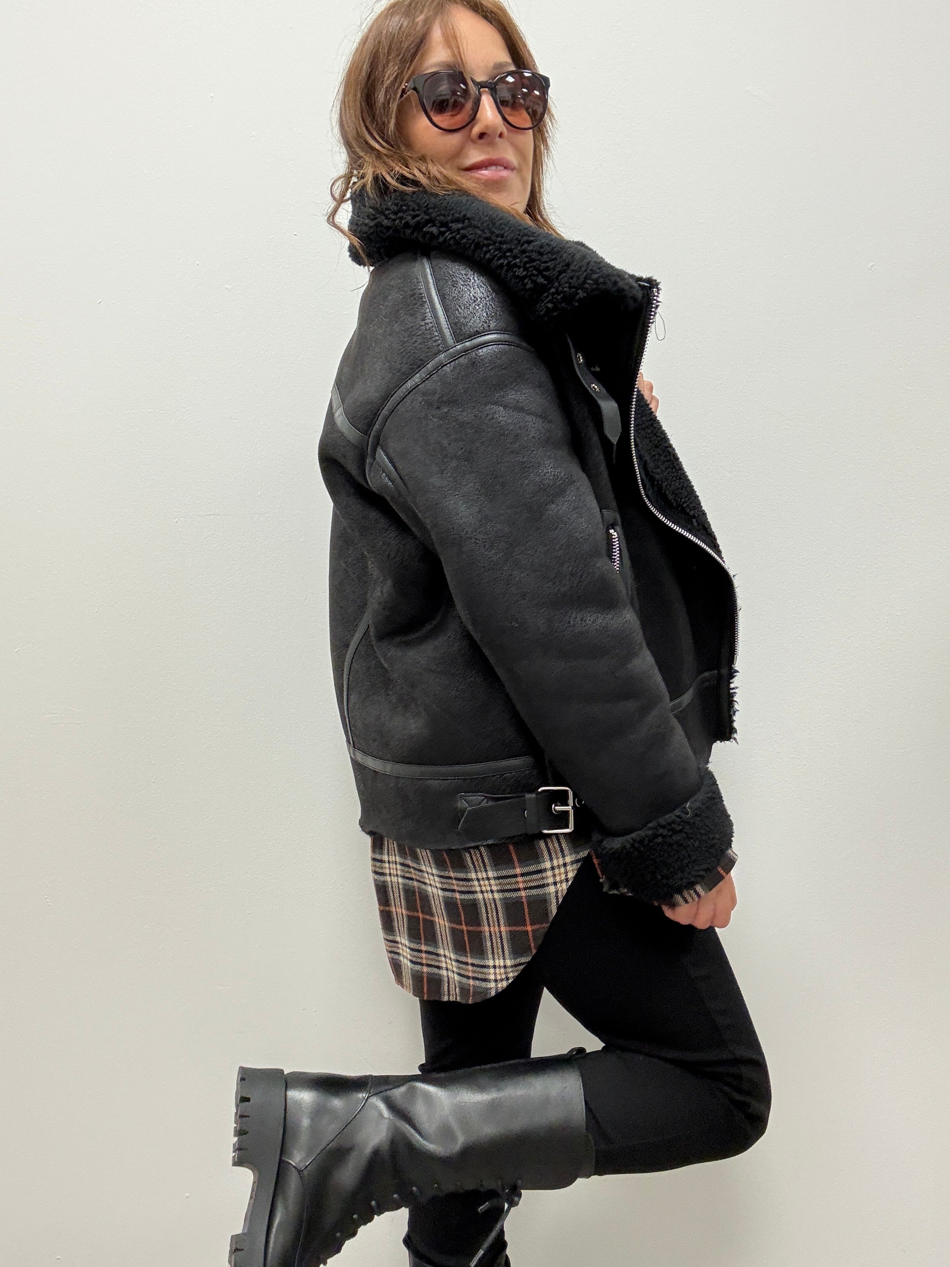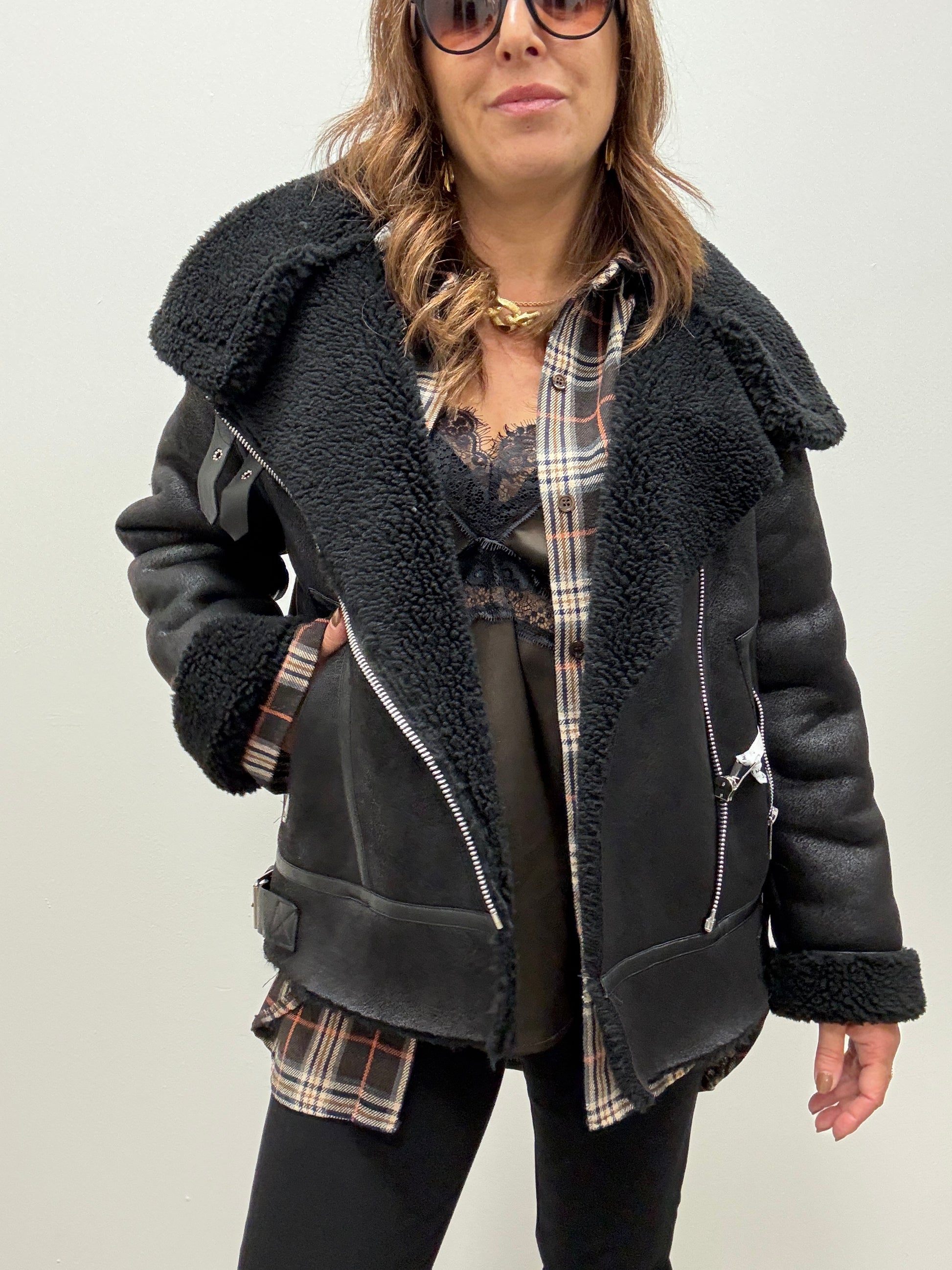 Montone modello over In eco camoscio con rifiniture in eco pelle.