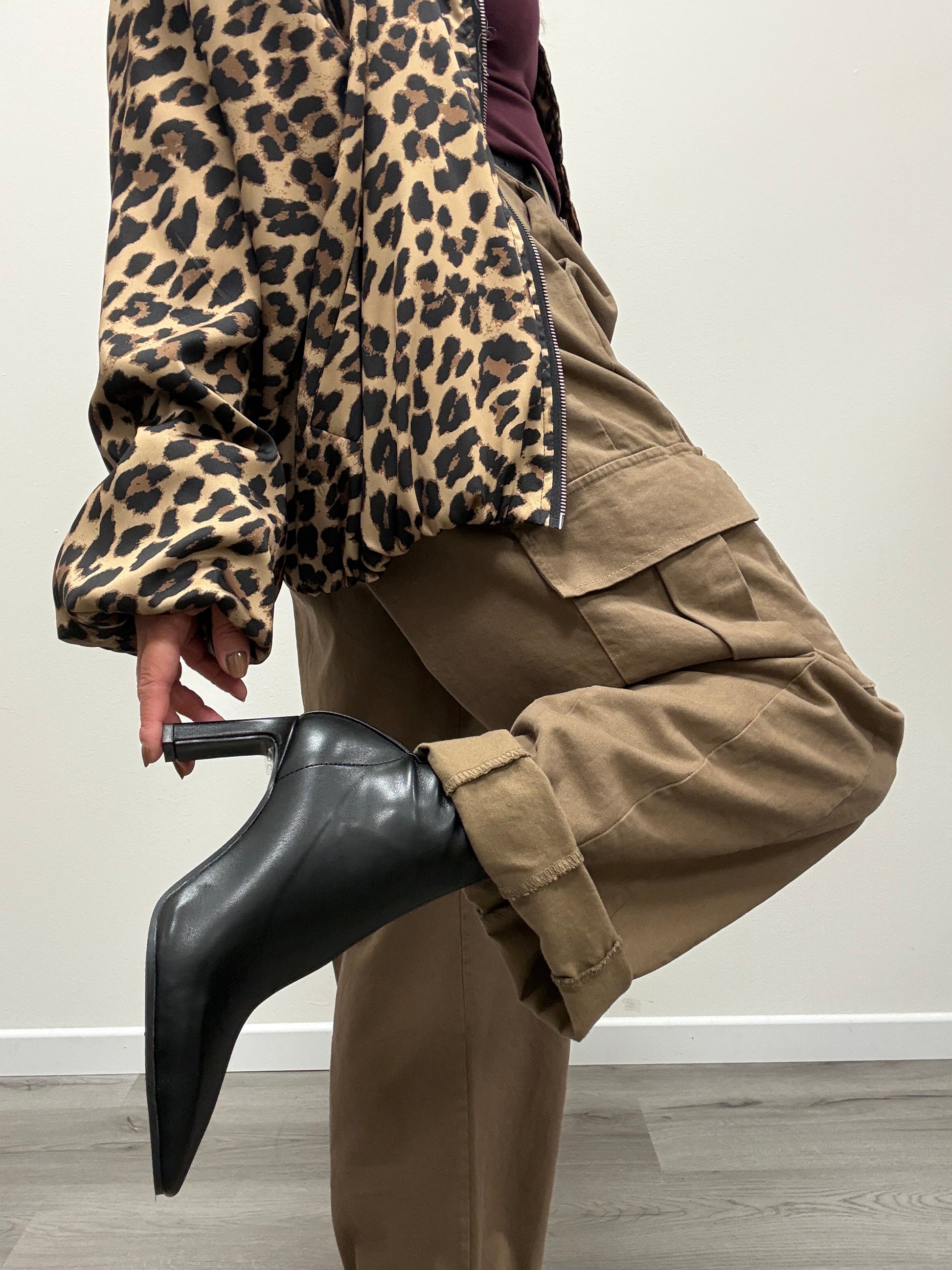 Pantaloni caldo, cotone, modello uovo con tasconi laterali e cintura abbinata.