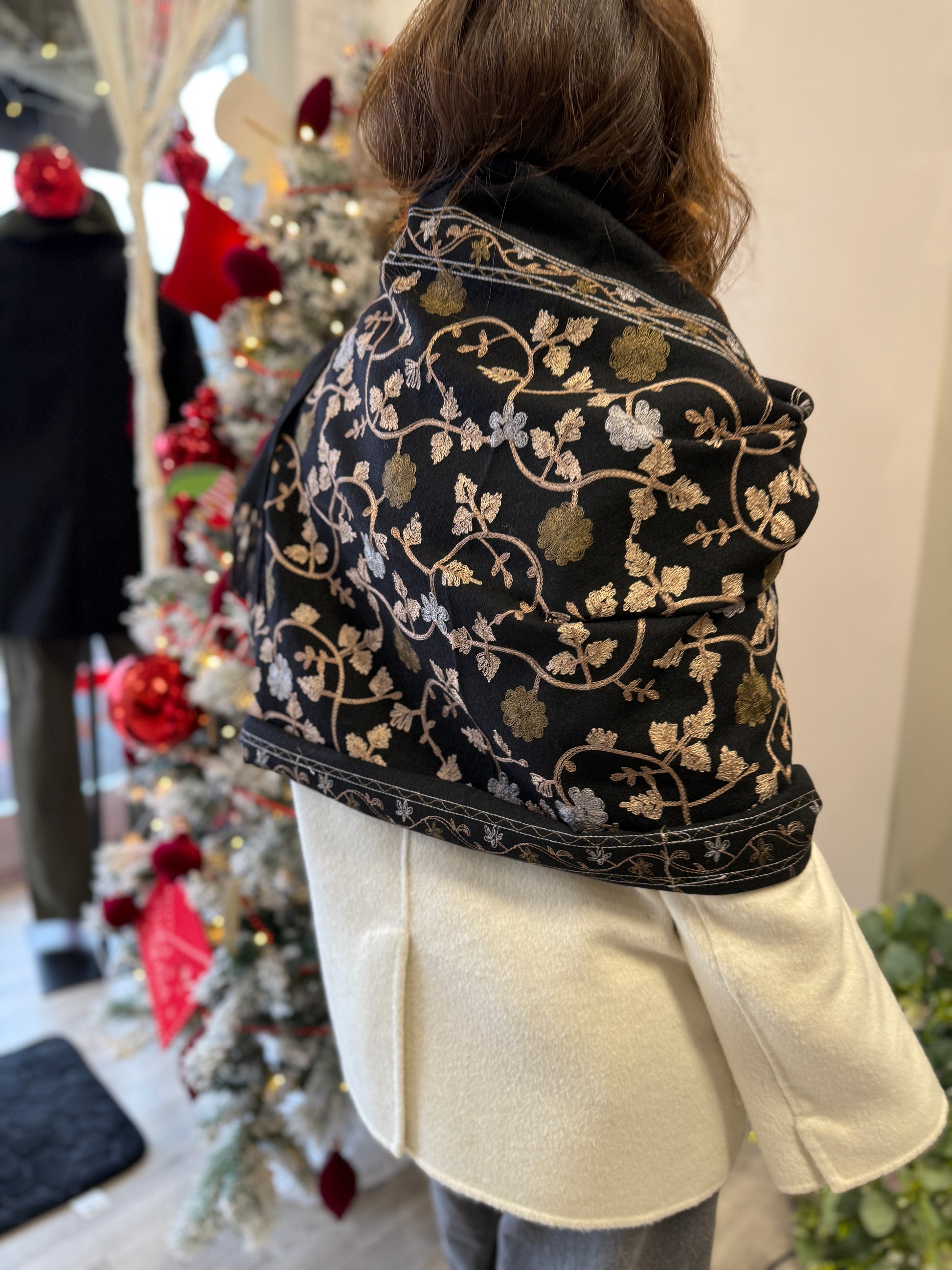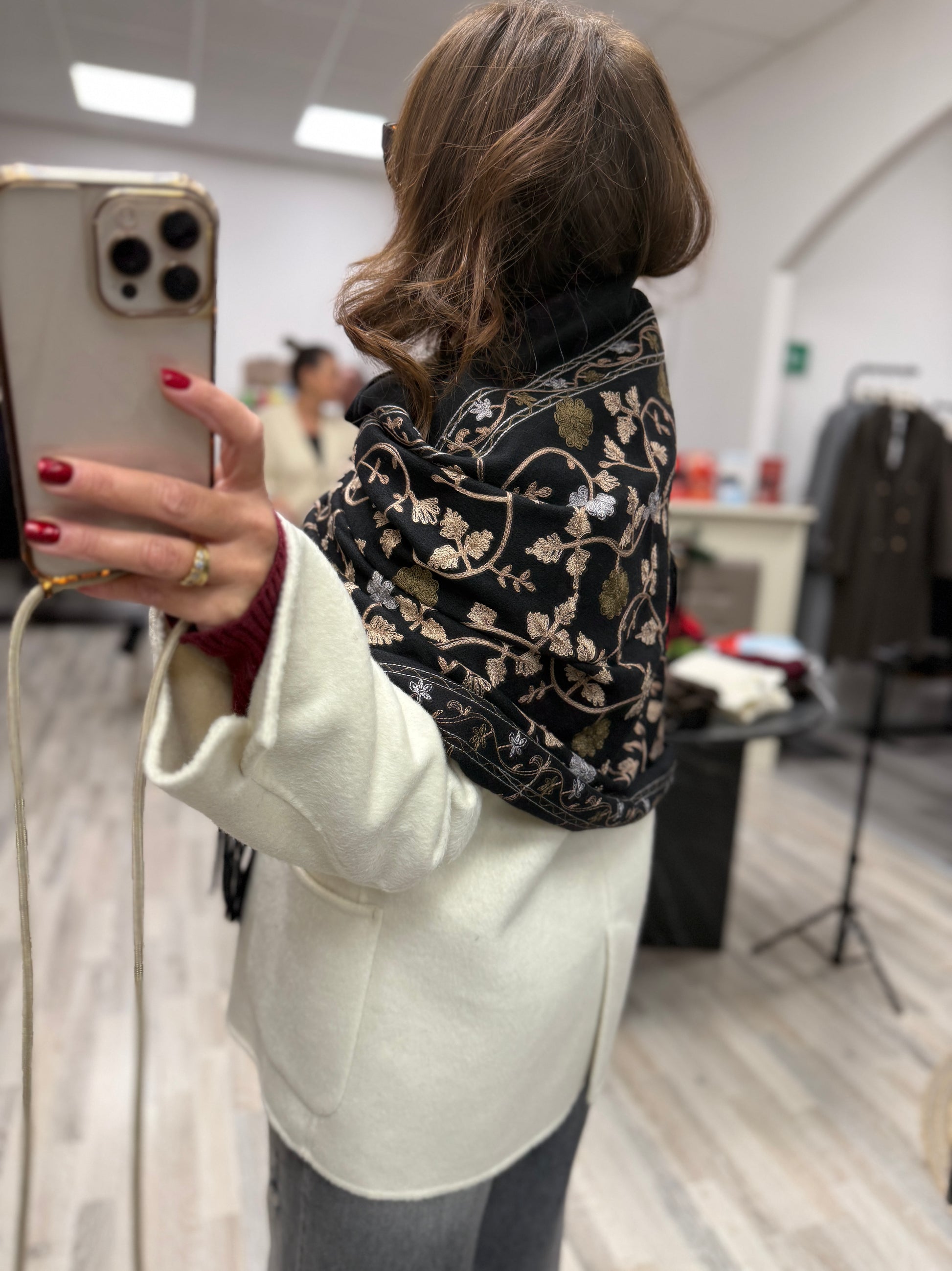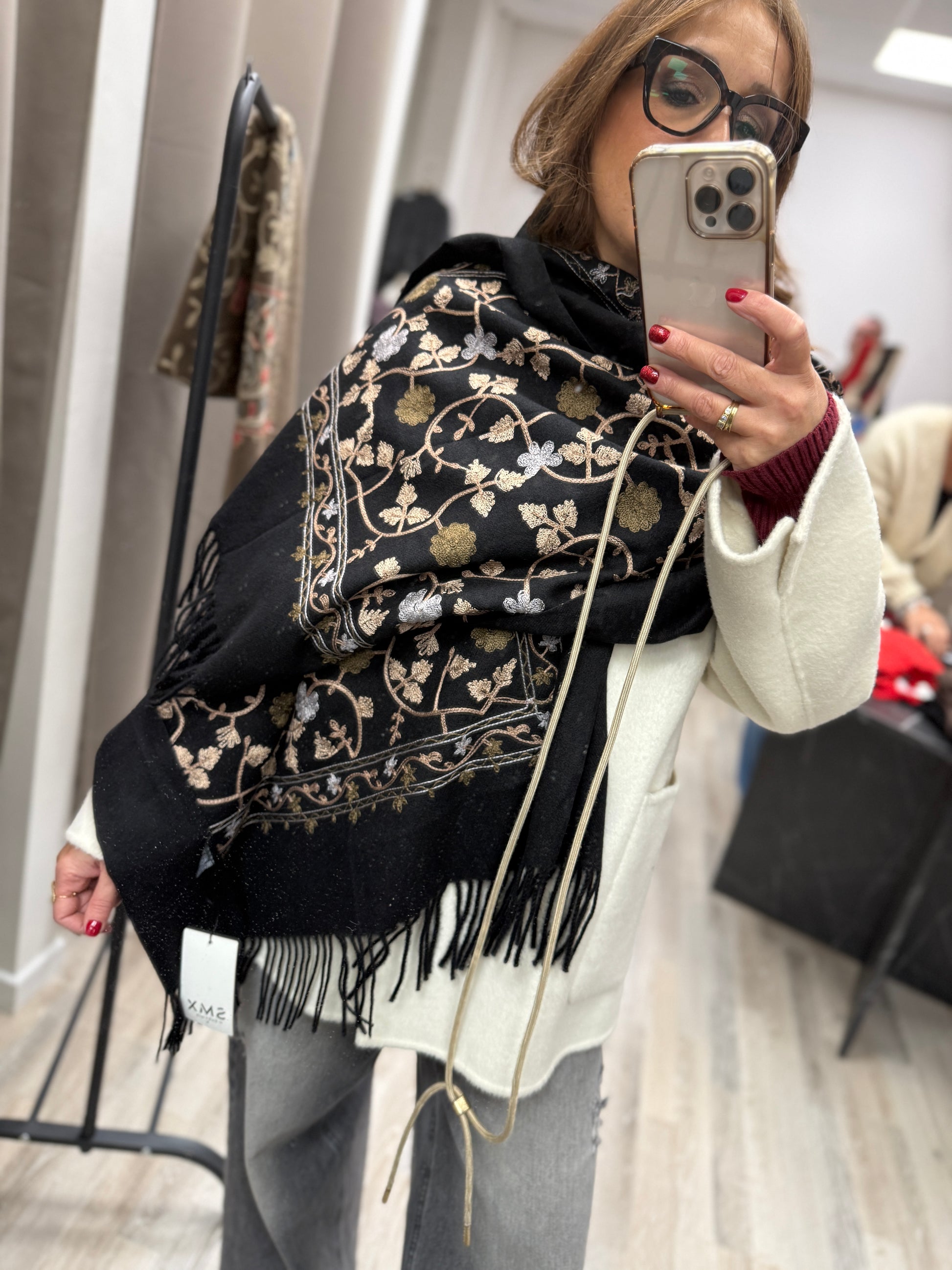 Sciarpa in morbidissima viscosa con frange e Ricami.