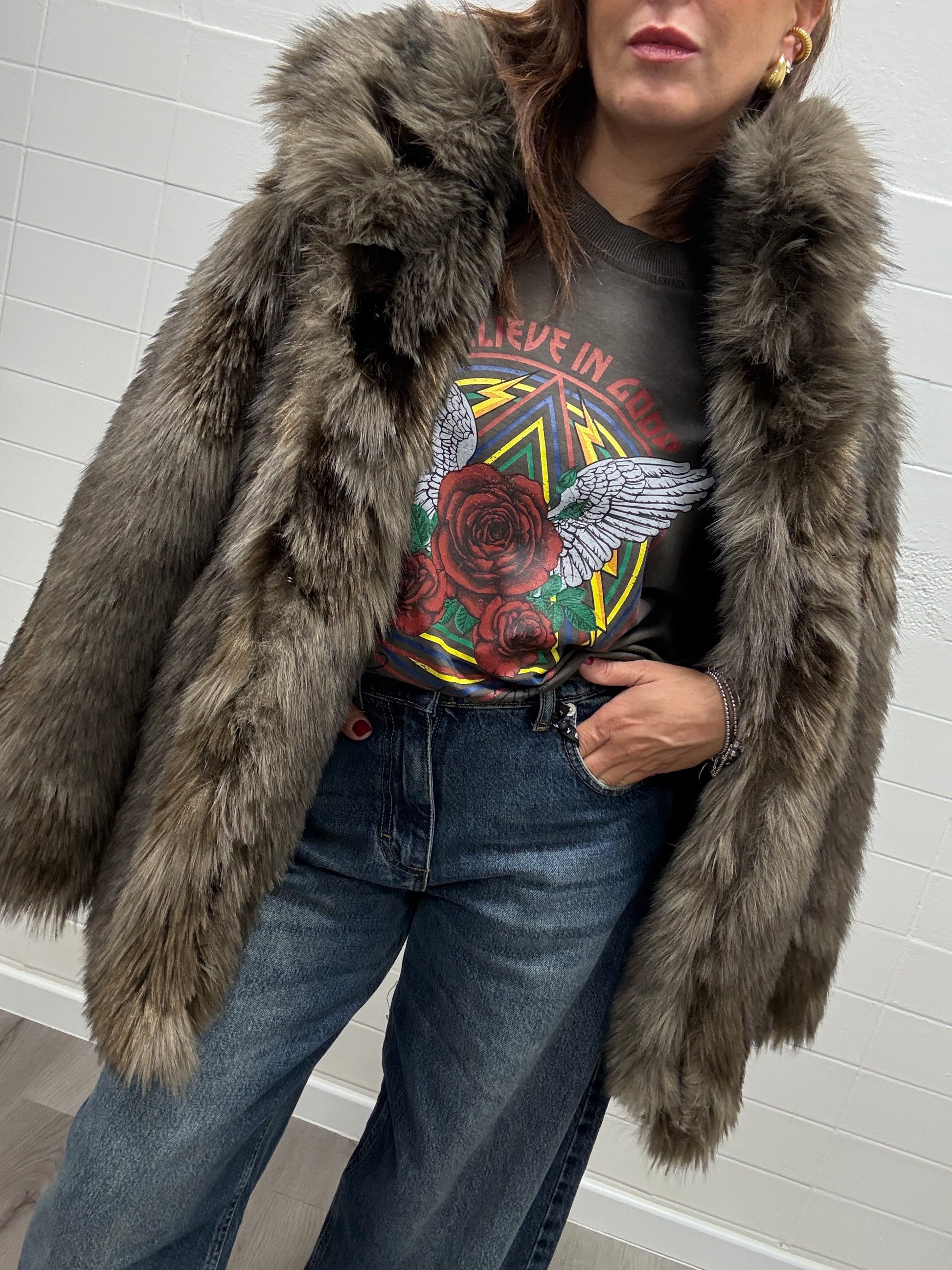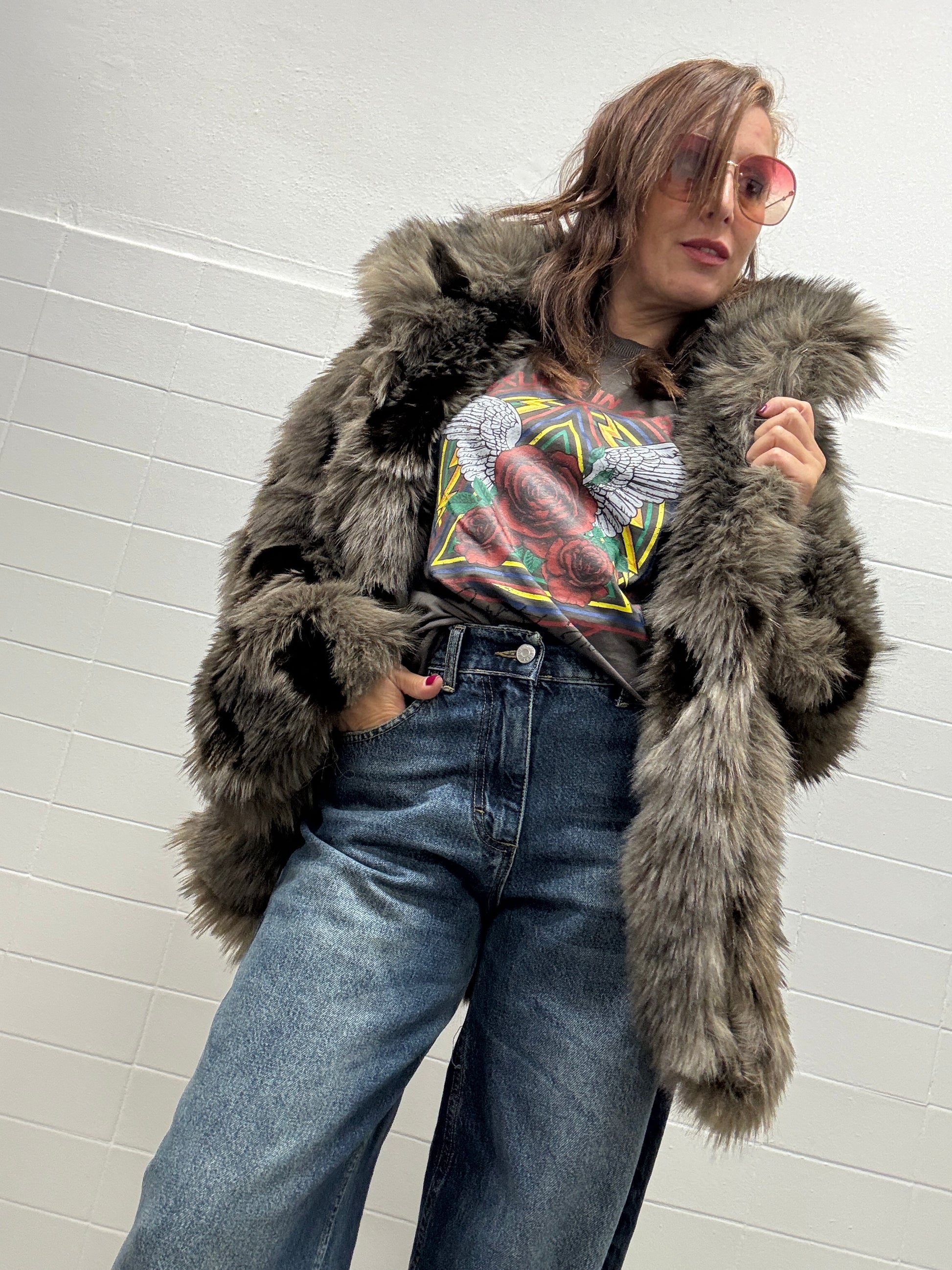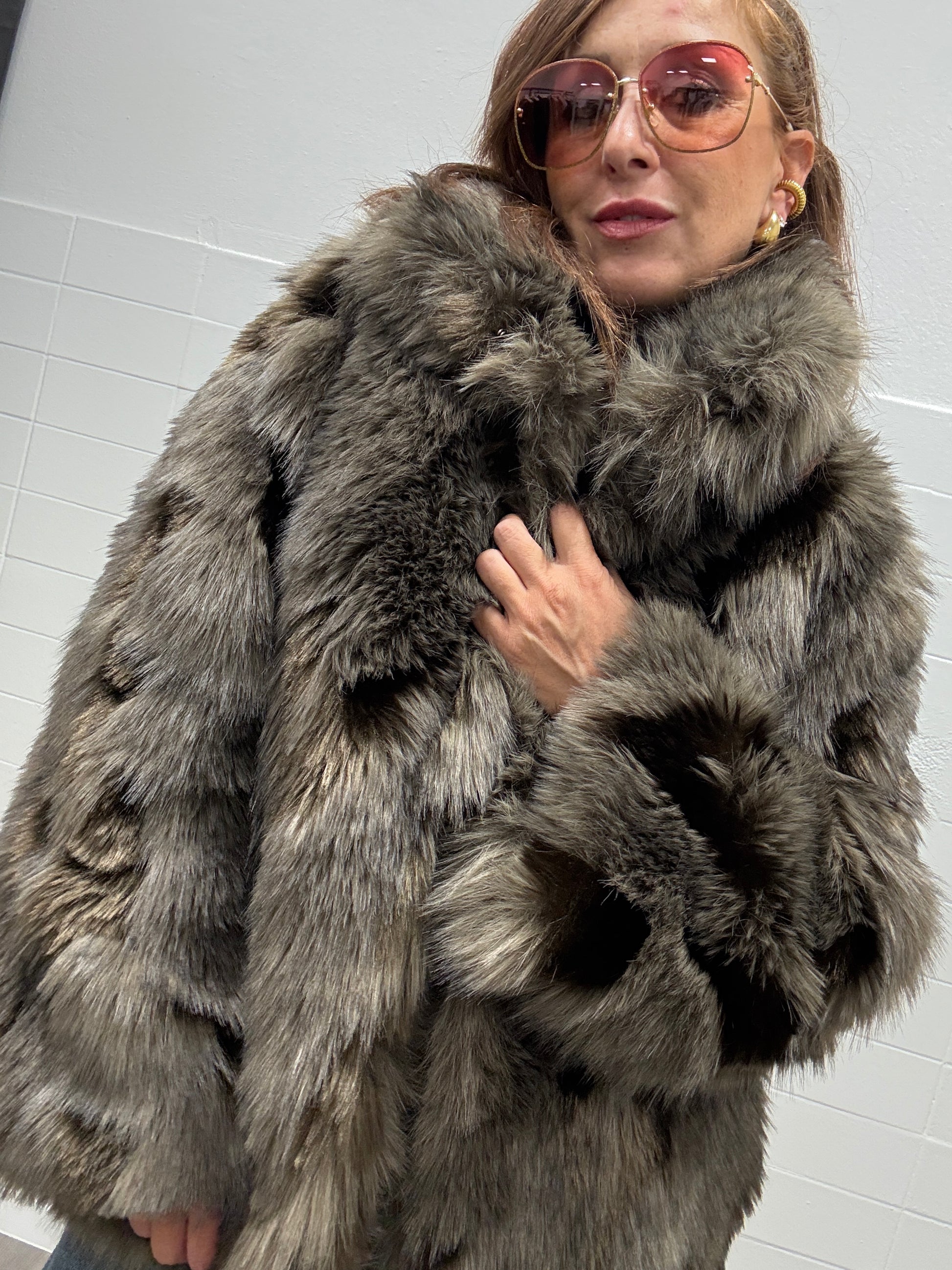 Pelliccia ecologica, modello corto sui fianchi con Rever.