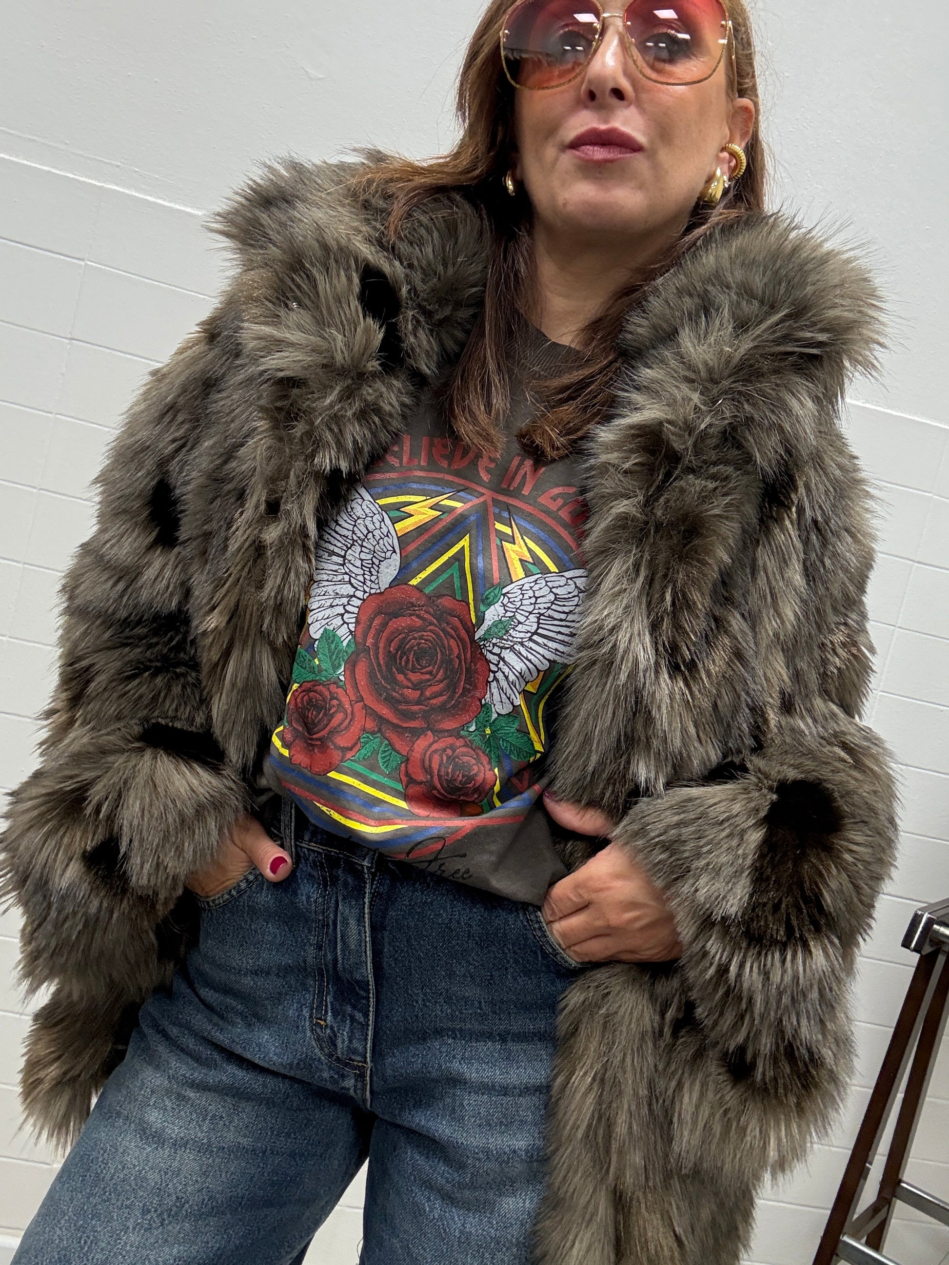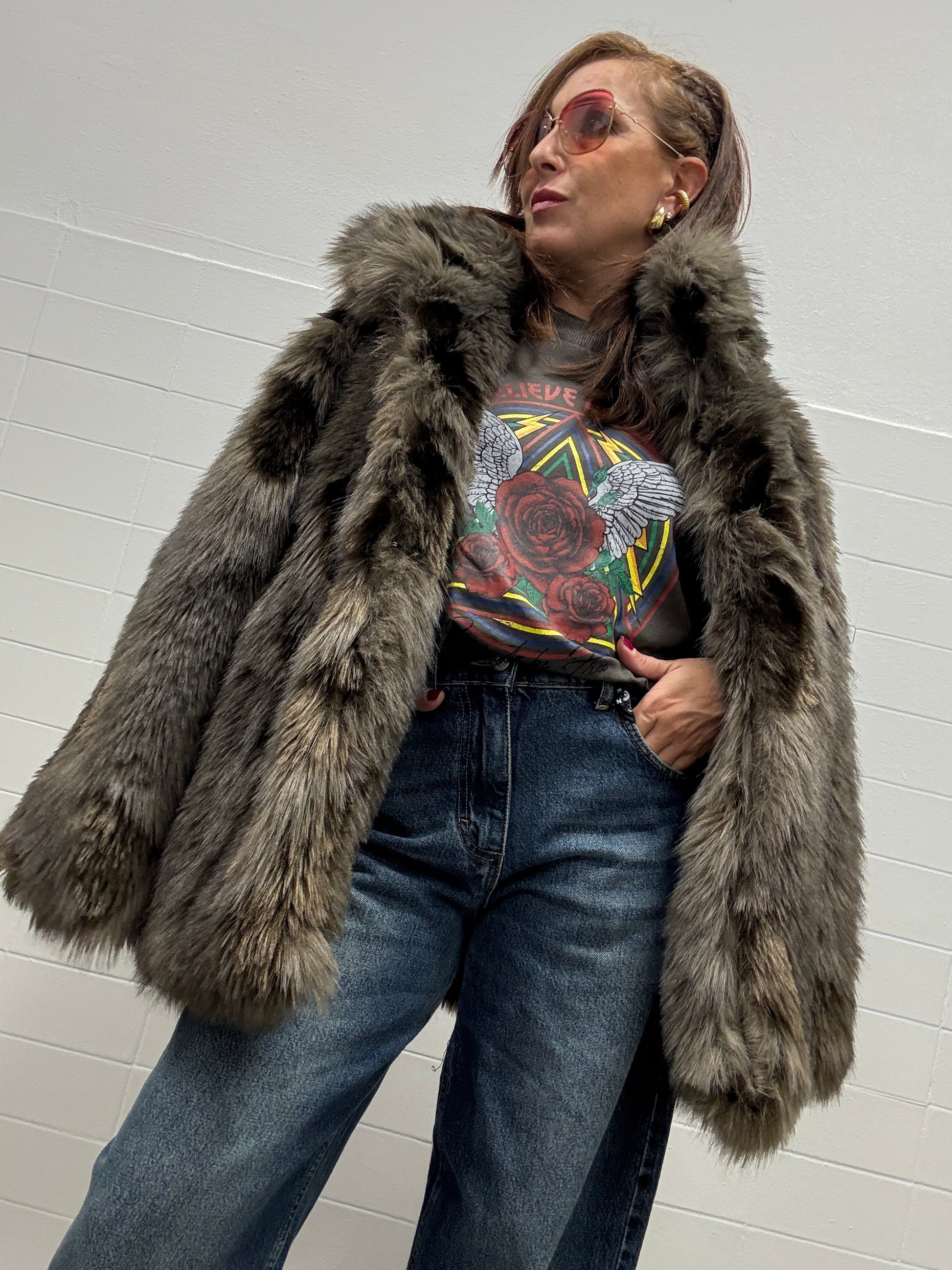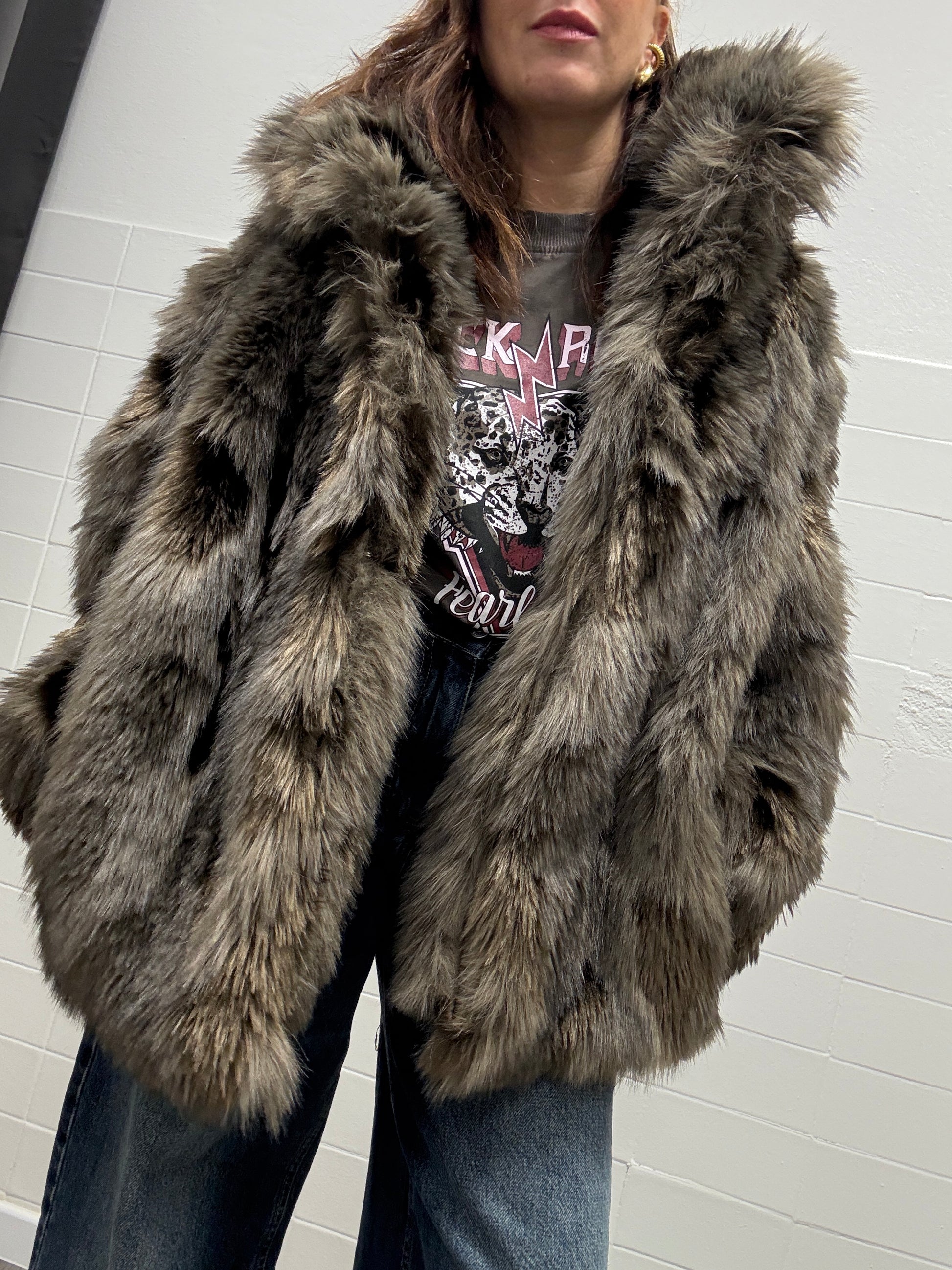 Pelliccia ecologica, modello corto sui fianchi con Rever.