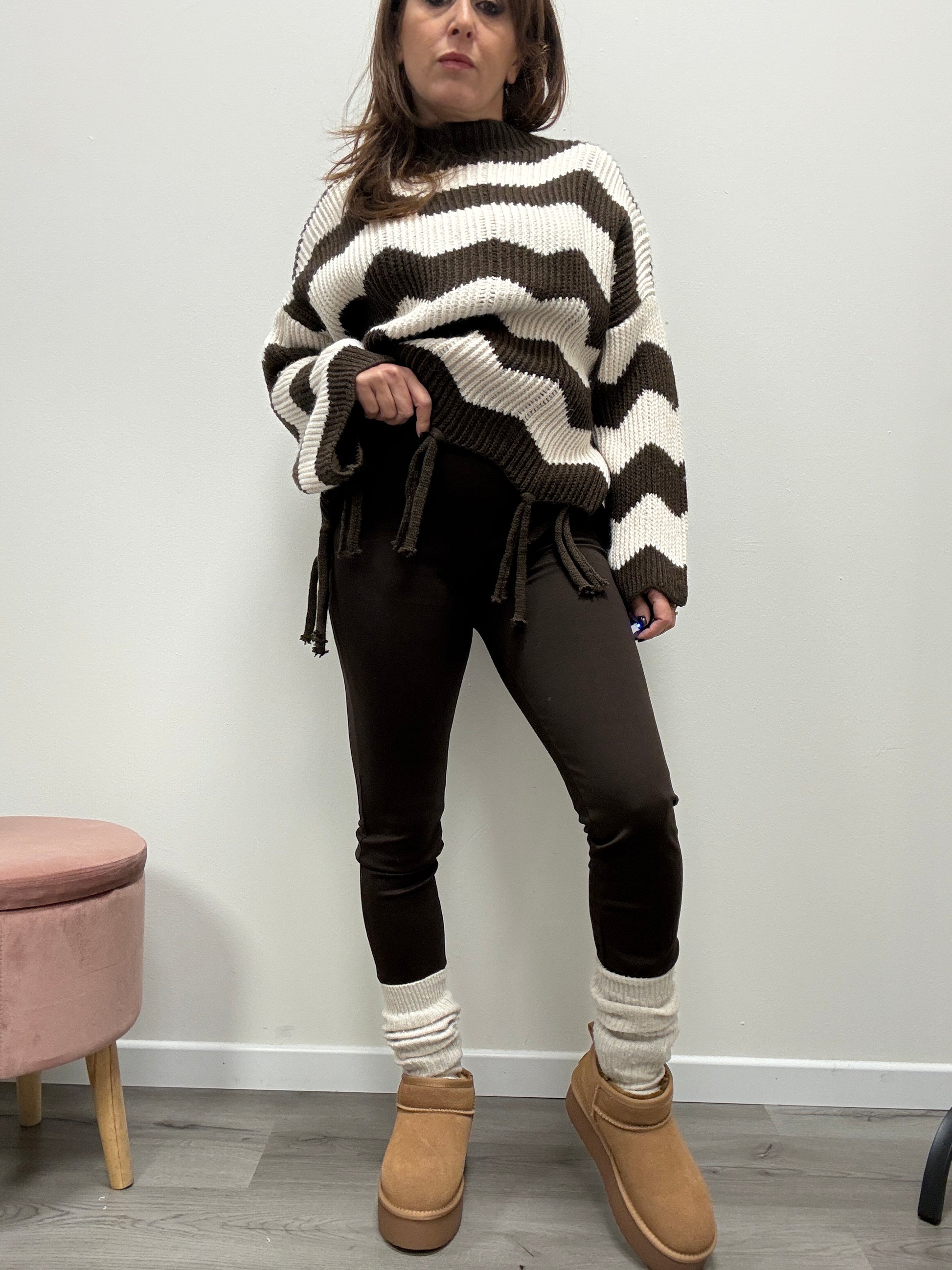Leggins in punto milano elasticizzato con piccoli spacchetti sul fondo