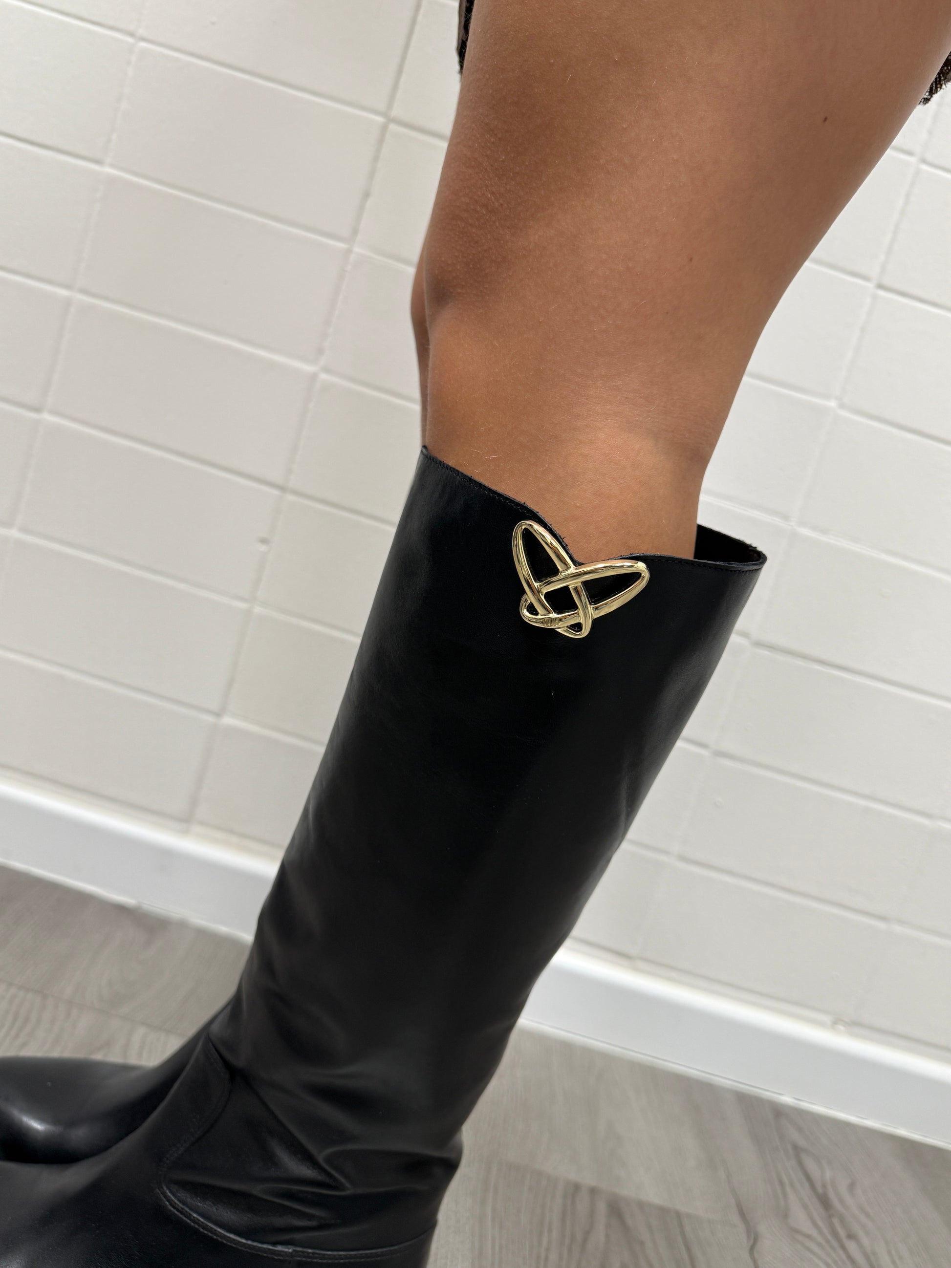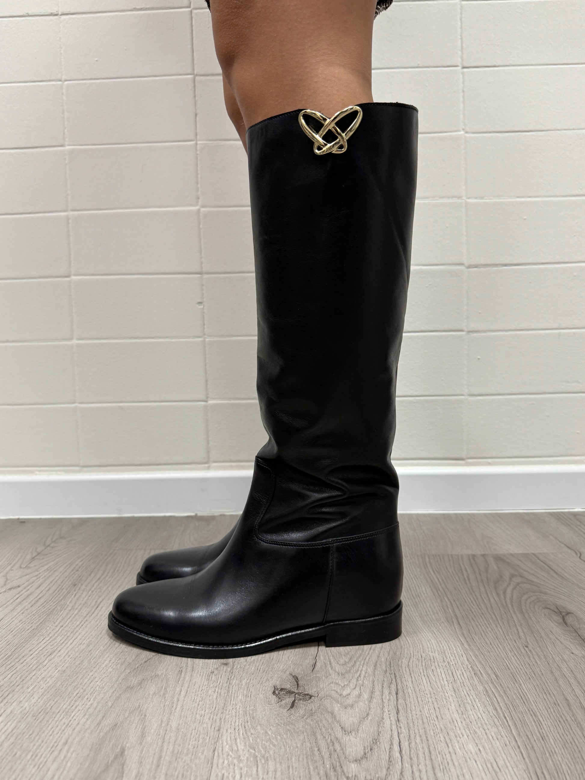 Stivale Ovyè in vera pelle, Modello alto sotto il ginocchio tubolare, Con zeppa interna 6 cm.
