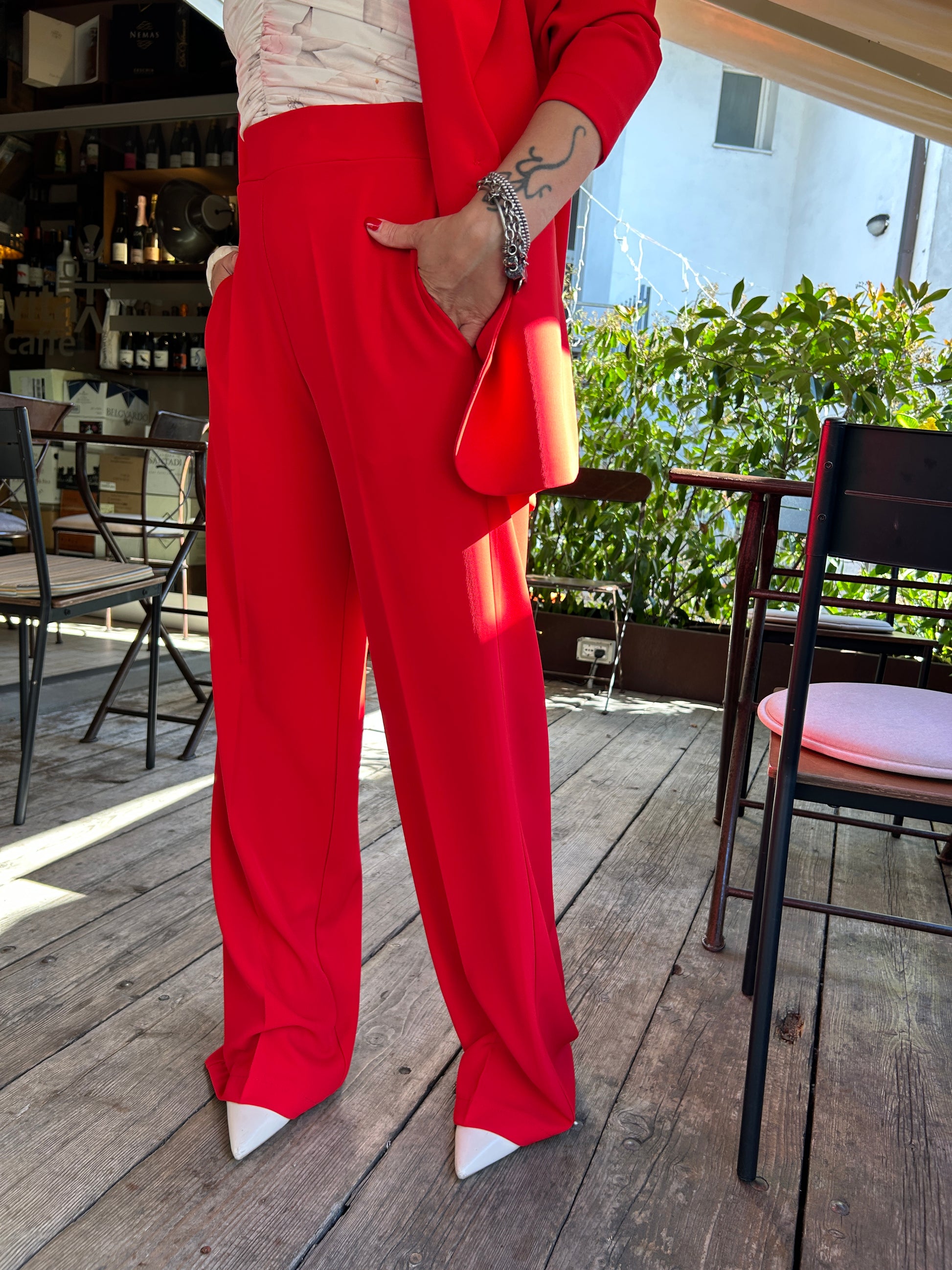 Pantalone, gamba dritta, pulito sul davanti, con elastico dietro.