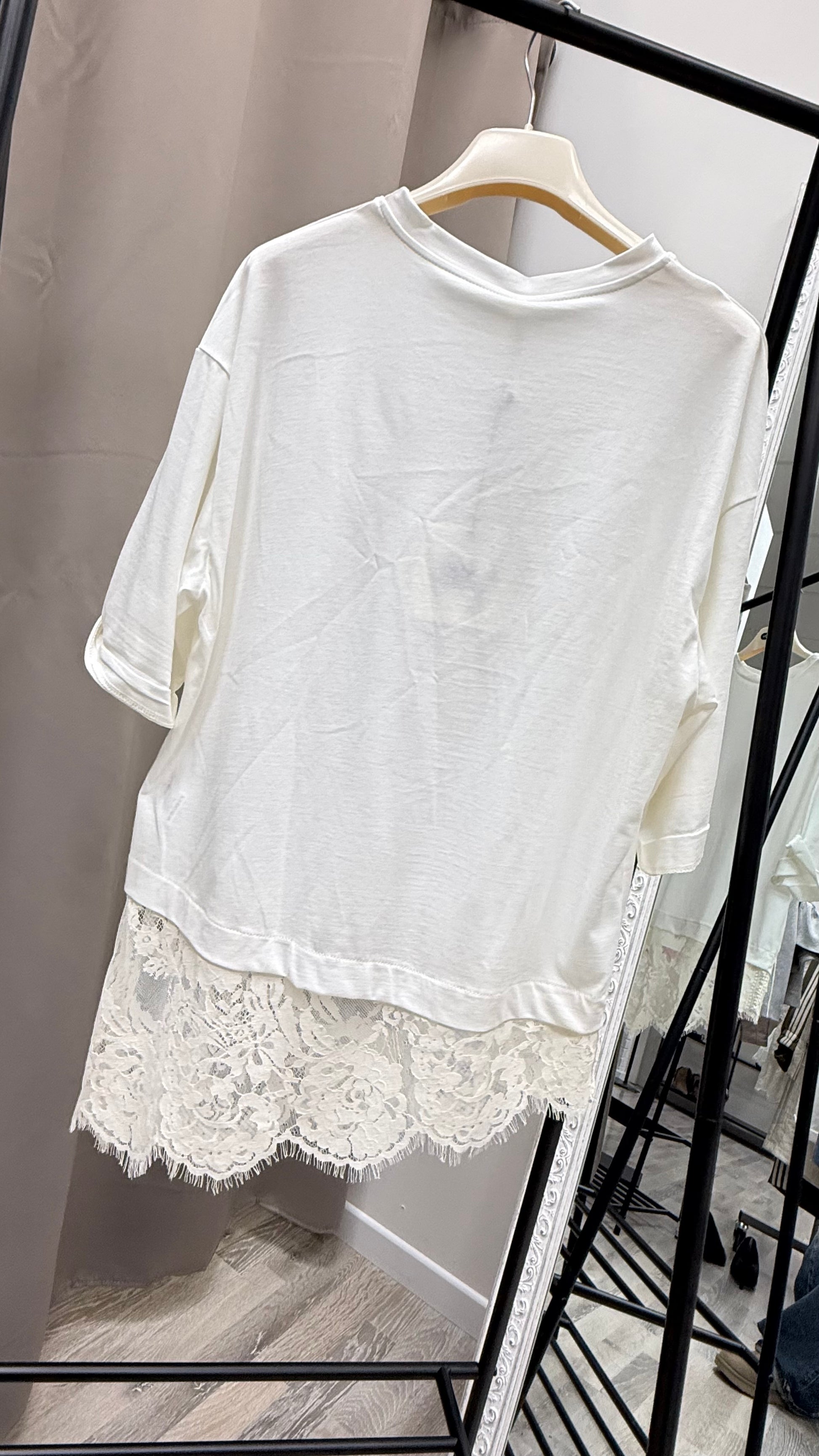 T-shirt in cotone con applicazione in pizzo sul fondo.