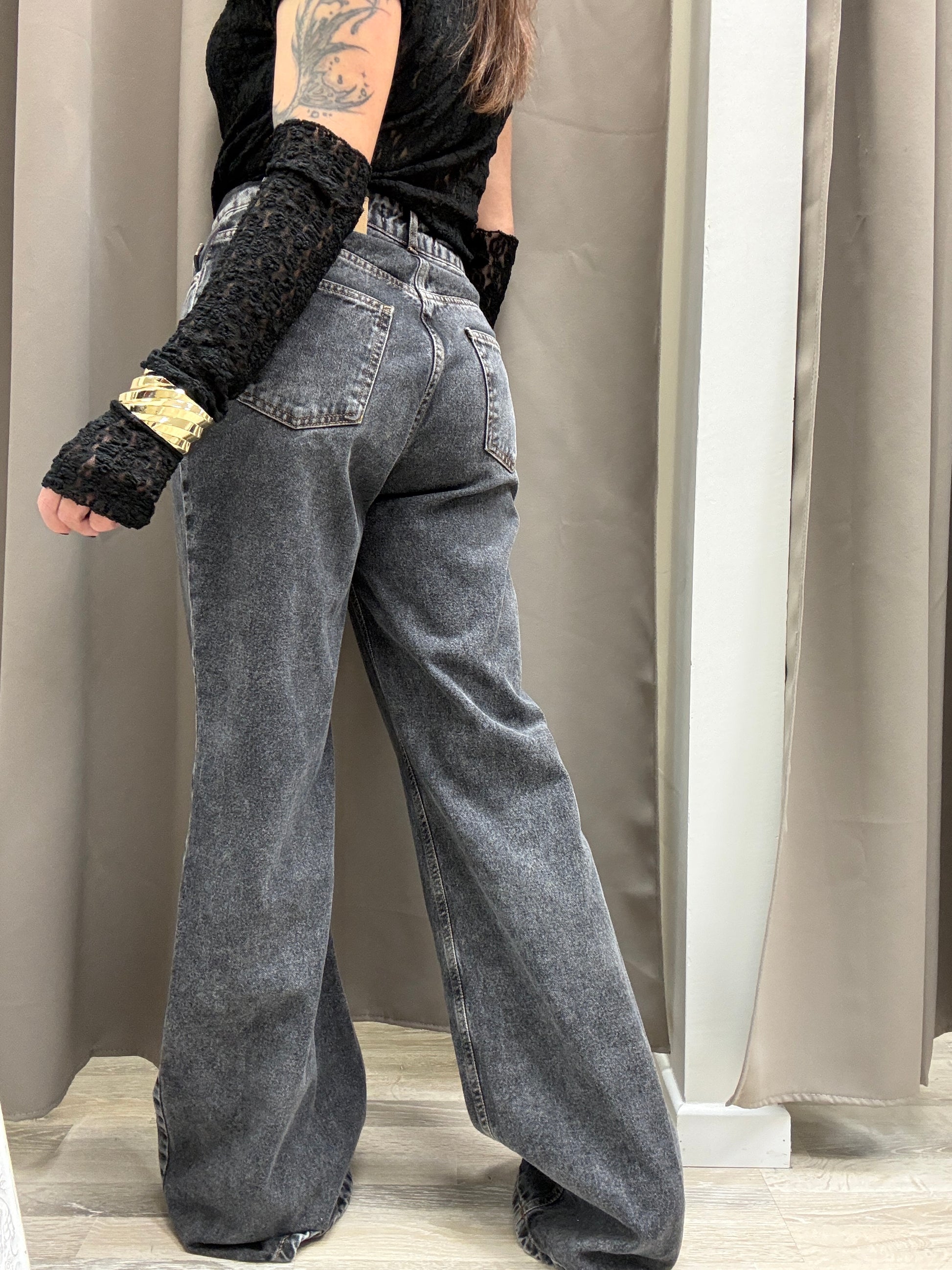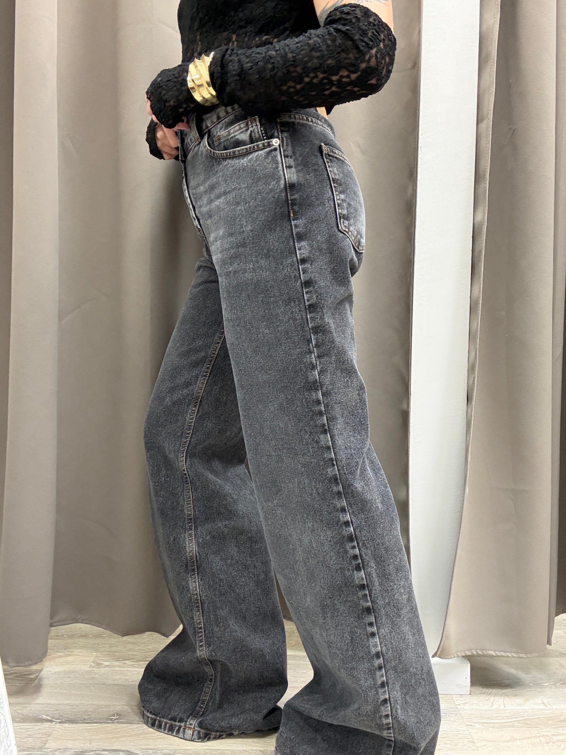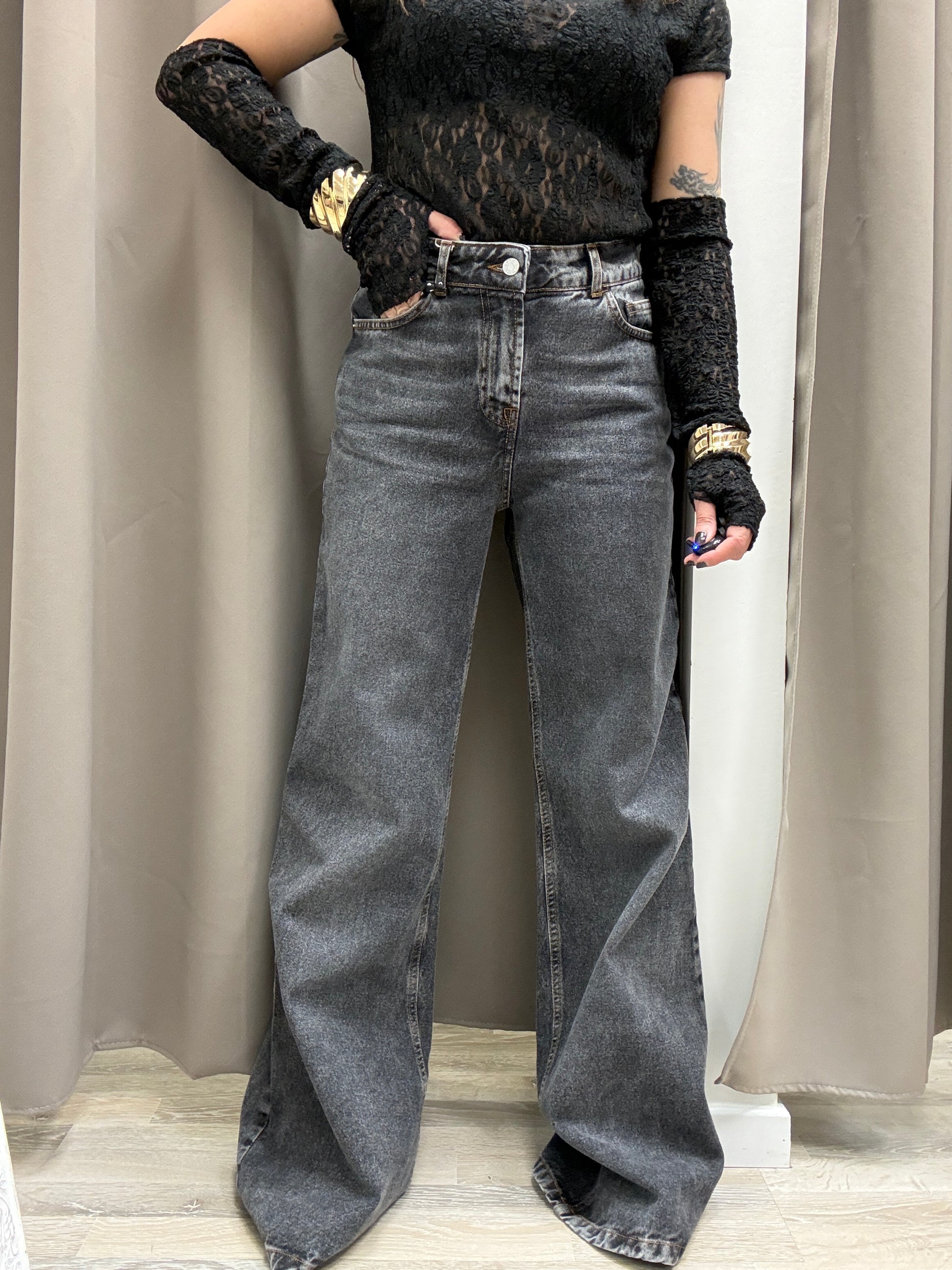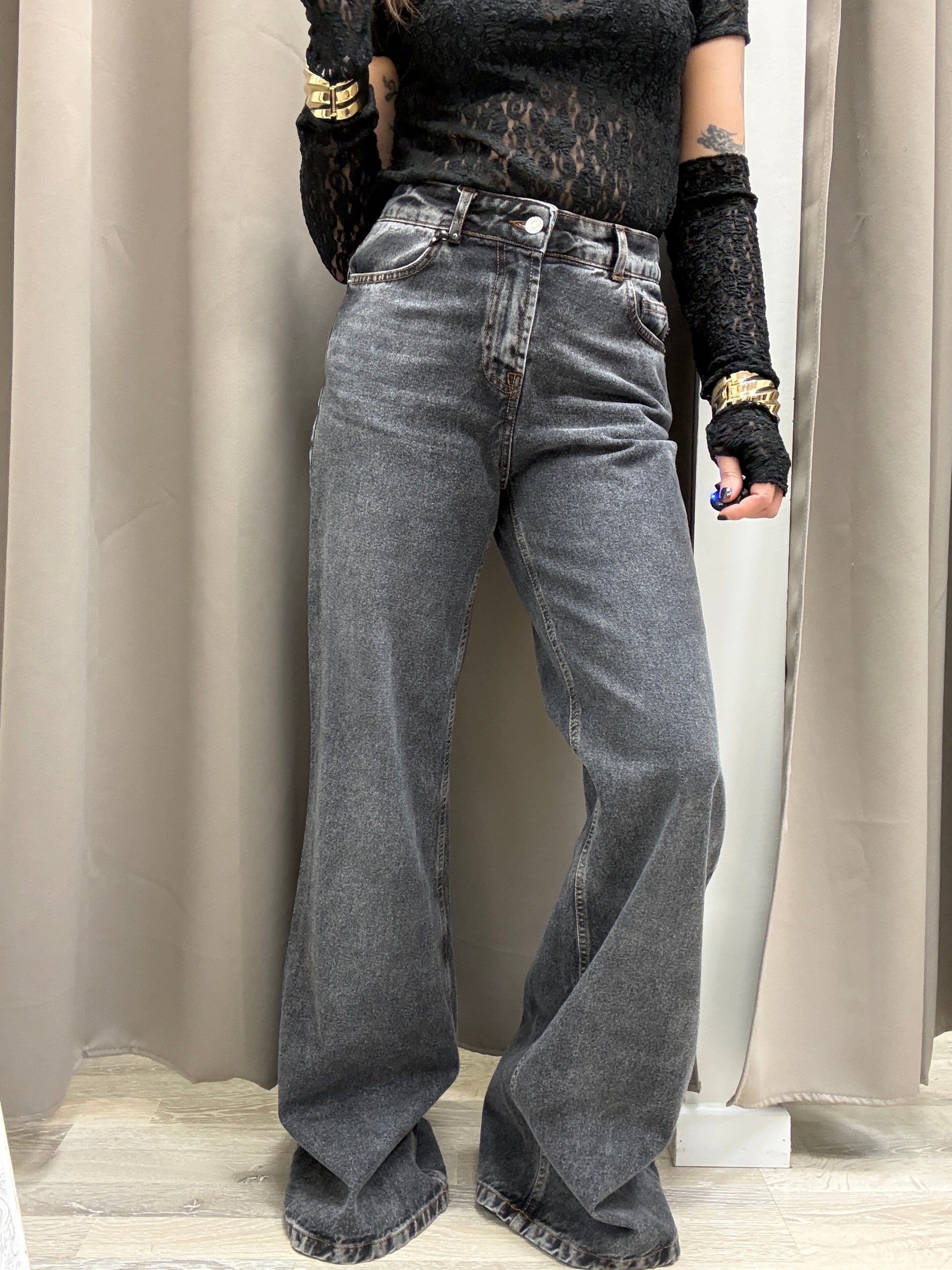 Denim jeans Tokyo modello palazzo a vita alta lavaggio grigio.
