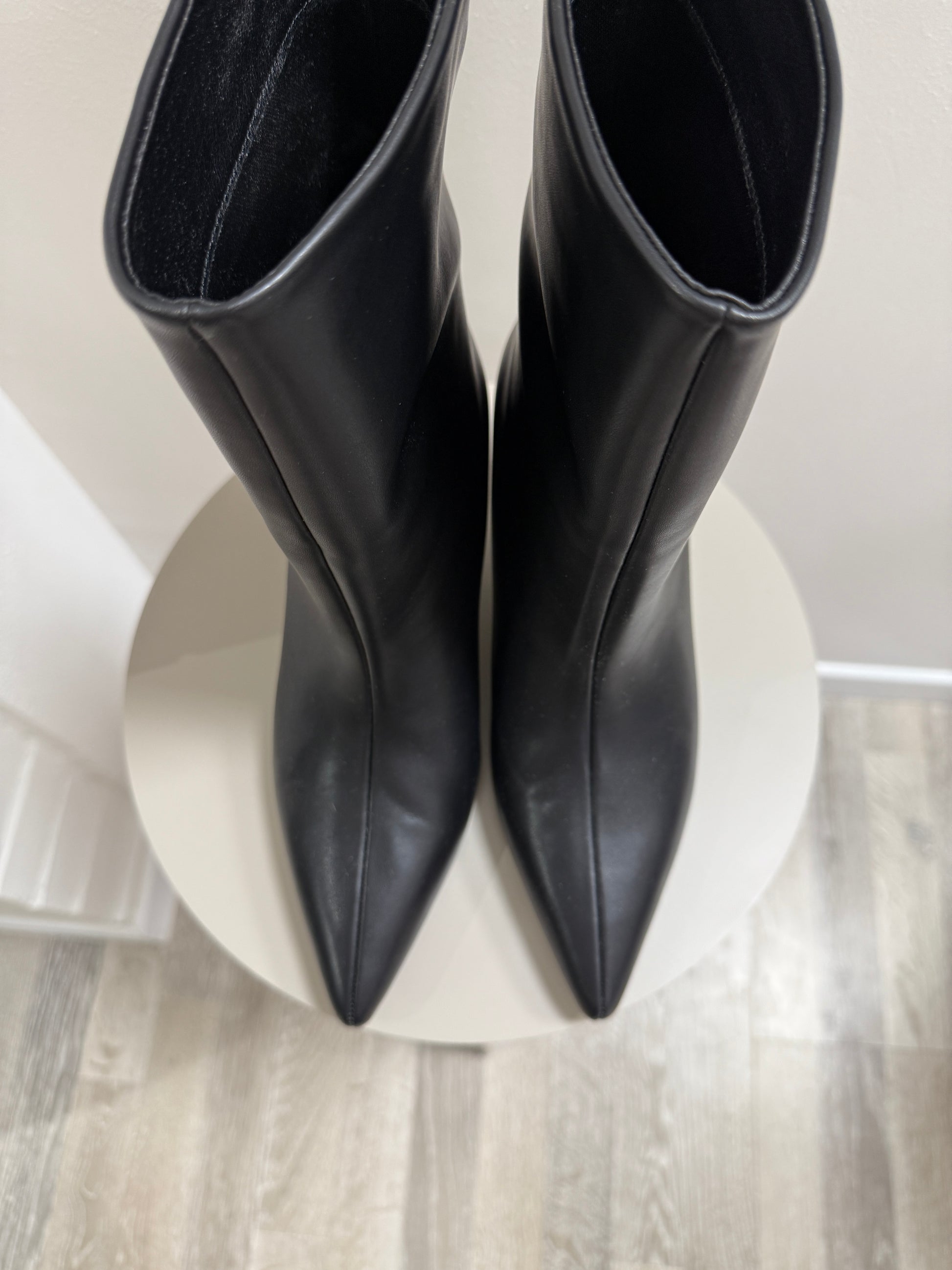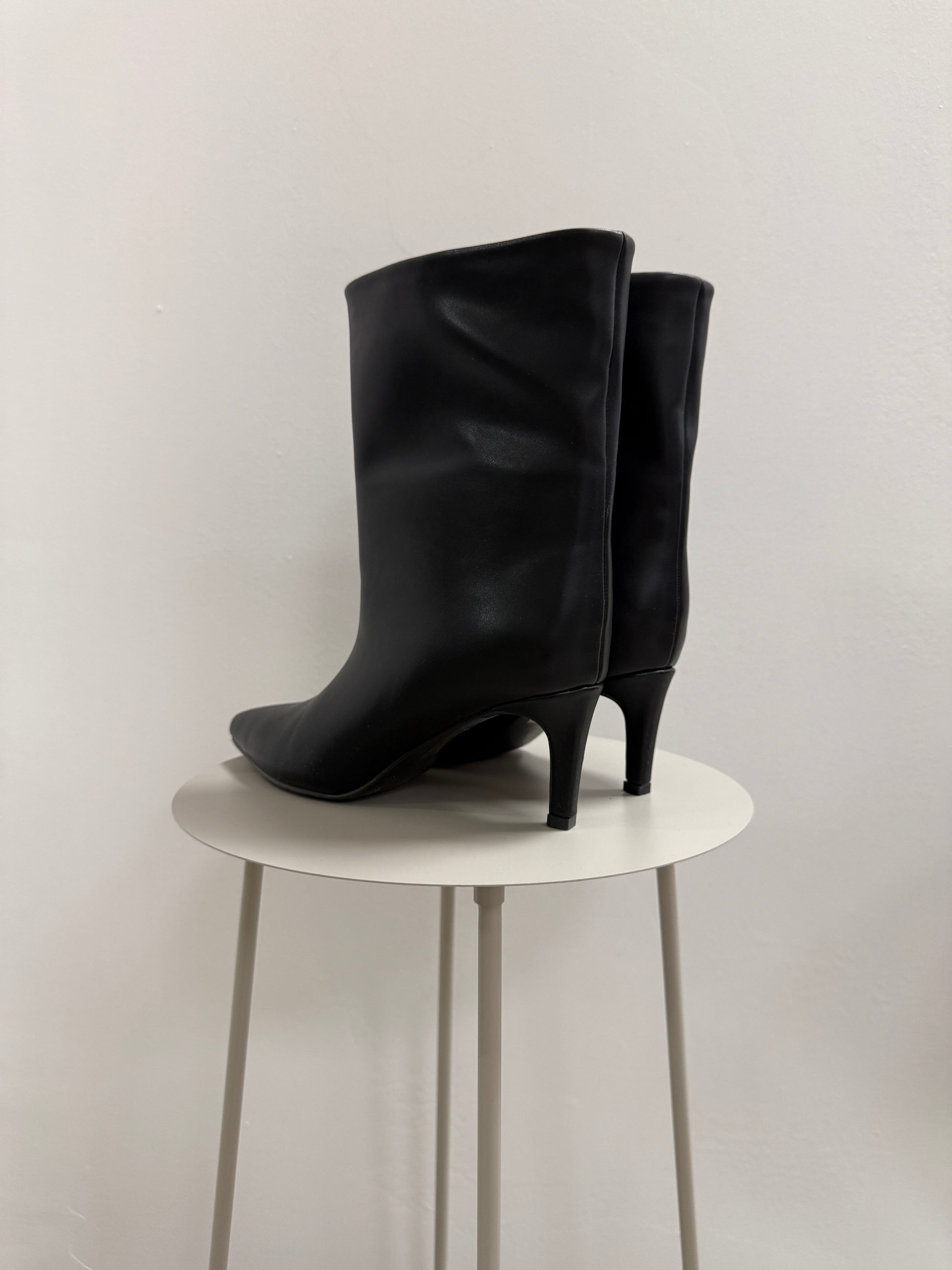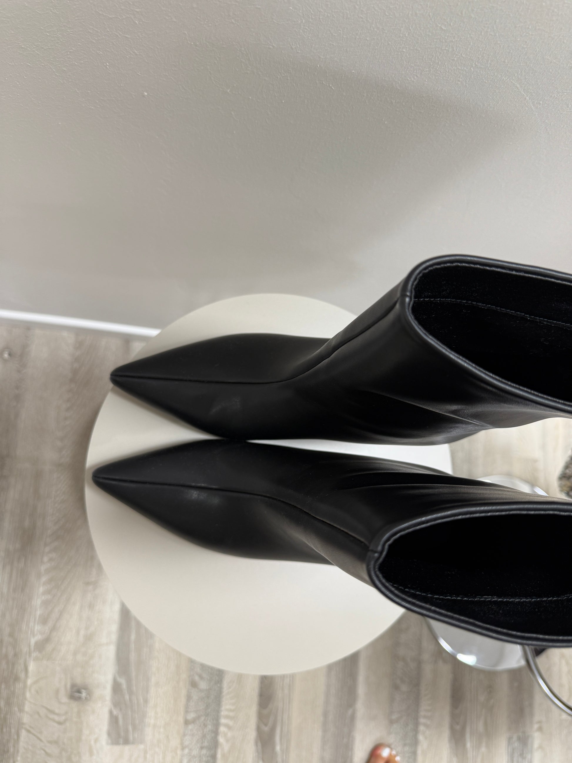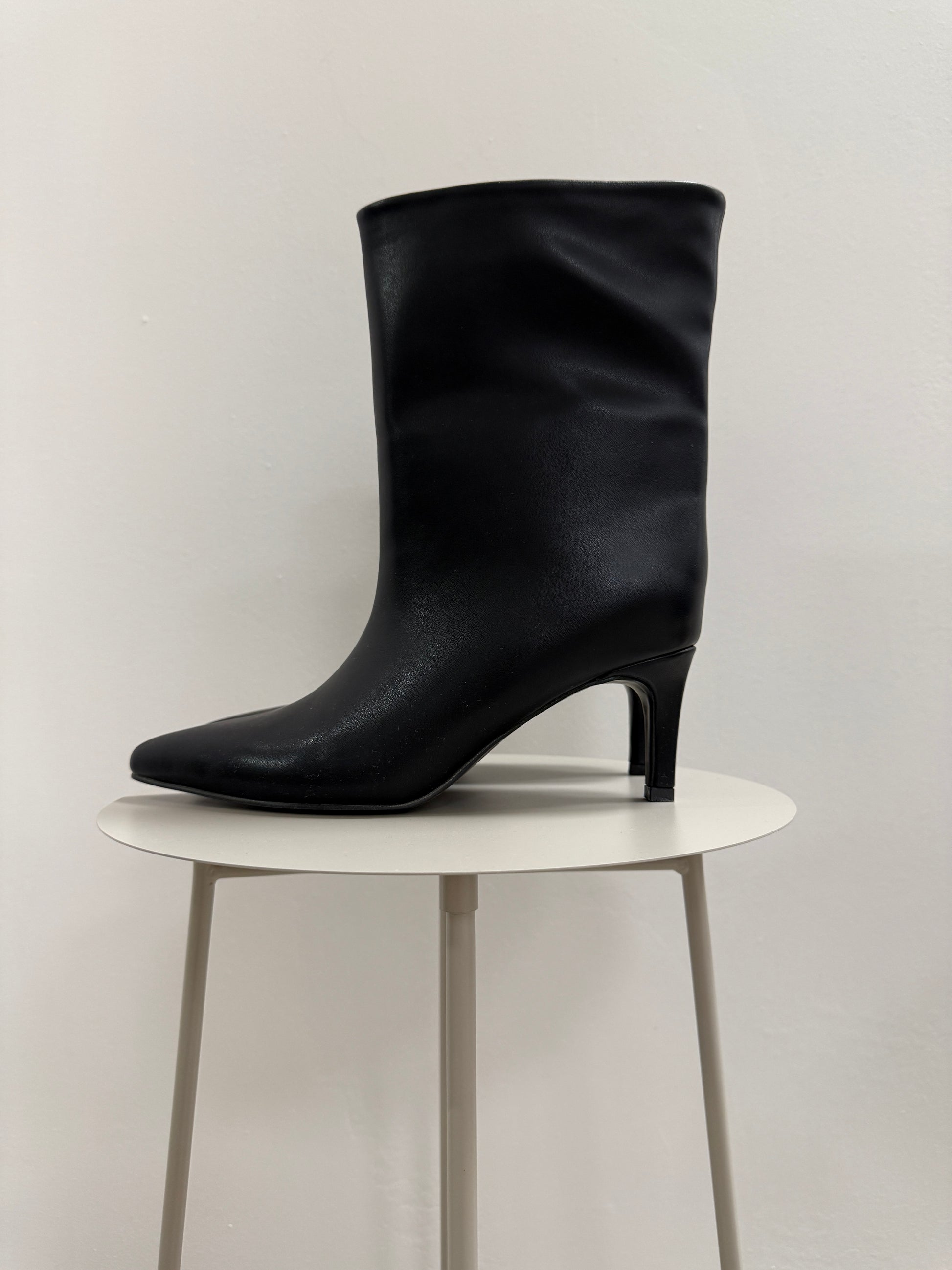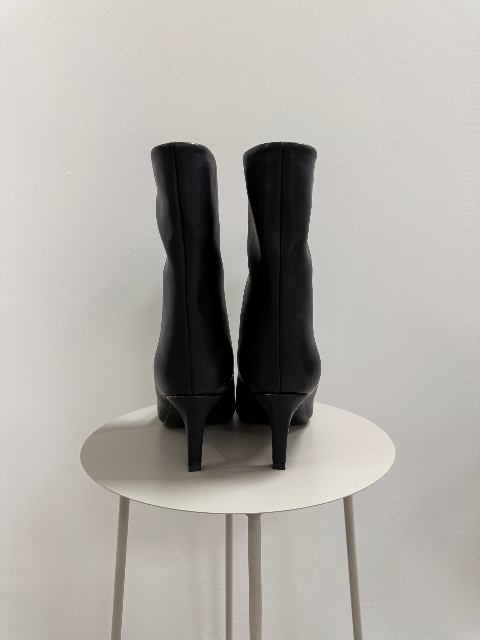 Tronchetto in ecopelle a tubo tacco 5cm nero con punta allungata leggermente imbottito calzata regolare